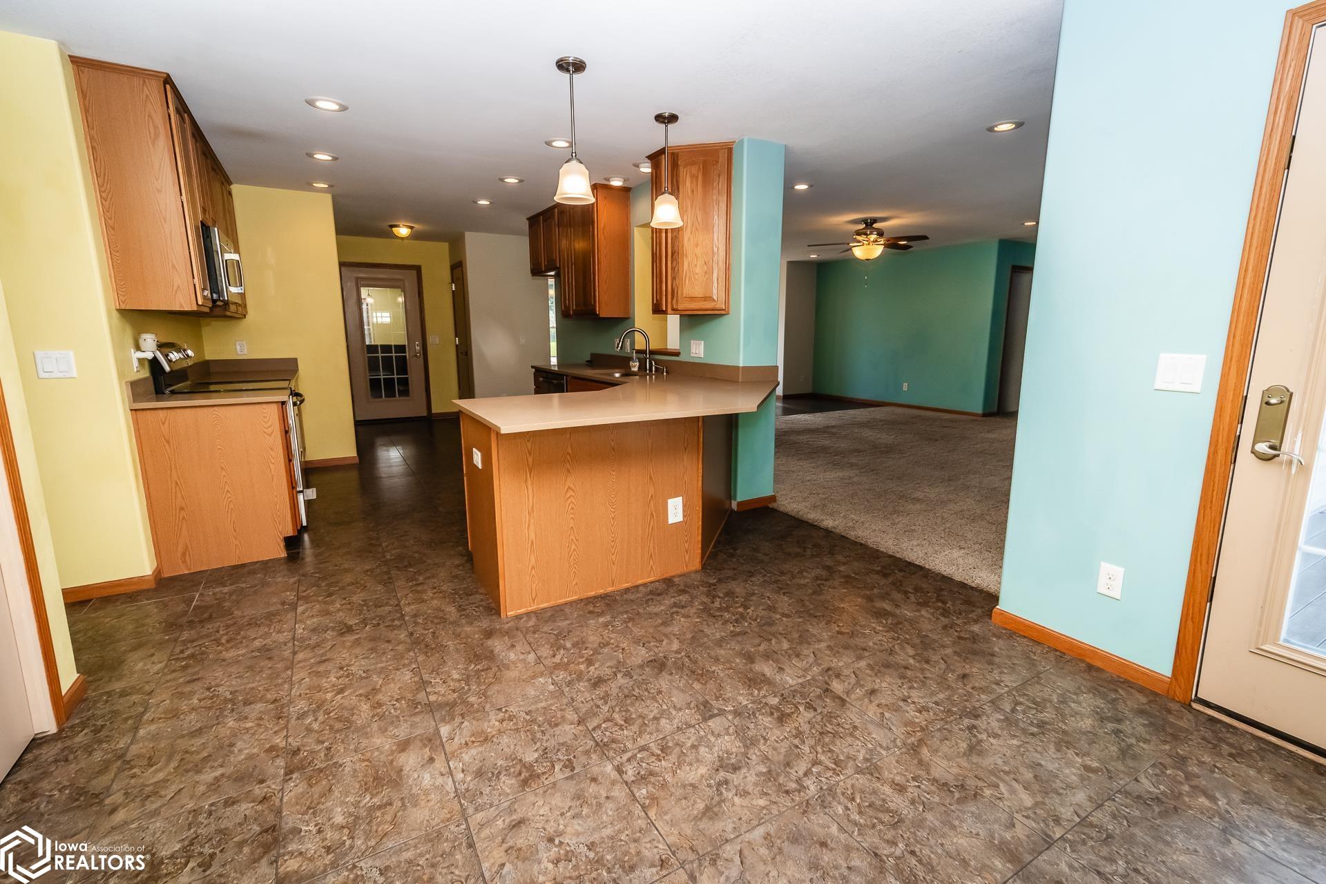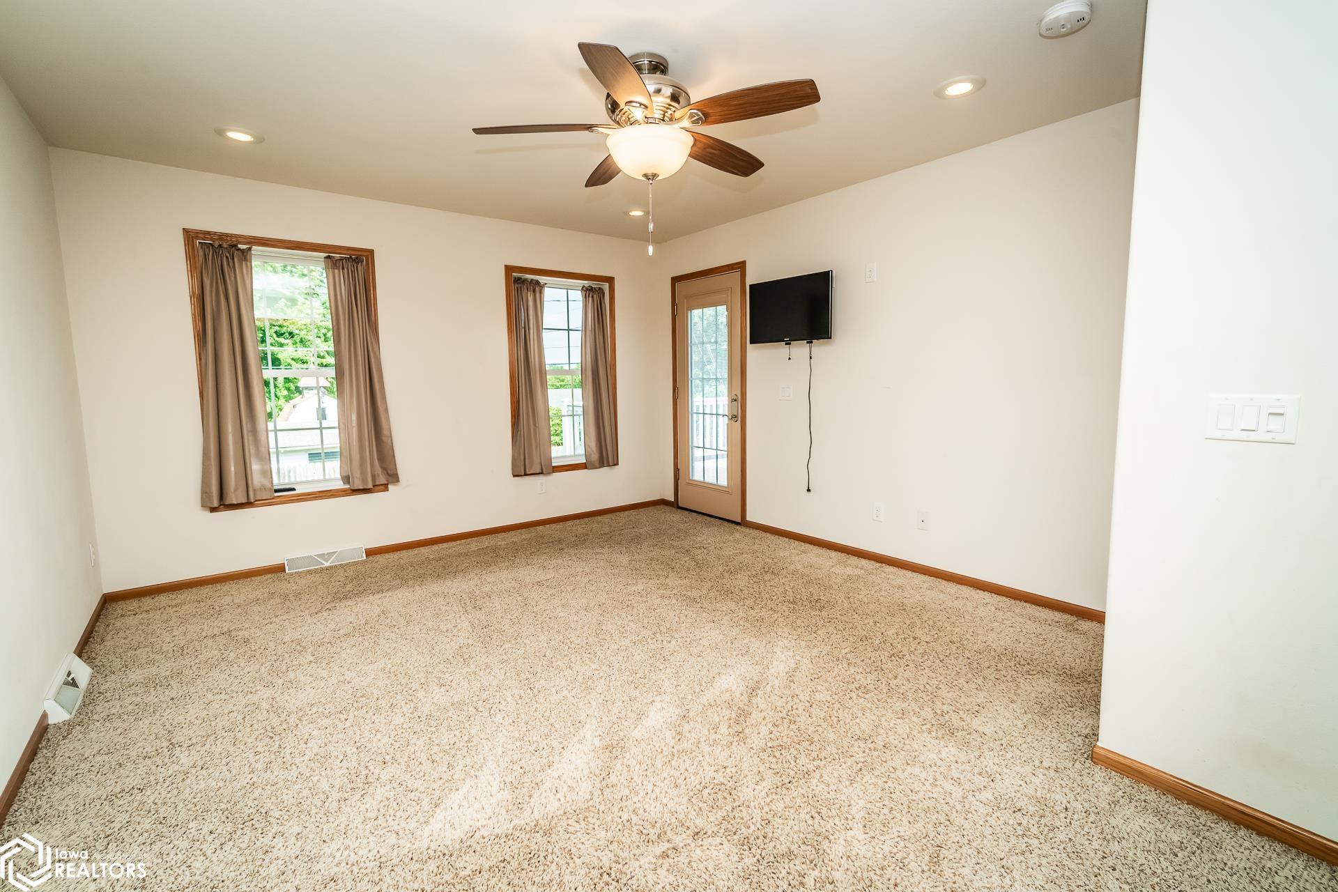 Welcome to this spacious and inviting 6 bedroom family home, perfectly designed for both comfort and convenience. The main floor features a master bedroom and bath, offering privacy and ease of access, along with a practical main floor laundry and half bath. The eat in kitchen is a cozy space for family meals. The lower level is great for entertaining with a large family room complete with a gas fireplace and space for a bar or gaming area. Two additional bedrooms and a bathroom on this level provide extra space for family or visitors. Step outside to enjoy the composite deck overlooking a fully fenced yard and fire pit. This home is built with a durable concrete foam basement foundation complete with an air exchanger. Located close to schools and the downtown square for a family friendly atmosphere. Give your realtor a call today to take a look.