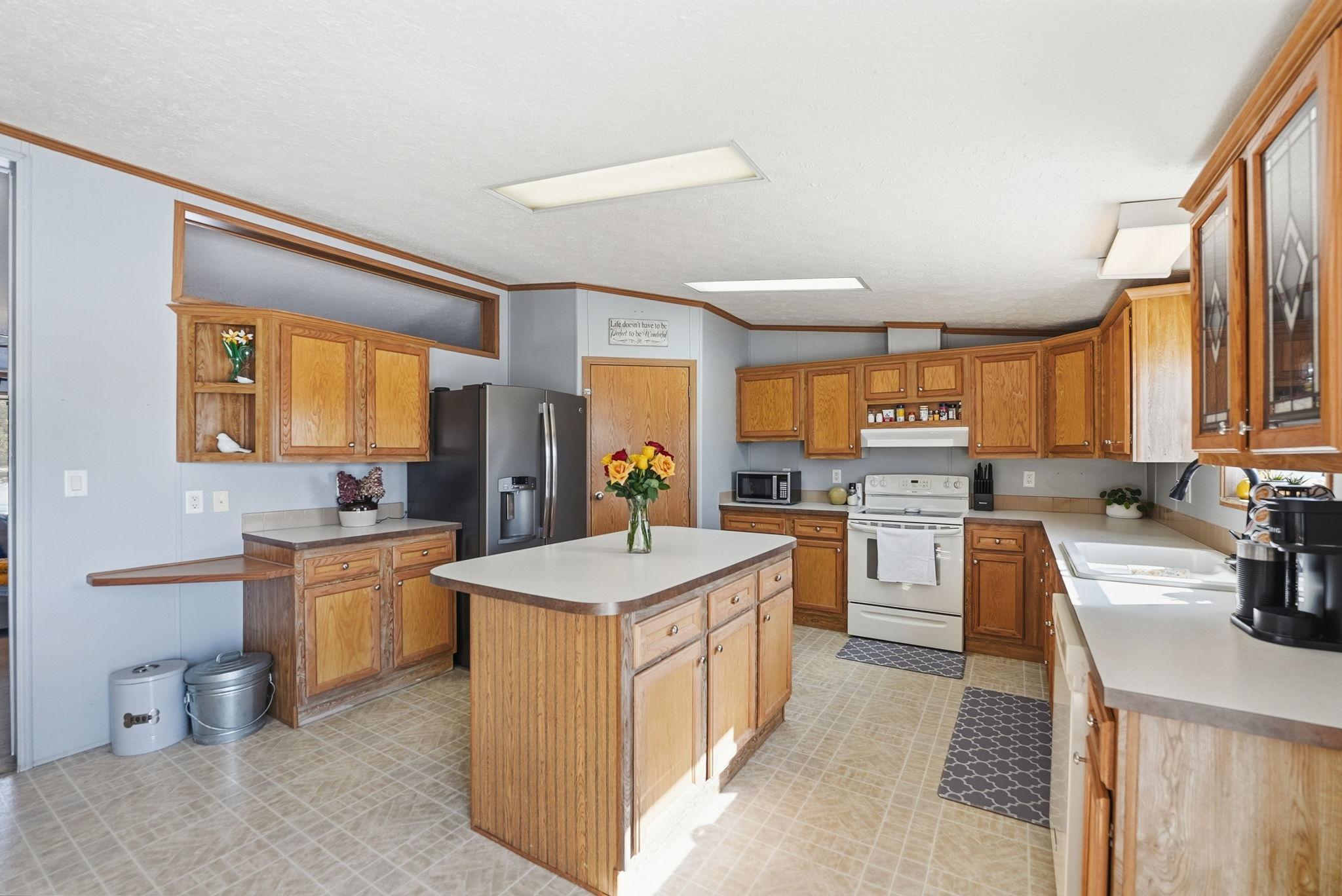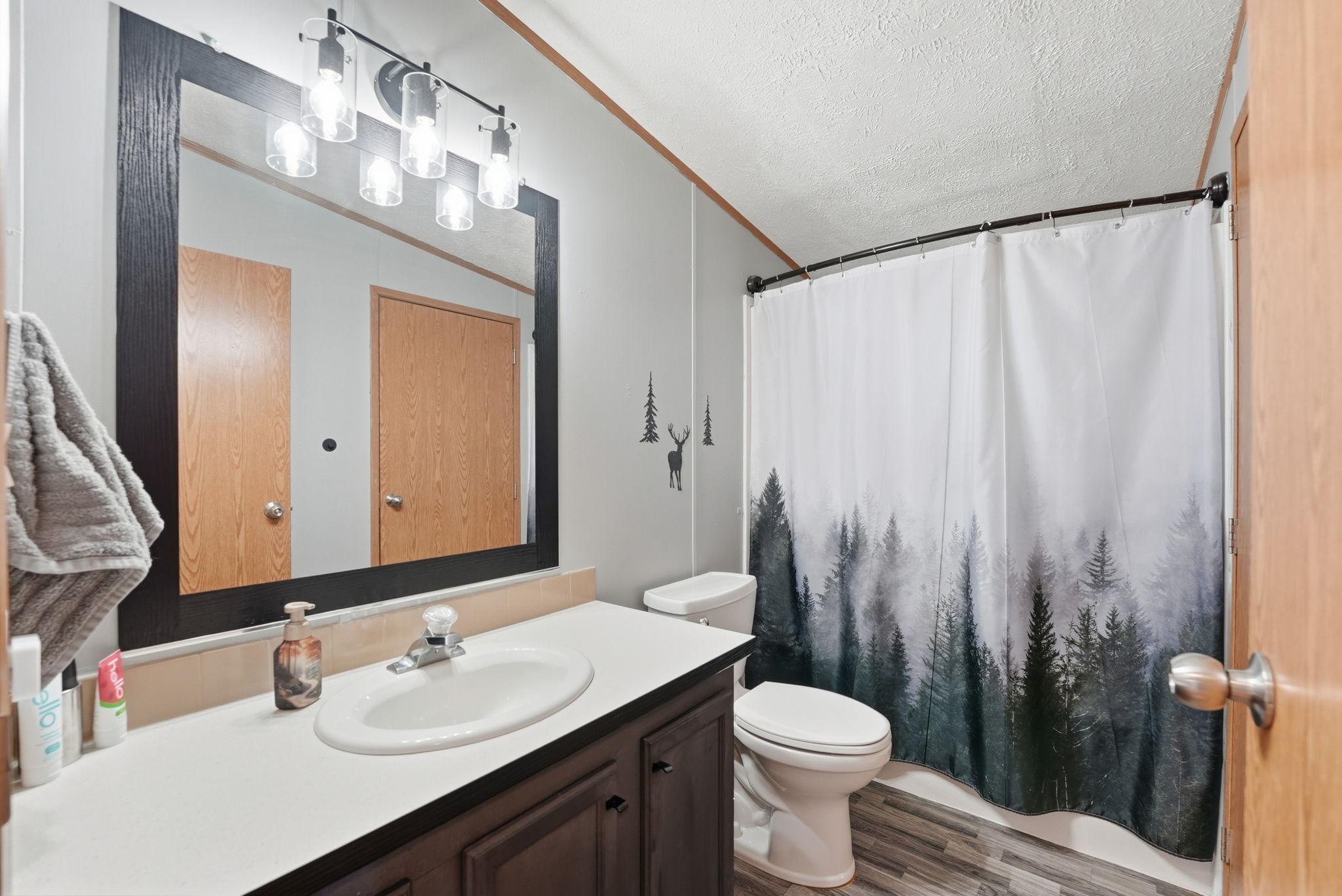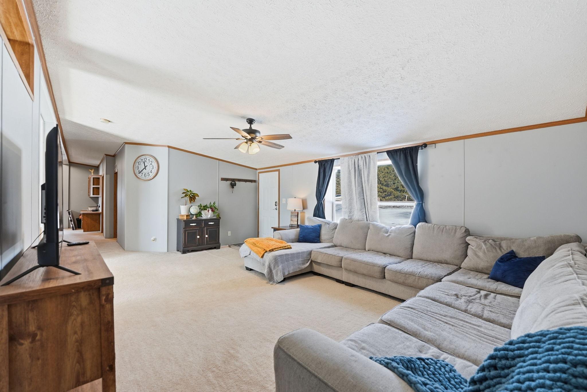 Spacious 4 bedroom, 2 bath modular home situated on over an acre, offering comfortable one-level living and many recent updates. Improvements include a new roof, fresh paint, new flooring in the bathrooms and laundry room, a new cement pad from the home to the garage, and a new patio area perfect for outdoor enjoyment. The large family room provides great space for gathering and everyday living. The generous owners suite features a separate shower and relaxing soaker tub. The oversized garage offers plenty of room for vehicles, storage, or hobbies and includes a loft above for additional space. Enjoy the privacy and room to roam that comes with a lot this size while still having all the conveniences of home. All main level living to enjoy. Updates include, new roof, new flooring in bathrooms and laundry rooms, new washer/dryer, new pressure tank, new deck, and new light fixtures throughout.