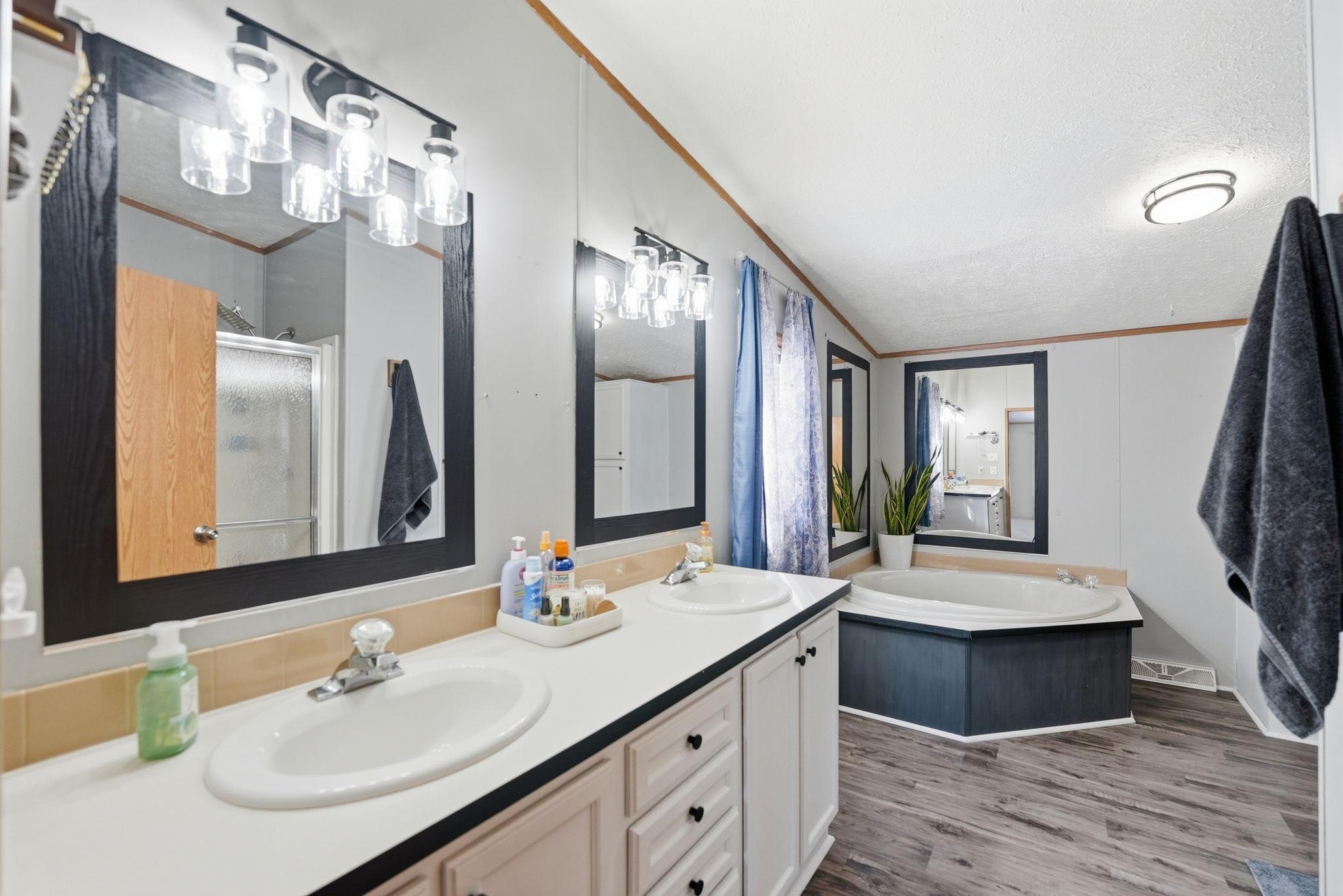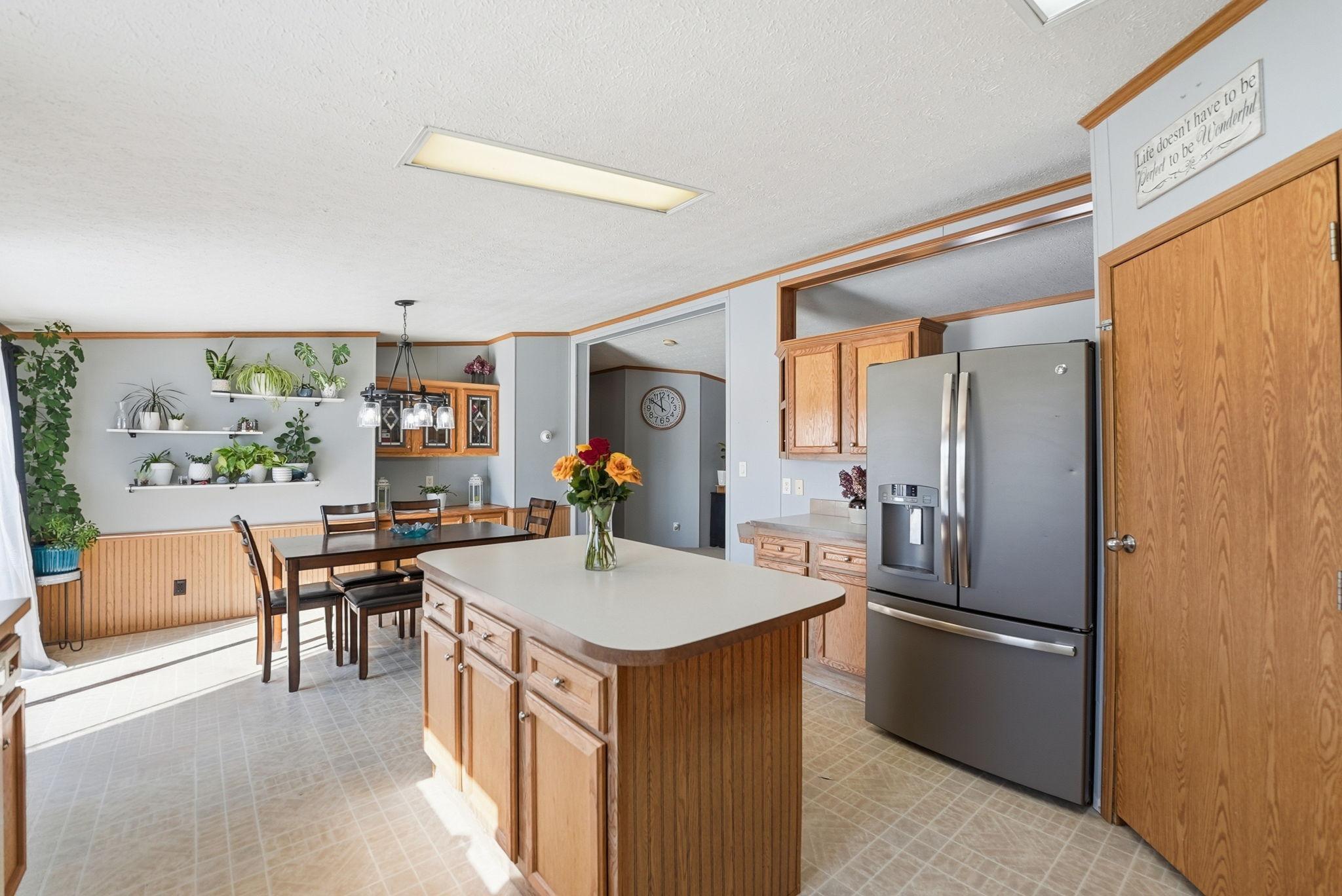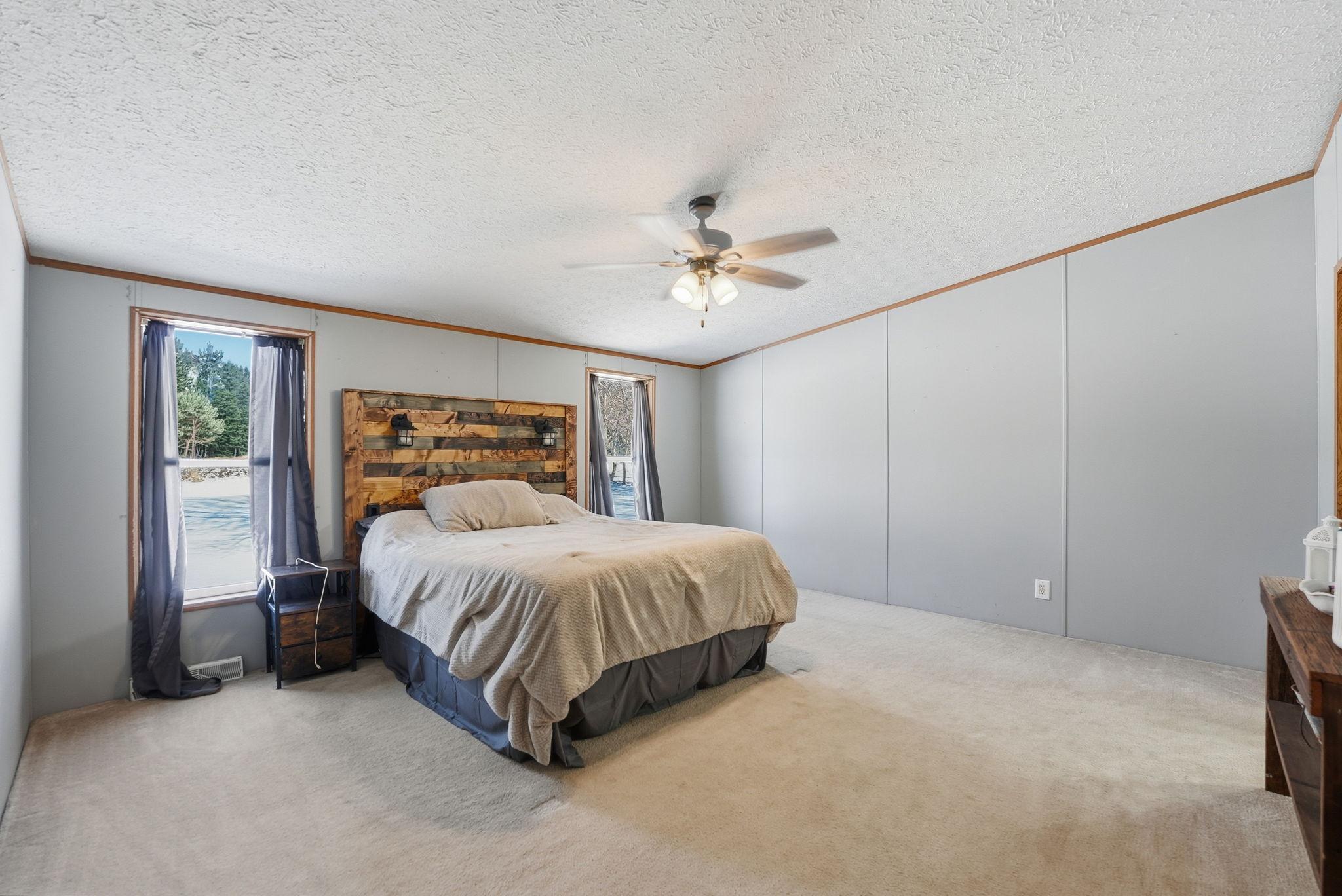 Spacious 4 bedroom, 2 bath modular home situated on over an acre, offering comfortable one-level living and many recent updates. Improvements include a new roof, fresh paint, new flooring in the bathrooms and laundry room, a new cement pad from the home to the garage, and a new patio area perfect for outdoor enjoyment. The large family room provides great space for gathering and everyday living. The generous owners suite features a separate shower and relaxing soaker tub. The oversized garage offers plenty of room for vehicles, storage, or hobbies and includes a loft above for additional space. Enjoy the privacy and room to roam that comes with a lot this size while still having all the conveniences of home. All main level living to enjoy. Updates include, new roof, new flooring in bathrooms and laundry rooms, new washer/dryer, new pressure tank, new deck, and new light fixtures throughout.