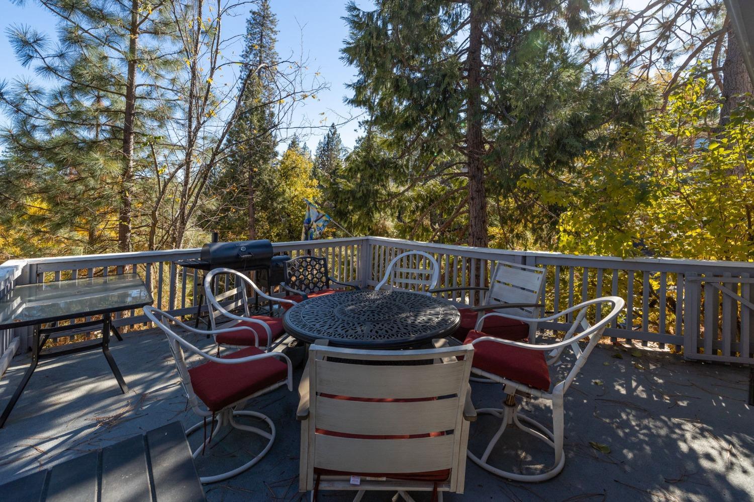 Enjoy beautiful mountain views from the deck of this Ridgeline property in Bass Lake. The wood burning fireplace in the family room will keep you cozy on cold winter nights. Also located on the main floor, are the dining room, 1/2 bathroom, kitchen with a large pantry, and a bonus room, which could be a bedroom or office.Upstairs, you will find the primary bedroom with bath, guest bedroom and bathroom as well as washer and dryer. Recently added are a new water heater, microwave and fan, wifi thermostat, wifi front door lock, laminate flooring in bathroom and leaf guard rain gutter filters with a transferable lifetime guarantee. Rentals limited to 30 days or more. You can't beat this location, 10 minutes to the town of Oakhurst and only 25 minutes to the south gate of Yosemite National Park.
