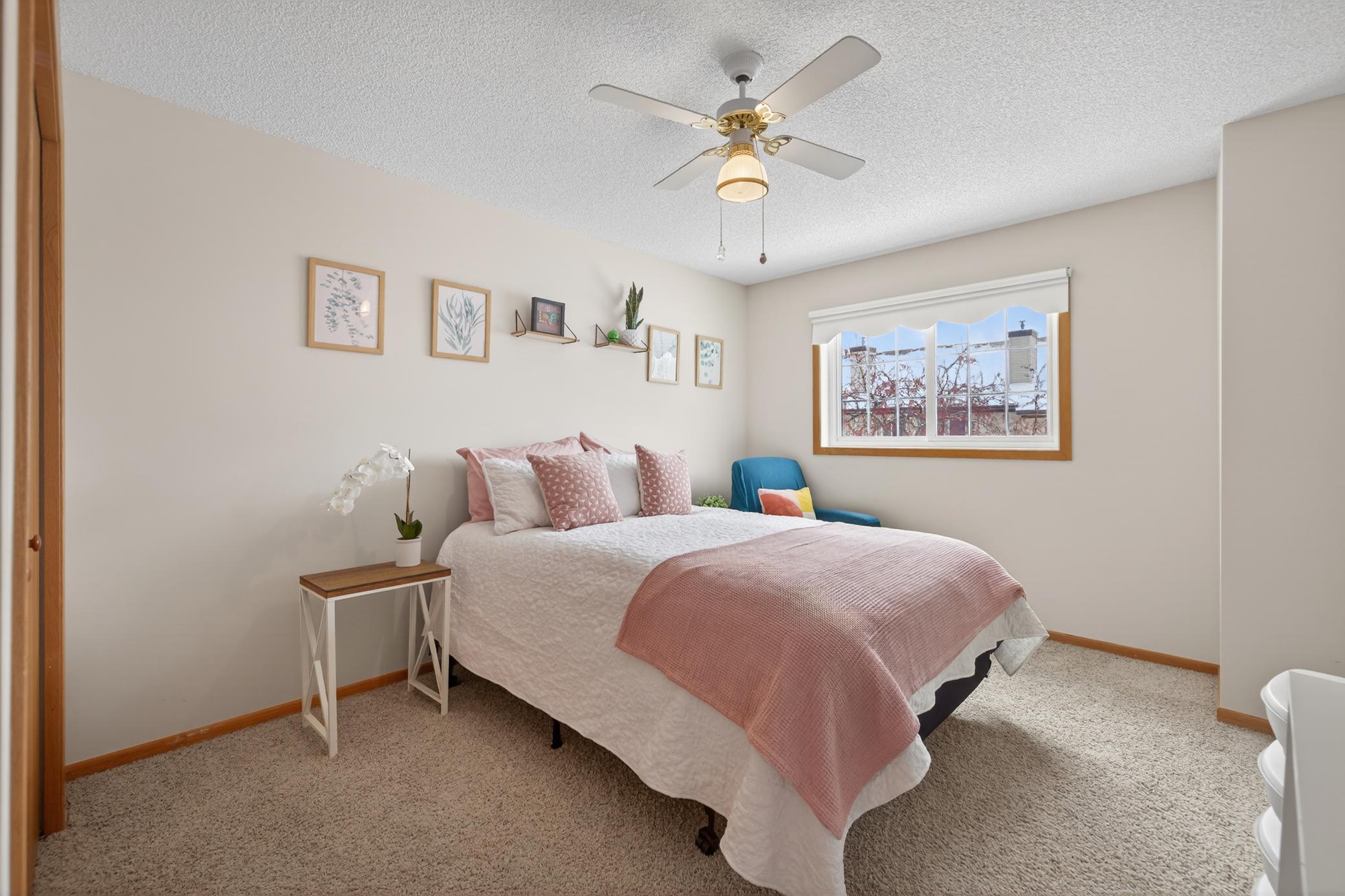 Turnkey 2BR/1BA townhome in Shoreview - a fantastic value in a prime location near shopping, dining, and highways. Walking into this inviting, two level home, you'll love the bright open floor plan with luxury vinyl flooring in the living and dining areas. Relax by the cozy gas fireplace - adding warmth and ambiance on cold winter nights. The kitchen offers ample storage and a handy breakfast bar. Upstairs presents two bedrooms plus a full bathroom with Travertine tile. The spacious primary has not one, but TWO closets - including an organized walk-in closet. Updates include: newer thermal windows and a sliding patio door with lifetime warranty. Water softener (2022), A/C (2024), plus a newer roof (2019). Seller has paid all assessments in full. Set in the heart of Snail Lake and Grass Lake parks, youll love the miles of nearby walking and biking trails! This sunny townhome is perfect for comfortable, easy living in a lovely Shoreview setting!