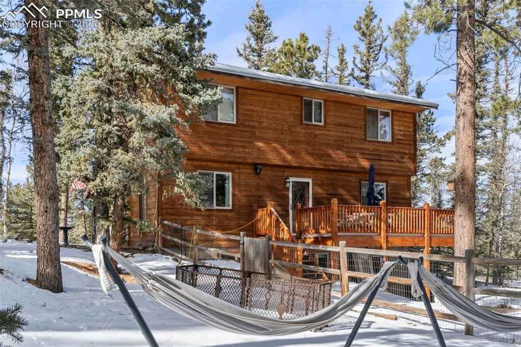 Welcome to this beautiful mountain home, set on 1.37 acres in the highly sought-after Spring Valley community. Surrounded by trees and frequent wildlife, the setting feels peaceful and connected to nature while still being part of an established neighborhood. xD;xA;As you arrive, youx2019;ll appreciate the flat driveway, a rare and valuable feature in the mountains that makes access easy year-round. The property offers an oversized two-car garage, plenty of parking for all your toys, a fenced backyard, and two storage sheds, providing ample space for vehicles, equipment, and mountain gear. A covered front porch offers a welcoming entry, while the back deck overlooks a treed setting that changes beautifully with the seasons.xD;xA;xD;xA;Inside, the home feels warm and functional. The main level includes a half bath and a true bonus room just off the dining area, offering a defined space ideal for an office, creative room, or flex space. The kitchen features generous counter space and newer appliances, making it both practical and inviting.xD;xA;xD;xA;Upstairs, youx2019;ll find bedroom-level laundry and four spacious bedrooms, including a primary suite with an attached bath and generous storage, along with an additional full bathroom.xD;xA;xD;xA;We wrap up the tour with the walkout basement, which features abundant natural light and is fully above ground. This level includes a large bedroom, a bathroom rough-in, and extensive unfinished space, offering excellent potential for additional living space, recreation areas, or a private secondary setup.xD;xA;xD;xA;As part of the Spring Valley community, the property offers access to private fishing lakes, a clubhouse, and community amenities, adding to the appeal of this mountain setting. This home combines classic Colorado character, usable land, and a flexible floor plan, offering a mountain lifestyle that feels both practical and full of possibility.