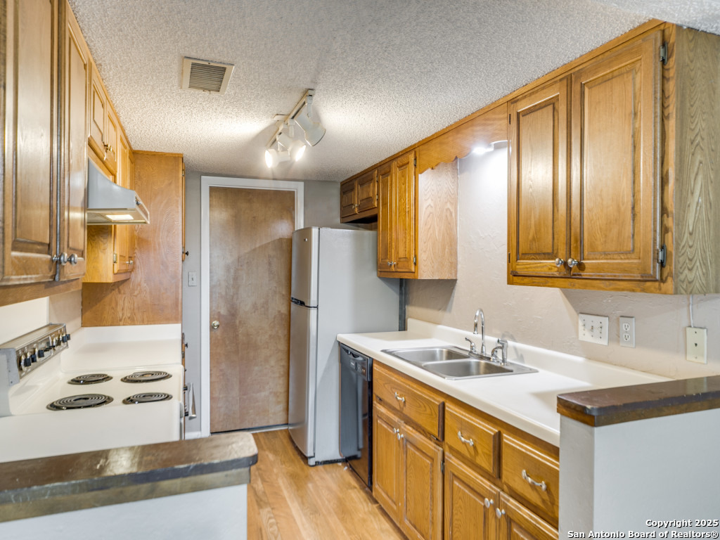 Prime opportunity for investors or buyers. This spacious 2,148 sq. ft. townhome in the Windcrest community offers solid construction, a functional layout, and endless potential. The two-story plan includes three bedrooms and two and a half baths, with all bedrooms upstairs. The large great room features tall ceilings, a wood-burning fireplace, and abundant natural light opening to a private patio and shaded backyard-ideal for relaxing or entertaining. The galley-style kitchen connects to the dining area, and a half bath is conveniently located on the main level. Ample storage and a two-car garage add to the appeal. HOA covers exterior maintenance and yard work, allowing for a low-maintenance lifestyle with access to the community pool and clubhouse. Centrally located near downtown Fredericksburg, H-E-B, Methodist Hospital. STRs not permitted. A rare chance to transform a solid home in a prime location into a standout property.