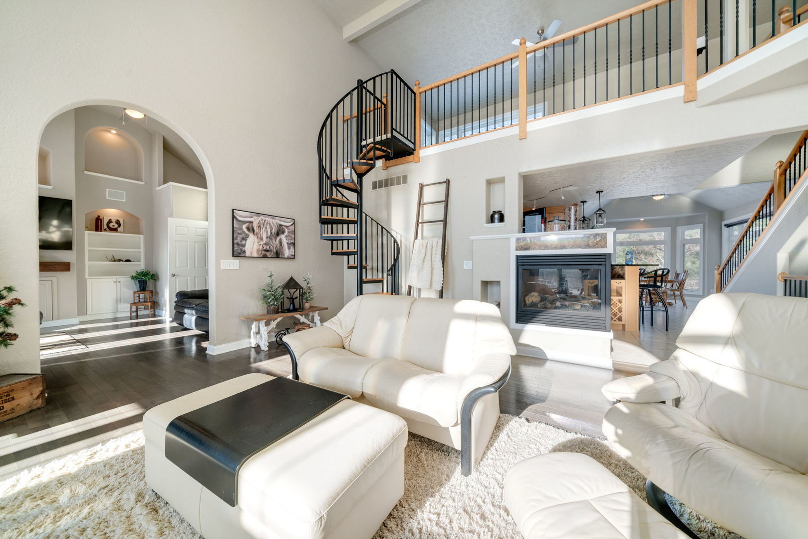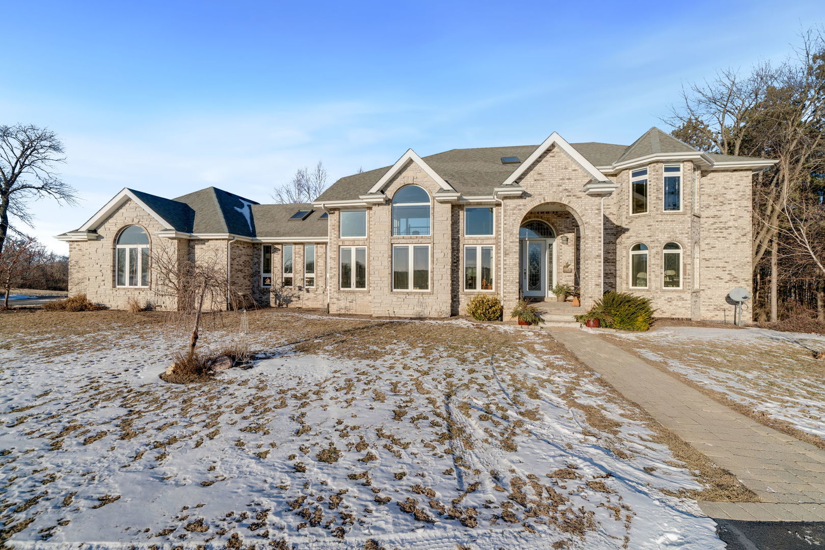 Discover a truly one of a kind custom built estate offering over 5,000 finished square feet nestled on 80 breathtaking acres. Proudly owned by the original owner, this exceptional property blends luxury, space, and natural beauty in a setting rarely found. A grand entrance welcomes you into the stunning living room featuring soaring ceilings and a dramatic indoor waterfall, creating an unforgettable first impression. The home flows effortlessly into the gourmet kitchen complete with granite countertops, stainless steel appliances, and a warming drawer, perfect for entertaining. An inviting eat in area with expansive windows showcases gorgeous panoramic country views. The main floor also includes a formal dining room, family room, laundry room, and two bedrooms, offering both comfort and functionality. Upstairs, retreat to the grand primary suite featuring two large walk in closets and an oversized spa like bathroom with soaking tub, tile shower, and private sauna. A versatile bonus space provides the perfect option for a home office, sitting area, or additional living space. The finished lower level offers two bonus rooms that could easily serve as additional bedrooms, a full bathroom, abundant storage, and more flexible living space. An attached, heated 3 car garage adds convenience, while the oversized detached 6 car garage offers incredible potential, featuring a one bedroom apartment with living room, kitchen, full bath, and laundry. Ideal for multi-generational living, guests, or an in home business. The land itself is equally impressive with a beautiful mix of tillable acreage providing income, wooded areas for recreation and hunting, and a creek winding through the property. Zoned Agricultural and serviced by natural gas. This remarkable property is a true treasure, offering privacy, versatility, and endless opportunity. Move quickly, opportunities like this are rare.