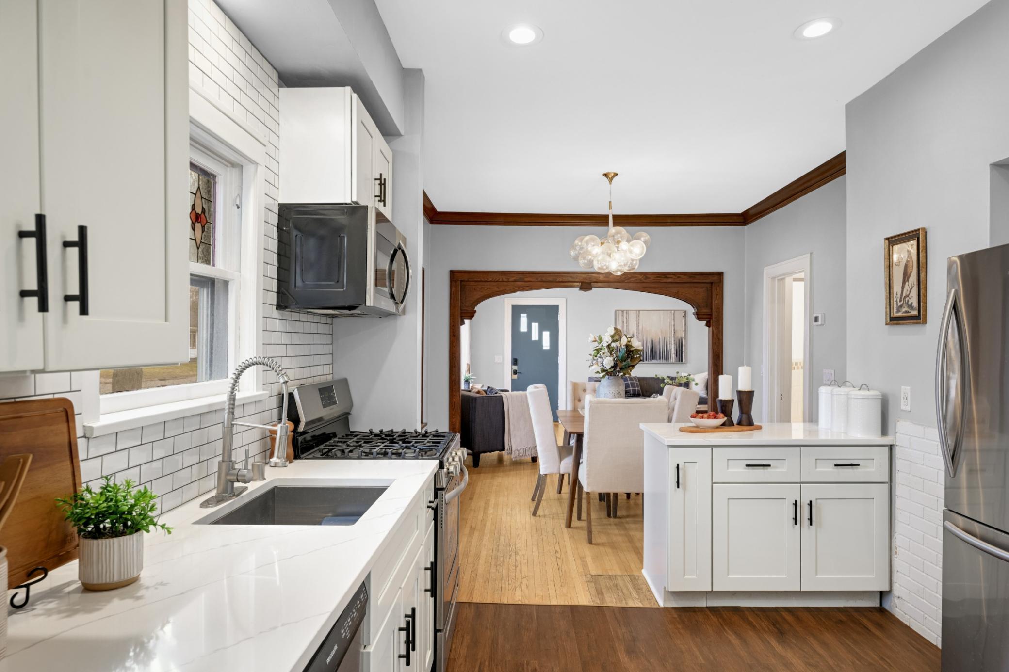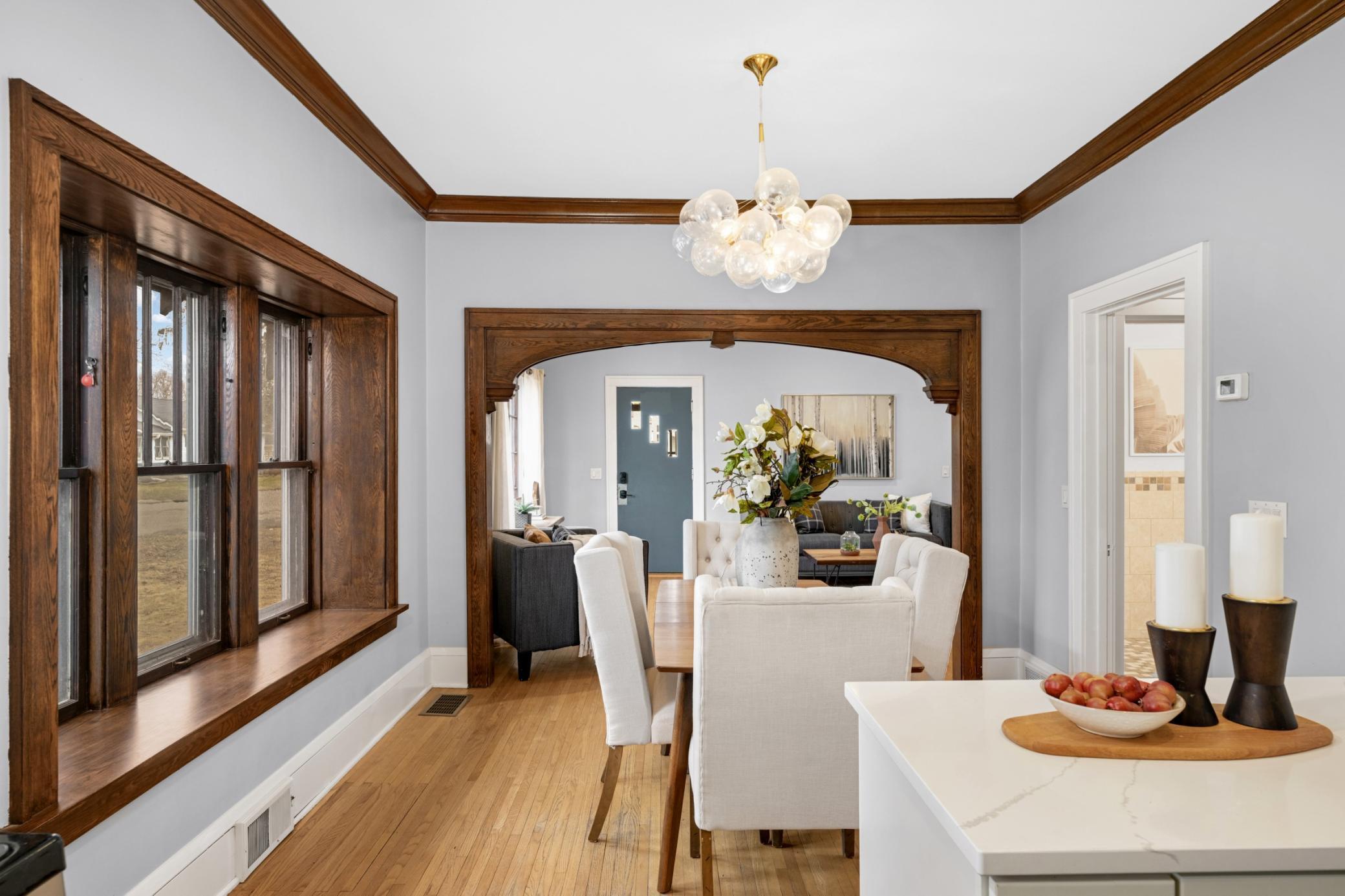 Gorgeous corner-lot home in highly sought-after Robbinsdale! Beautifully maintained with thoughtful updates throughout, this home features an updated kitchen, open floor plan, spacious main-level primary bedroom, stunning natural woodwork, hardwood floors, and custom built-ins. Newer roof and HVAC, new oversized water heater in 2025. The lower level was extensively renovated in 2024 with new luxury vinyl plank flooring, fresh paint, a fully renovated bathroom with elegant tile and modern finishes, plus new carpet added in 2025. Ideally located near downtown Robbinsdale, parks, Crystal Lake, dining, shopping, and more.