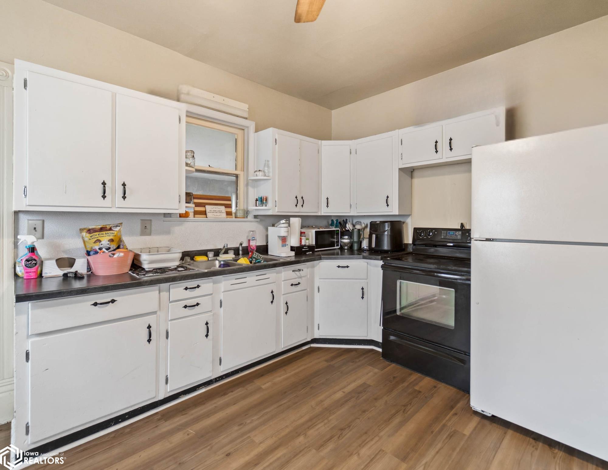 Charming and updated 1-bedroom home with convenient one-level living! This property offers just over 700 square feet of thoughtfully designed space, featuring modern updates throughout. Enjoy relaxing mornings on the front porch before stepping inside to a comfortable living area with an additional space perfect for dining or a home office. The large kitchen provides plenty of room for cooking and storage, while the main-floor laundry adds everyday convenience. The bedroom connects directly to the bathroom, creating an efficient and functional layout. An enclosed back patio offers extra storage or flexible space and leads directly to the attached one-car garage. Outside, you'll find a spacious backyard with plenty of room to enjoy the outdoors. Major exterior improvements include new siding, roof, and gutters installed following storm damage in April 2021, along with worn flooring replaced in June 2025. This cozy home offers simple, low-maintenance living and could also be a great investment opportunity. With a tenant already in place, it is an attractive option for buyers looking to expand their rental portfolio or step into property ownership with immediate income potential.