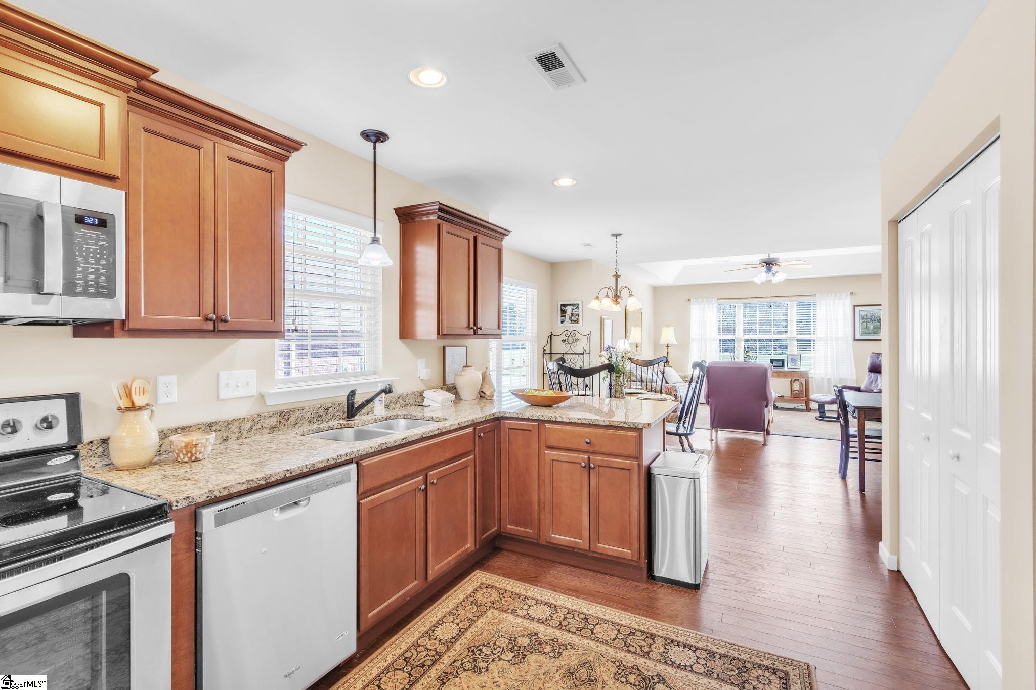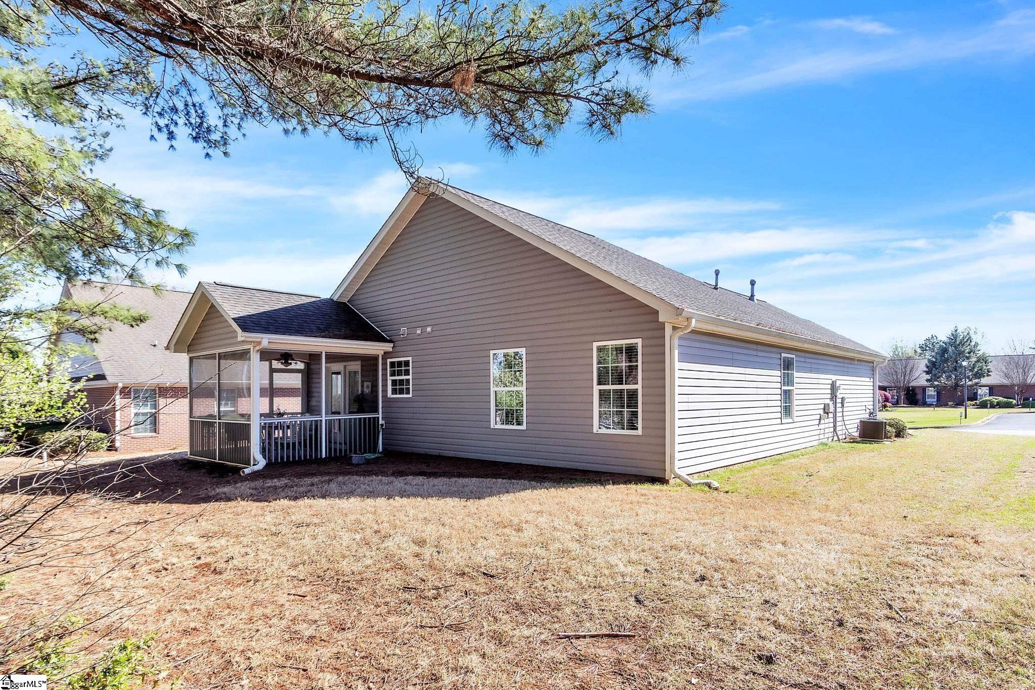 Enjoy the ease of single level living in this well located 2bedroom home in desirable 55+ community. Designed for low maintenance living, this property offers comfort, convenience, and a fantastic, central location between Greenville and Spartanburg. The monthly HOA Includes utilities, lawn maintenance and call system with pendant, making this the perfect place to retire and enjoy and easier way of living. The home features an open floor plan with two spacious bedrooms and two full baths. The outside features a front stoop, attached garage and a cute screen porch perfect for relaxing!