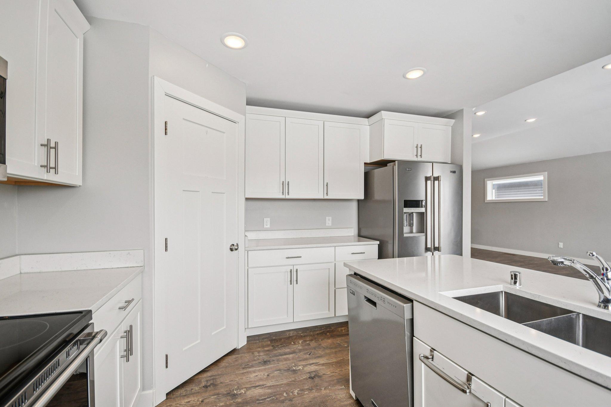 Check out this gorgeous maintained home in SE Hutchinson! Prime opportunity for one level living with a fully finished walk-out basement that includes two additional bedrooms, family room, storage and an office. Entering the home, you feel it open up to your large living room with vaulted ceiling, LVP flooring, recessed lighting and electric fireplace. The wonderful white enameled kitchen cabinetry and trim work really stand out against the quartz countertops and stainless steel appliances! The large main floor primary bedroom features a private bath with a walk-in closet and double vanity. Main floor laundry area as well! Convenient to everything in Hutch with close access to Highway 22, grocery and downtown. Low maintenance home without the additio9nal cost of an association.