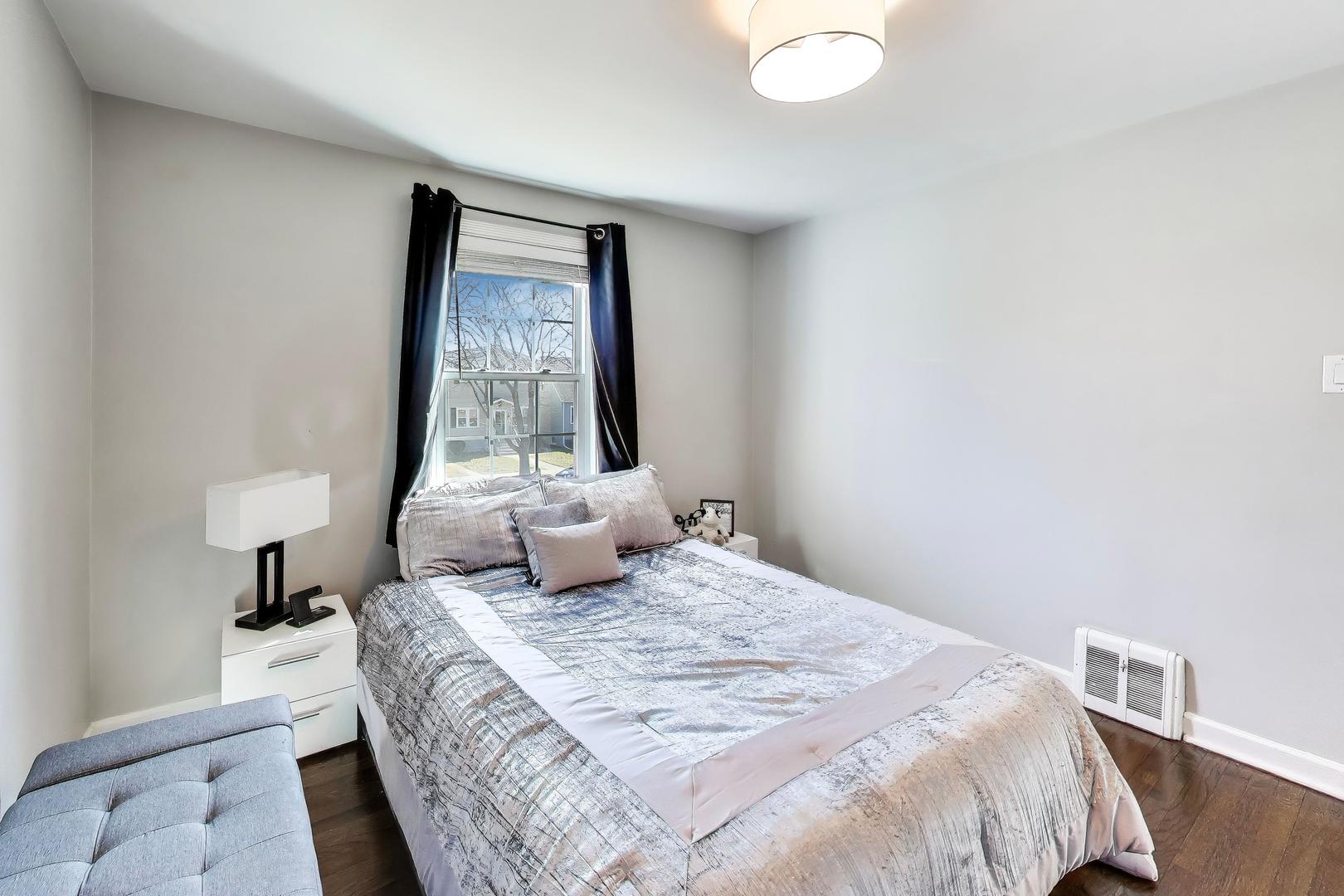 Your own personal retreat awaits at 4138 N. Olcott! This gorgeous Georgian sits on an oversized 60x133 lot and offers the perfect blend of charm, space, and modern updates. The home features three generously sized bedrooms, all conveniently located on the second floor, along with a full bathroom. Beautiful mocha-stained hardwood floors run throughout the first and second levels, adding warmth and character. The open-concept kitchen flows seamlessly into the living room and formal dining area, creating an ideal layout for both everyday living and entertaining. Enjoy stainless steel appliances, white cabinetry, and ample countertop space for cooking and hosting. The finished basement provides fantastic additional living space with recessed lighting, a stylish Pinterest-worthy laundry area featuring a Samsung side-by-side washer and dryer, and a spacious walk-in shower with classic subway tile and shower pan. Step outside to your expansive backyard - perfect for gardening, playtime, or simply relaxing outdoors. Whether you're entertaining on the deck, grilling on a beautiful day, or letting pets roam, this yard offers endless possibilities. Located just minutes from Harlem & Irving Plaza, with easy access to Target, Ulta, Dick's Sporting Goods, Old Navy, Chipotle, and more. Zoned for Giles Elementary and Ridgewood High School.