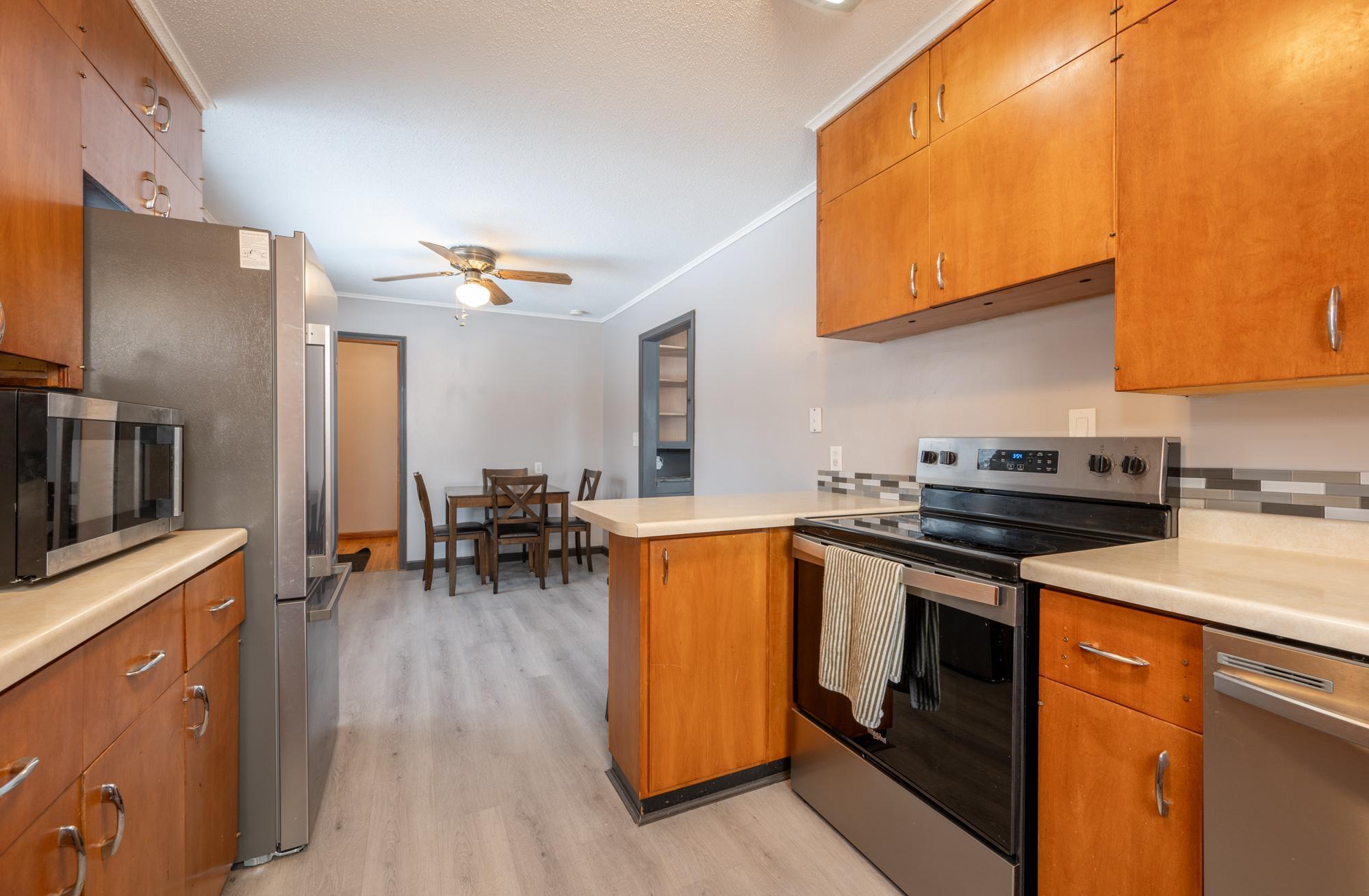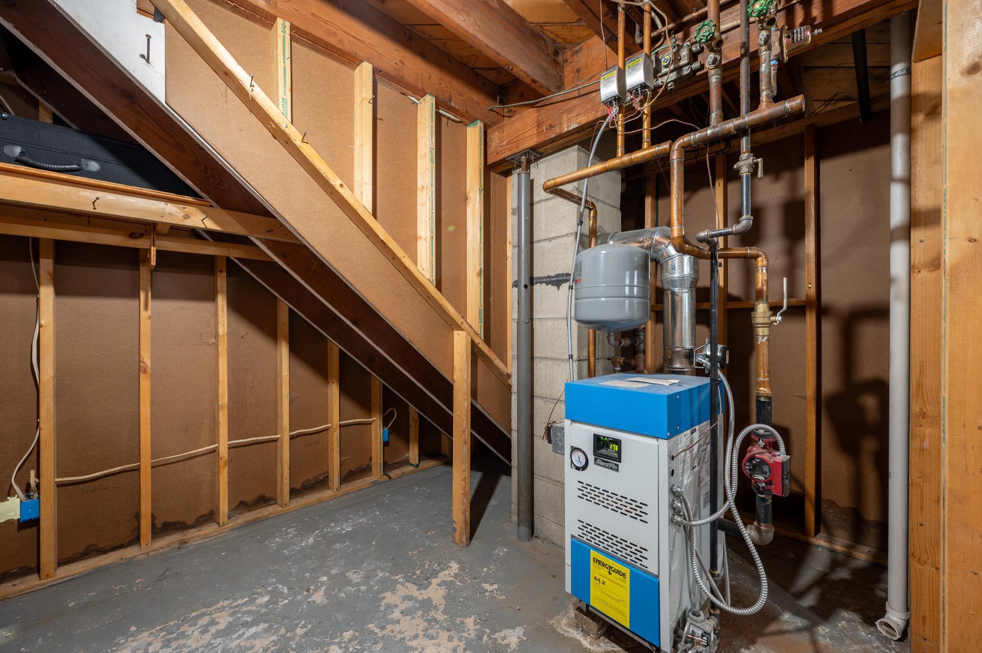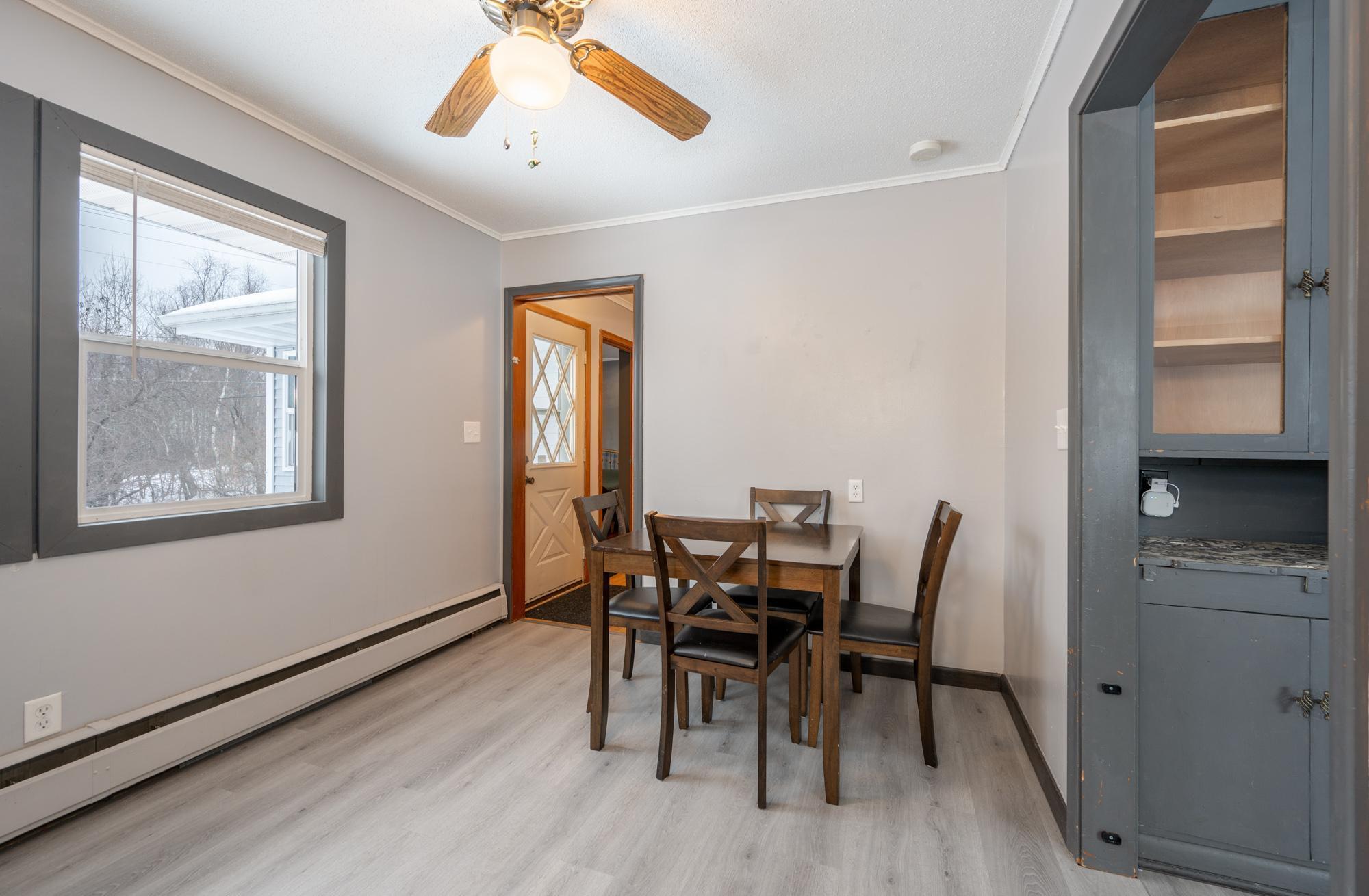 Nicely maintained rambler with three bedrooms on the main floor. Cozy yet flooded with natural sunlight. This home features warm hardwood floors in the bedrooms and charming character throughout. Numerous updates include the roof, siding, many windows, main-floor bathroom, electrical breaker panel, new appliances in 2025, and a new garage completed in 2023/2024. A new boiler was installed in 2022, along with the added peace of mind of a compliant lateral sewer line. Walking distance to two parks. Situated on a city lot with a surprisingly private feel, the backyard offers lots of wildlife and seclusion thanks to an adjacent parcel of undeveloped land along the rear property line.