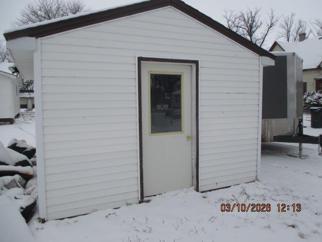 Check out this one story home that features: 2 bedrooms, 1.5 baths on main floor, kitchen, dining area, living room, laundry on main floor. A full basement with egress window. There is a large one car detached garage, nice large storage shed in back, vinyl siding, metal soffits, deck on back. Rear door is being replaced and is padlocked, so you must walk around the house to look in the garage and shed in back for now. The key in the lockbox fits all the doors.