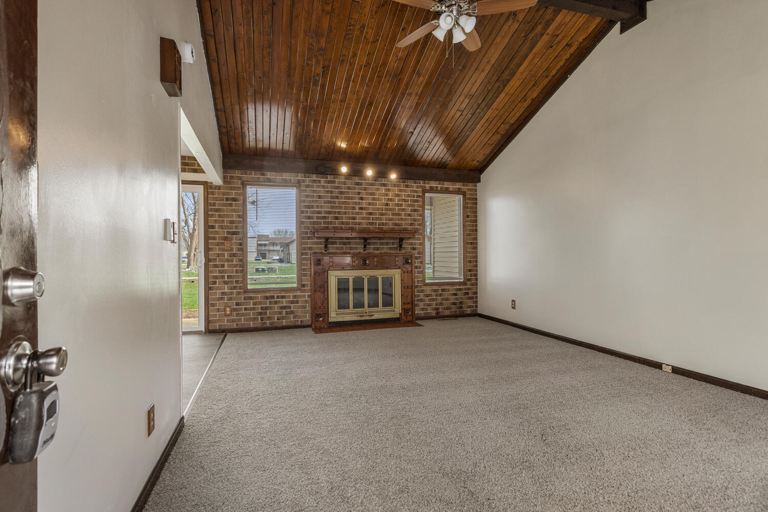 Move-in ready home, just waiting for you! Fresh paint and carpet, vaulted pine ceilings in living room. 1st floor bedroom and full bathroom, with 2 additional bedrooms and a full bathroom upstairs. Enjoy the nice backyard views and many condo amenities. Swimming pool, tennis courts, and rec. room available. Schedule to see this one today!