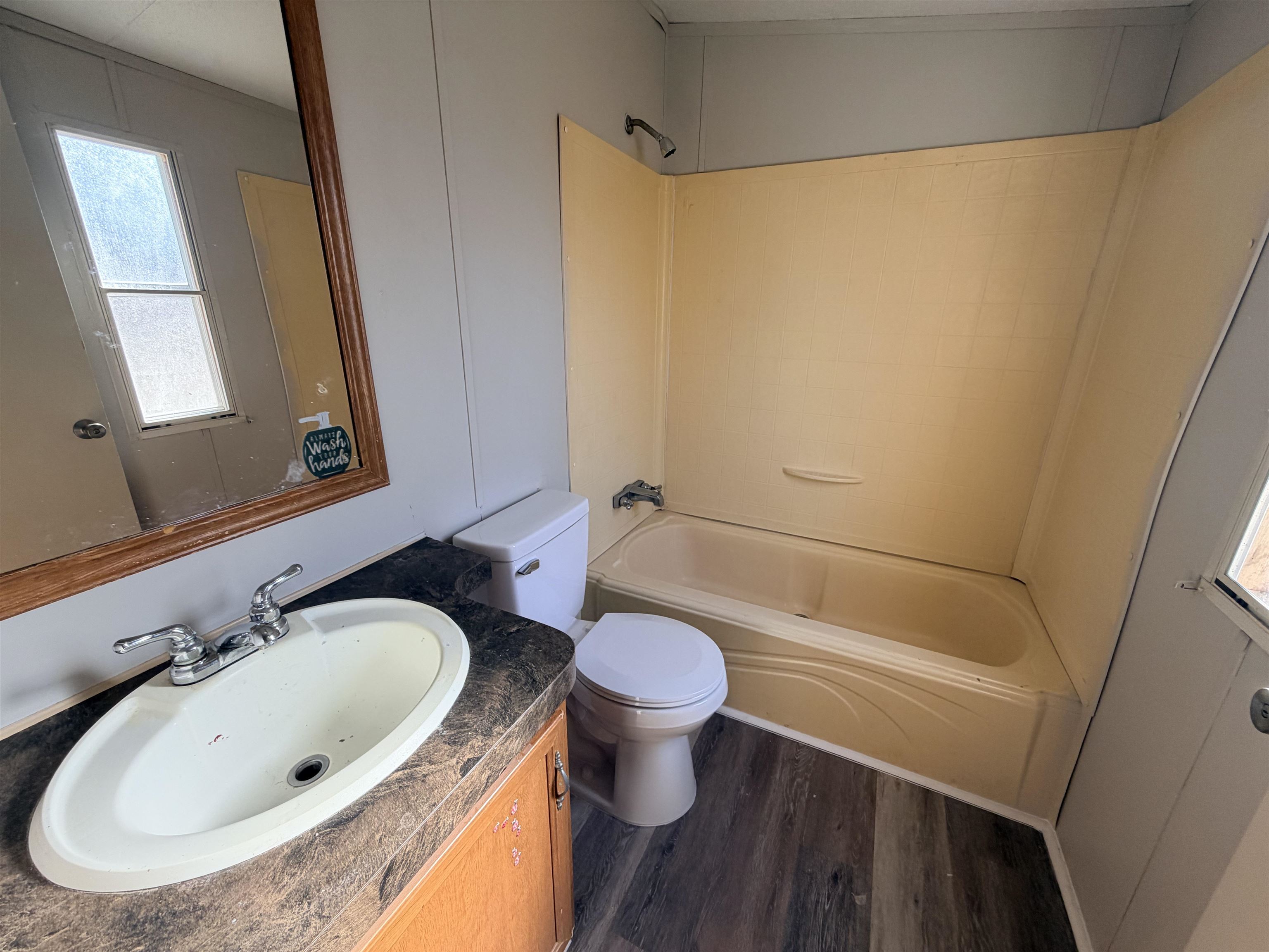 This freshly updated 2 bedroom, 2 bathroom mobile home offers comfortable living in the highly sought after Hardin-Jefferson School District. From the moment you walk in, you will appreciate the fresh paint, clean lines, and modern luxury vinyl plank flooring that flows throughout the home. The open living area provides a welcoming space to relax or entertain, while the kitchen comes fully equipped with a refrigerator, stove, dishwasher, and even a washer and dryer for added convenience. Everything you need is already in place, making move in simple and stress free.