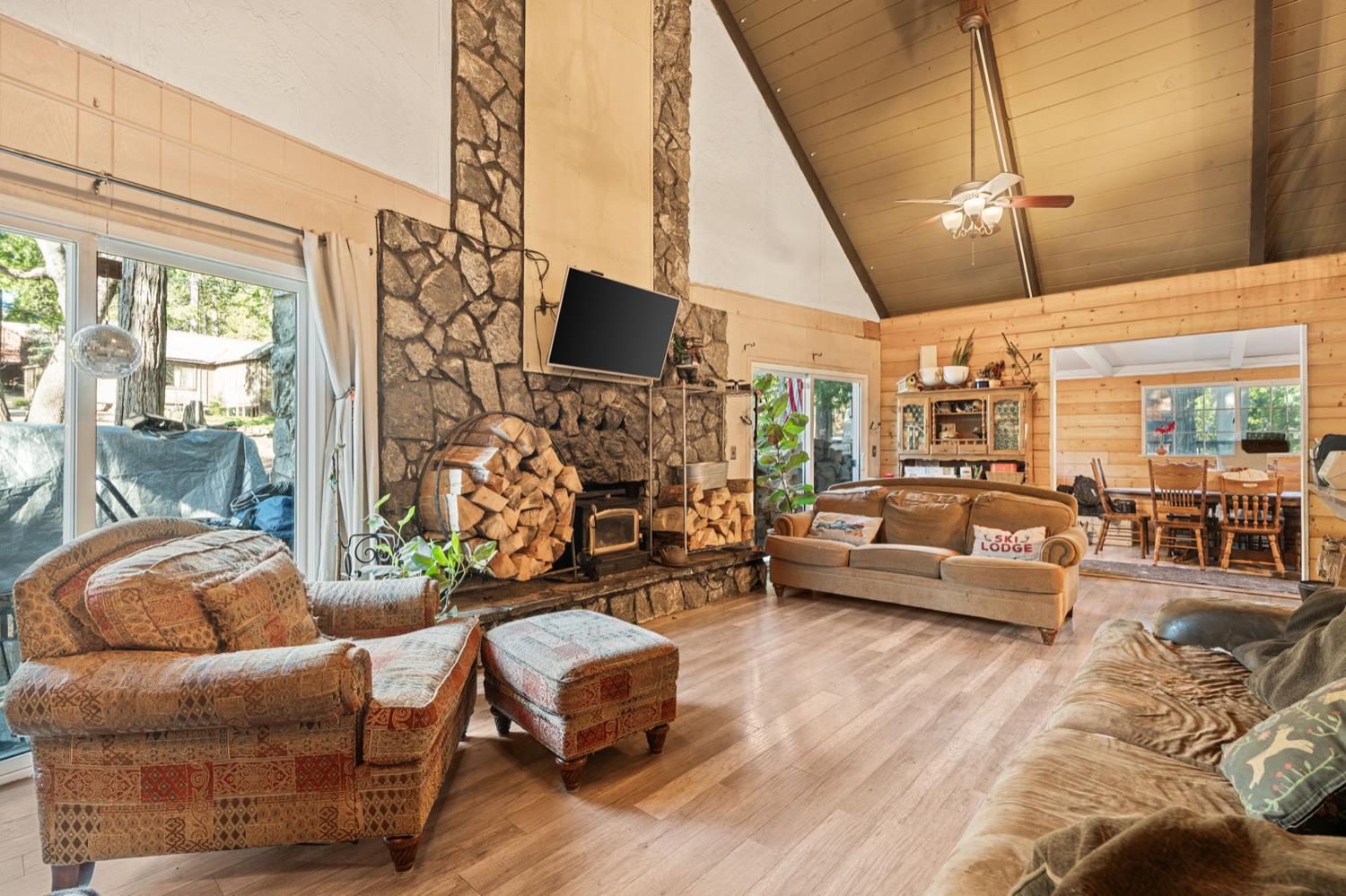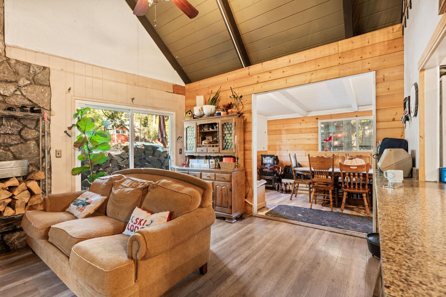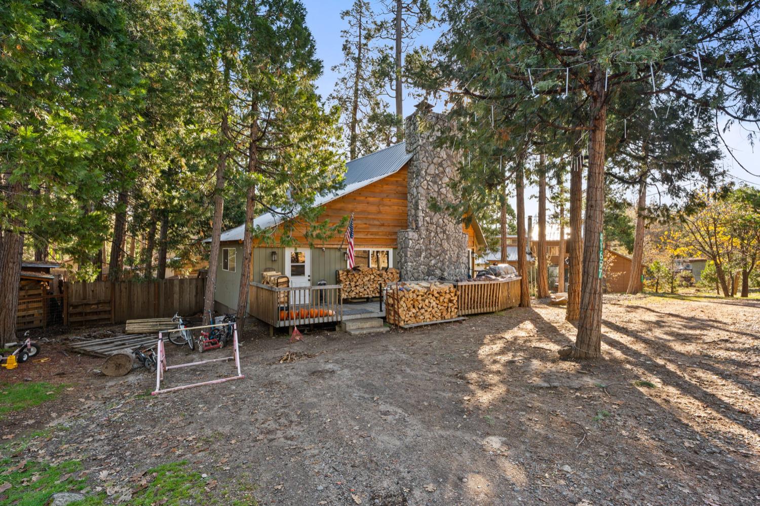Welcome to Meadow Lakes your charming little cabin in the woods!Nestled in a unique community of both full-time residents and weekend retreaters, Meadow Lakes offers the perfect setting whether you're looking for a full-time mountain home or a peaceful getaway. Conveniently located between the town of Auberry and just below Shaver Lake, this area receives generous snowfall each winter, creating a true winter-wonderland experience.This cozy cabin features a stunning stone fireplace, gorgeous vaulted ceilings, a quaint dining nook, A/C, an updated kitchen, and a fenced backyard. Enjoy access to the community pond and picnic area ideal for kayaking, fishing, or simply relaxing as you feed the ducks.A charming mountain retreat with so much to offer this one truly deserves your attention!