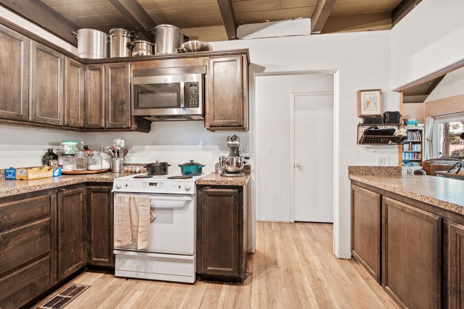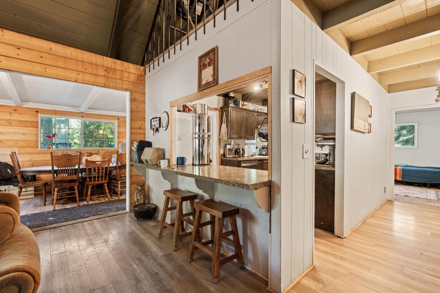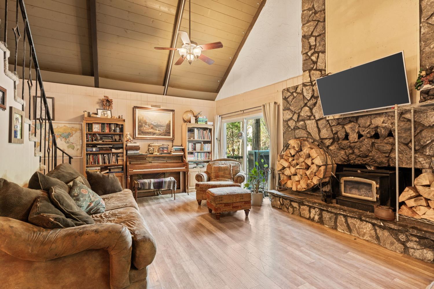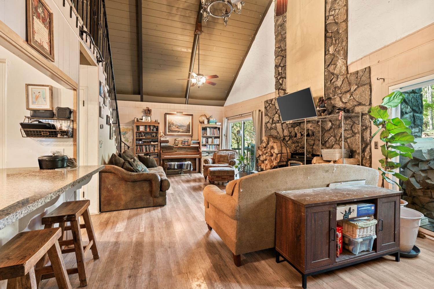 Welcome to Meadow Lakes your charming little cabin in the woods!Nestled in a unique community of both full-time residents and weekend retreaters, Meadow Lakes offers the perfect setting whether you're looking for a full-time mountain home or a peaceful getaway. Conveniently located between the town of Auberry and just below Shaver Lake, this area receives generous snowfall each winter, creating a true winter-wonderland experience.This cozy cabin features a stunning stone fireplace, gorgeous vaulted ceilings, a quaint dining nook, A/C, an updated kitchen, and a fenced backyard. Enjoy access to the community pond and picnic area ideal for kayaking, fishing, or simply relaxing as you feed the ducks.A charming mountain retreat with so much to offer this one truly deserves your attention!