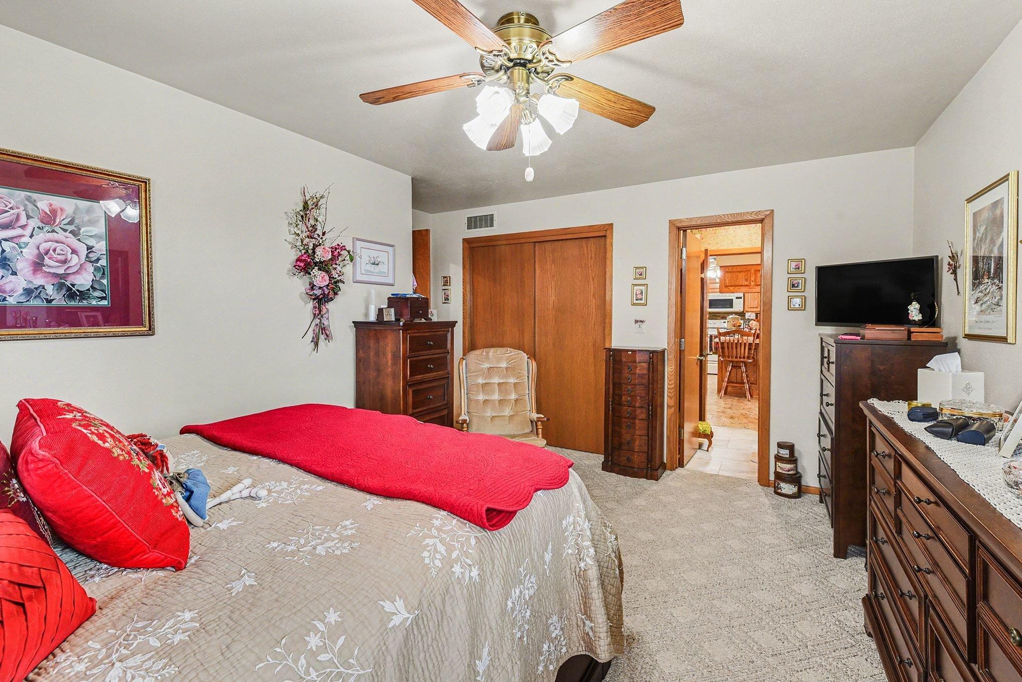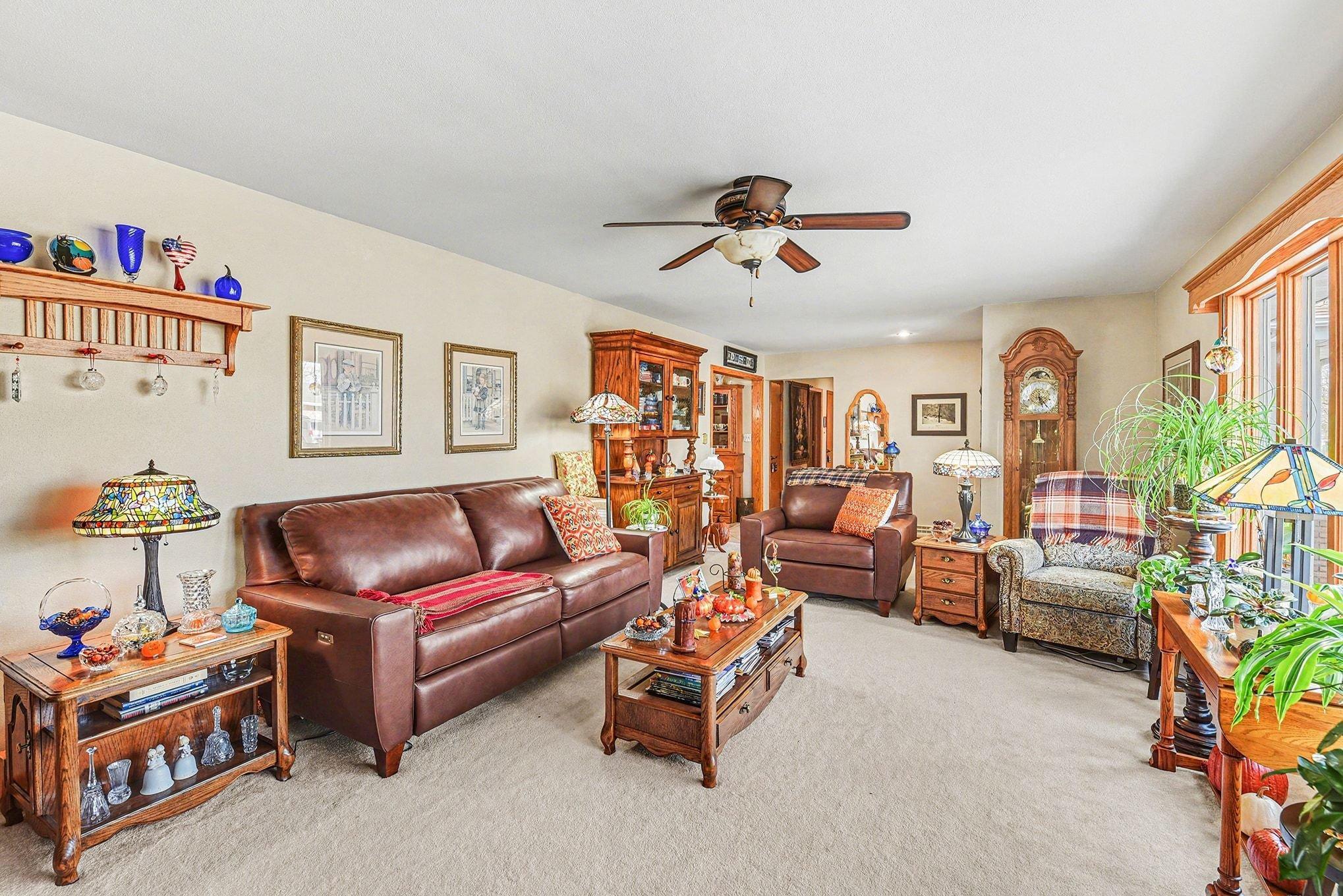 Well-maintained 3-bedroom, 2-bathroom ranch home with heated garage and shop located at 417 S Fairview Drive. This move-in ready home offers convenient main floor living, main floor laundry, and a functional layout filled with natural light.The kitchen features breakfast bar seating, center island, tile backsplash, tile flooring, and eat-in dining, with an adjacent dining area. A bright sunroom provides additional living space and opens to the paver patio, creating the perfect setting for relaxing or entertaining outdoors.The primary bedroom includes a private bath with durable onyx shower, while two additional bedrooms and a full bathroom complete the main level.Property highlights include a finished and heated double garage plus additional shop space, ideal for storage, projects, or workshop use.Quality construction, excellent upkeep, and over 30 years of pride in ownership make this property a standout opportunity for buyers looking for a ranch home with shop space, sunroom, and main floor living.