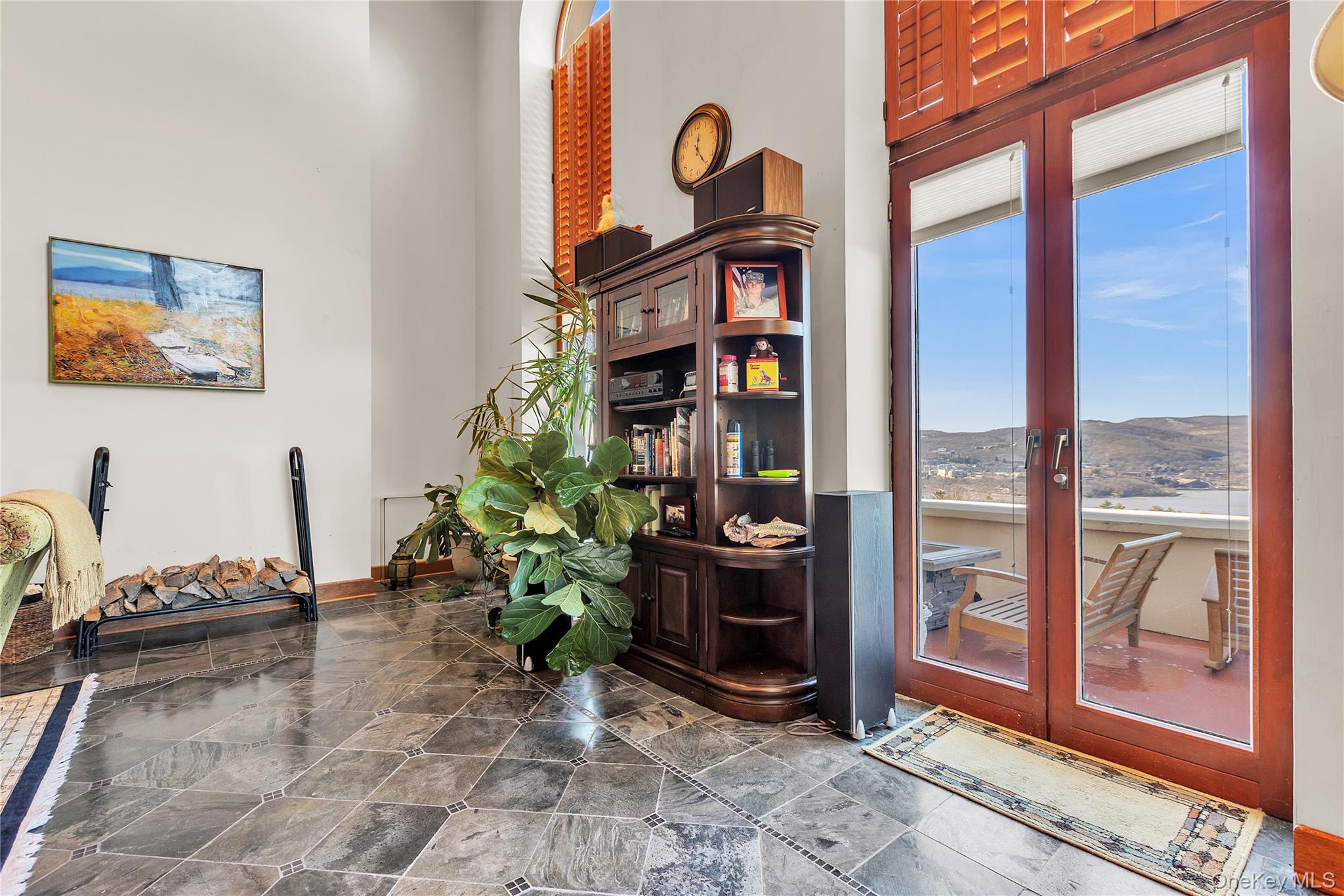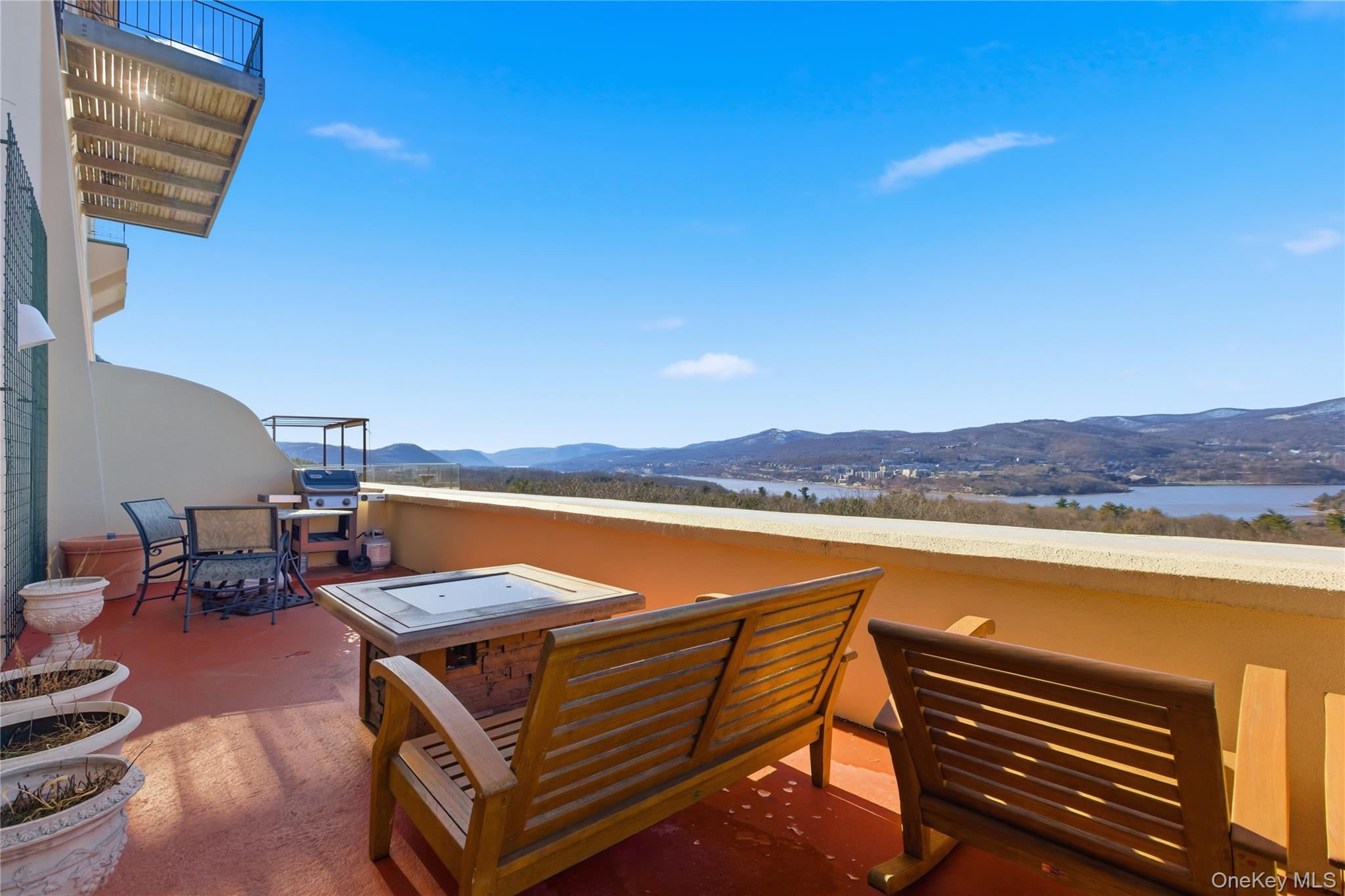 Rising above the Hudson Highlands with commanding views and unmistakable stone architecture, Dicks Castle remains one of the regions most recognizable and storied landmarks. A Moorish style castle fashioned after Alhambra in Granada, Spain and situated on 26 wooded acres, the exterior features turrets, arches and courtyards surrounded by sculptures and stone walls well over 100 years old. This residence offers an exceptionally rare opportunity: the ability to live inside a piece of Garrison history while enjoying space, privacy, and the contemporary comforts expected of a modern luxury home. This particular home is unlike any other in the castle. At approximately 2,700 square feet, it is the only unit with three full bedrooms and three full baths, a distinction that sets it apart immediately. The interior design elevates the castles character with thoughtful updates-tile floors from India with radiant heat, soaring volumes of space, and a layout that blends openness with intimate architectural moments. The heart of the home is a dramatic great room anchored by a fully functional Reynard fireplace and framed by 23-foot ceilings. From this vantage point, two floor-to-ceiling doors and windows open to sweeping panoramas of the Hudson River Valley and the lights of the United States Military Academy at West Point. Few homes in the Hudson Valley offer a view with this level of scale, continuity, and emotional impact. The primary bedroom suite looks out over the great room, giving it a lofted sense of retreat while maintaining connection to the architecture and the views beyond. Two additional bedrooms are generously sized, each appointed with Jacuzzi bathtubs, making them ideal for guests or extended-stay.Every room is positioned to take advantage of natural light and the castles unique lines. The floor plan supports both quiet day-to-day living and sophisticated entertaining, with thoughtful storage, a calm material palette, and an overall feeling of permanence that only legacy structures can provide. Exterior living is equally compelling. A private deck extends the living space outdoors, complete with a propane-fueled fire box perfect for warm evenings under the stars, watching river traffic drift below or the night-time glow of West Point across the valley.There is no other property like this. Inventory within Dicks Castle is scarce, and homes with this scale, bedroom count, and vantage point are almost never available. For buyers who want something that stands apart architecturally, historically, and emotionally this is a chance to own a singular residence in one of the Hudson Valleys most iconic landmarks.
