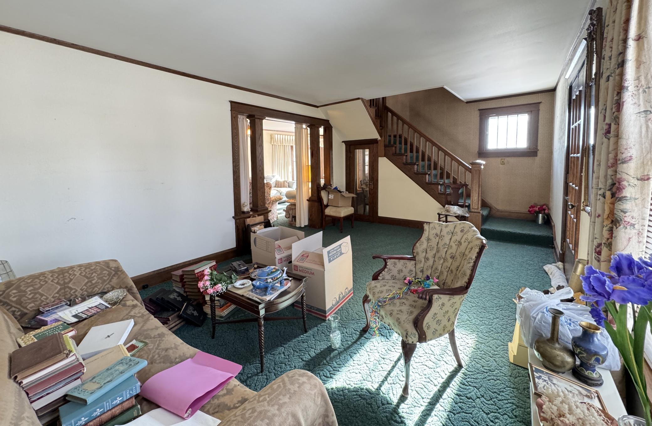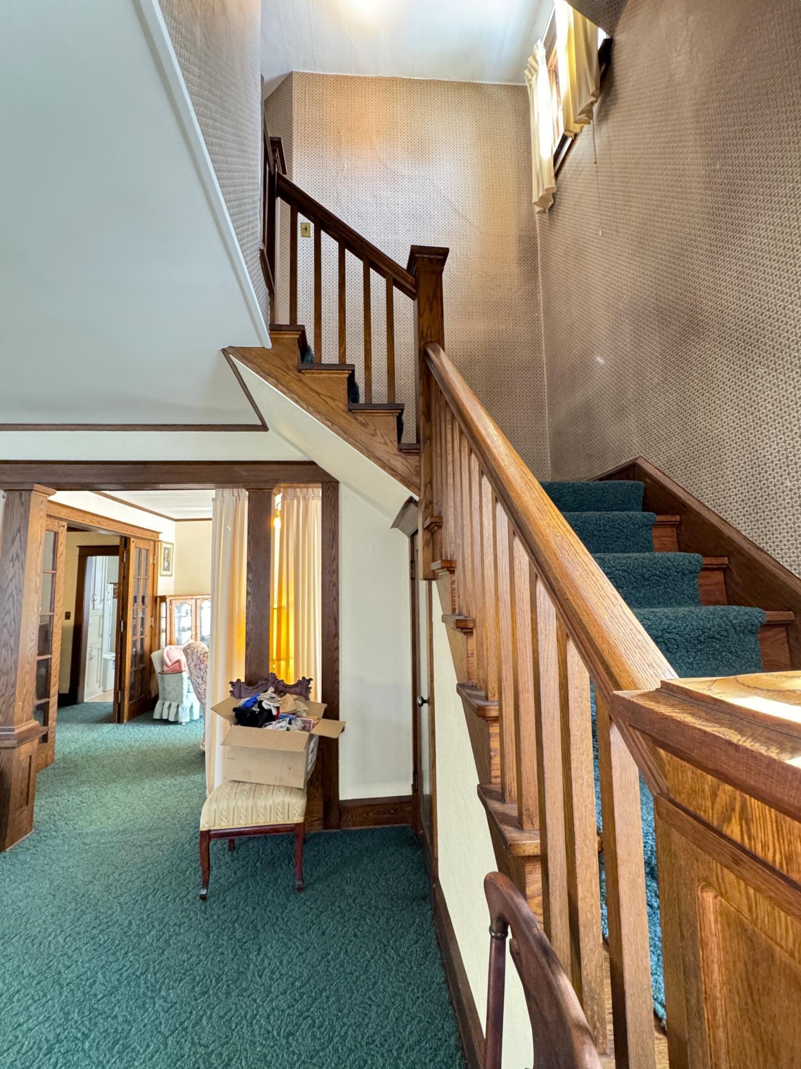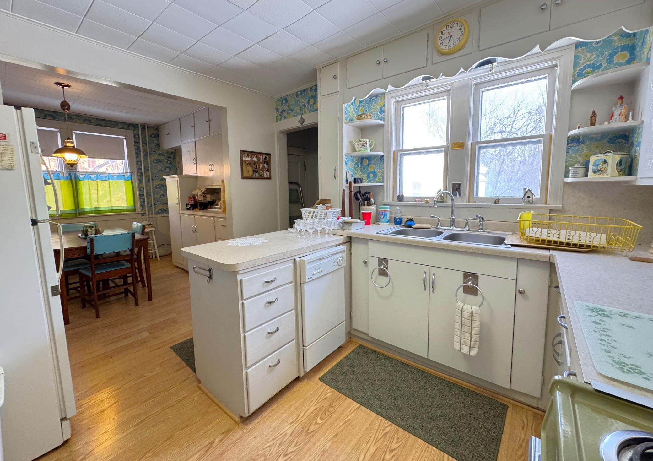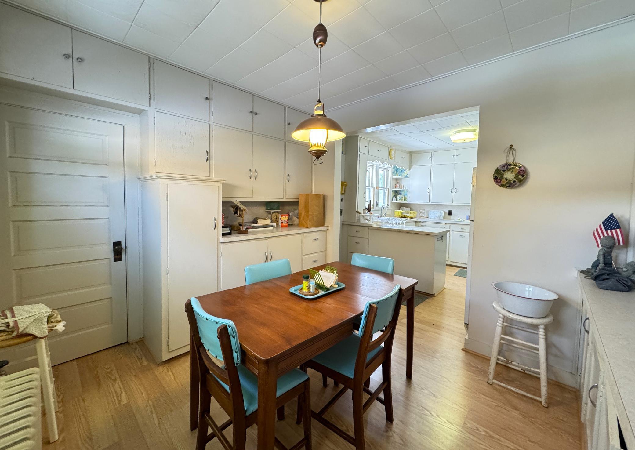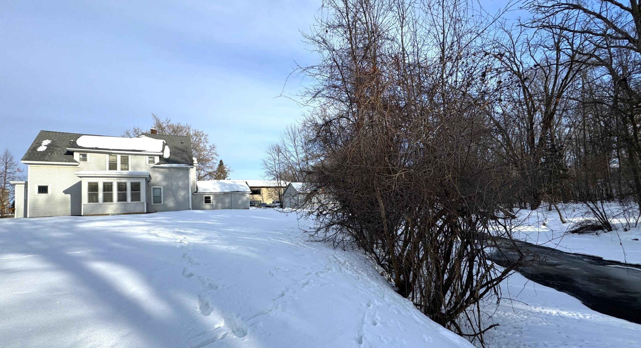 Wonderful opportunity in the city of Aitkin located on a 0.60 acre lot with 221 of Ripple River frontage. This historical 5 bedroom, 2 bath home is overflowing with charm. The many windows and original woodwork are amazing. Step inside and you will find a large porch, a well-appointed eat-in kitchen with plenty of cabinets for storage, a 3/4 bath off the kitchen (or turn it back into a bedroom), large formal dining room, family room, formal living room that has a hanging wall for a temporary bedroom that can be removed. Upstairs you will find 5 bedrooms that are all unique and well-sized, a large full bath and an additional staircase so you can get upstairs via the front or back of the home. The backyard has beautiful views and access to the Ripple River with a gentle slope to its winding gently flowing waters, plenty of yard for play and privacy, plus a large 24x24 detached 2 car garage. This is an estate and is being sold AS IS All of the personal property and debris will be removed shortly. Home is in some disrepair and needs some TLC as well as removal of personal property. Roof, siding, furnace and water heater have been replaced in recent years.