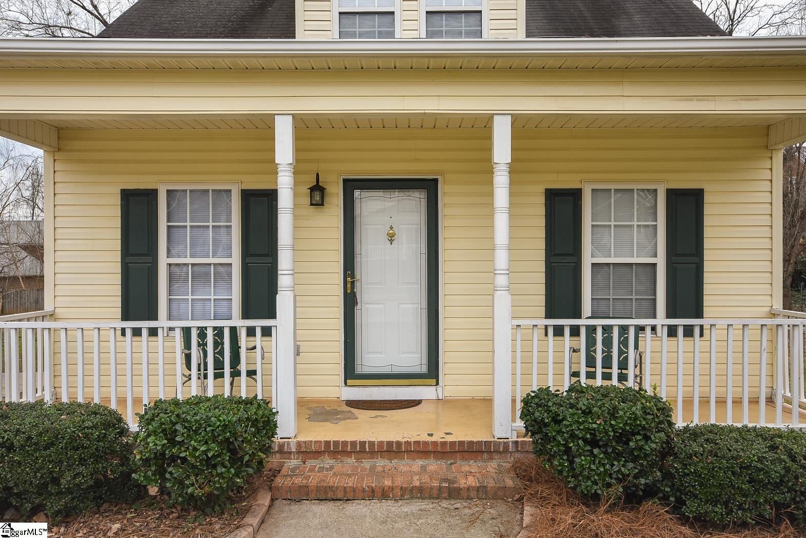 Downtown home close to restaurants and shopping. Charming covered front porch with 3 BR / 2 Bths. In a cul-de-sac. Deck overlooks large private shady backyard with storage building. Large Primary Bedroom and Bath is upstairs and has vaulted ceiling and sitting area. Kitchen has maple cabinets and newer appliances. Within walking distance to Downtown Greenville.