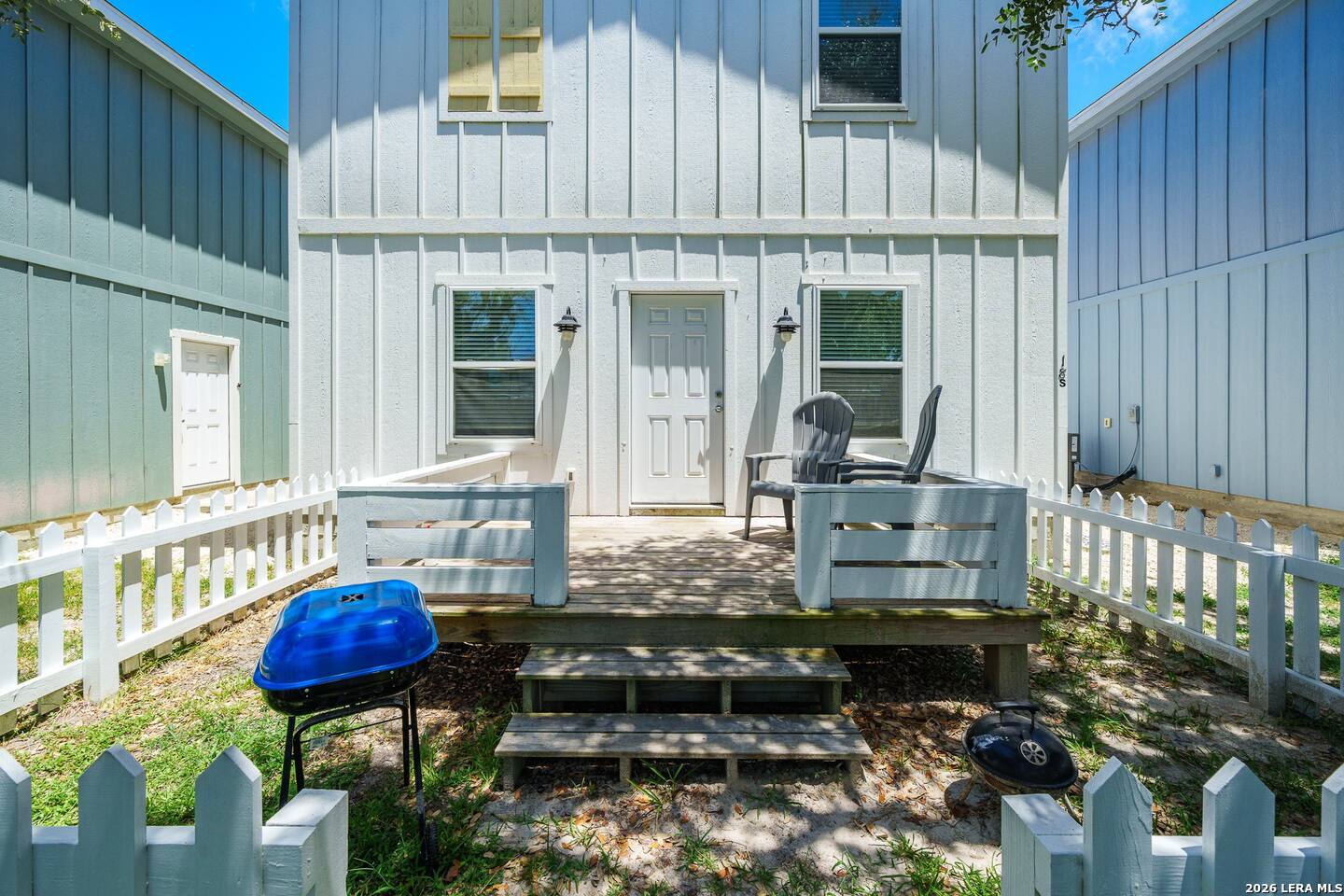 This fully furnished and turnkey 3-bed, 2-bath coastal cottage is located in a boutique stand-alone community and is ready to serve as your personal coastal retreat or income-producing vacation rental. Ideally situated on the south side of Rockport, just minutes from Cove Harbor Marina and boat ramp, Downtown Rockport, and Rockport Beach. Designed with both comfort and quality in mind, the open-concept layout features an open kitchen with an eating bar and butcher block countertops. The primary bedroom and bath are conveniently located downstairs, while upstairs offers two additional bedrooms plus a flexible second living area or office space. Step outside to your front yard and deck overlooking the beautifully maintained common area complete with a pool, fire pit, and stunning mature oak trees.