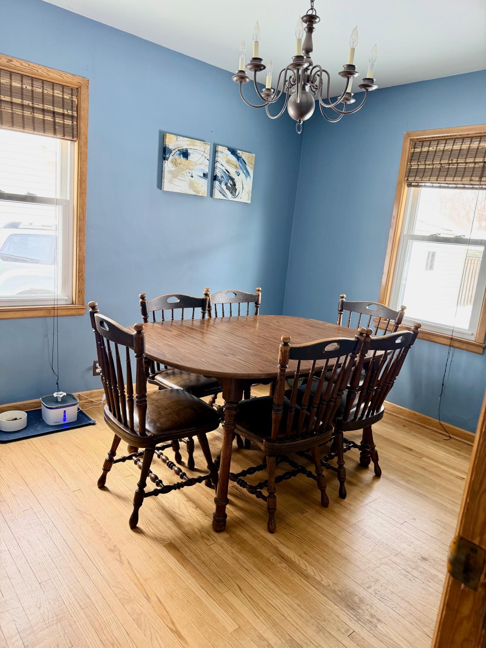 2 Plus Bedroom, 2 Bath 11/2 story with metal siding, shingles on house new in 2025, furnace is 3 years old, water heater 5 years old, vinyl windows. This home is great for the growing family, kitchen with informal dining on main that could be made into a bedroom, Huge main floor living room, 2 bedrooms up, lower level has a large room which sellers are using as their bedroom would just need egress window. Big private back yard with 2 storage sheds and a big 2 car garage built in 1984. This is a must see !!