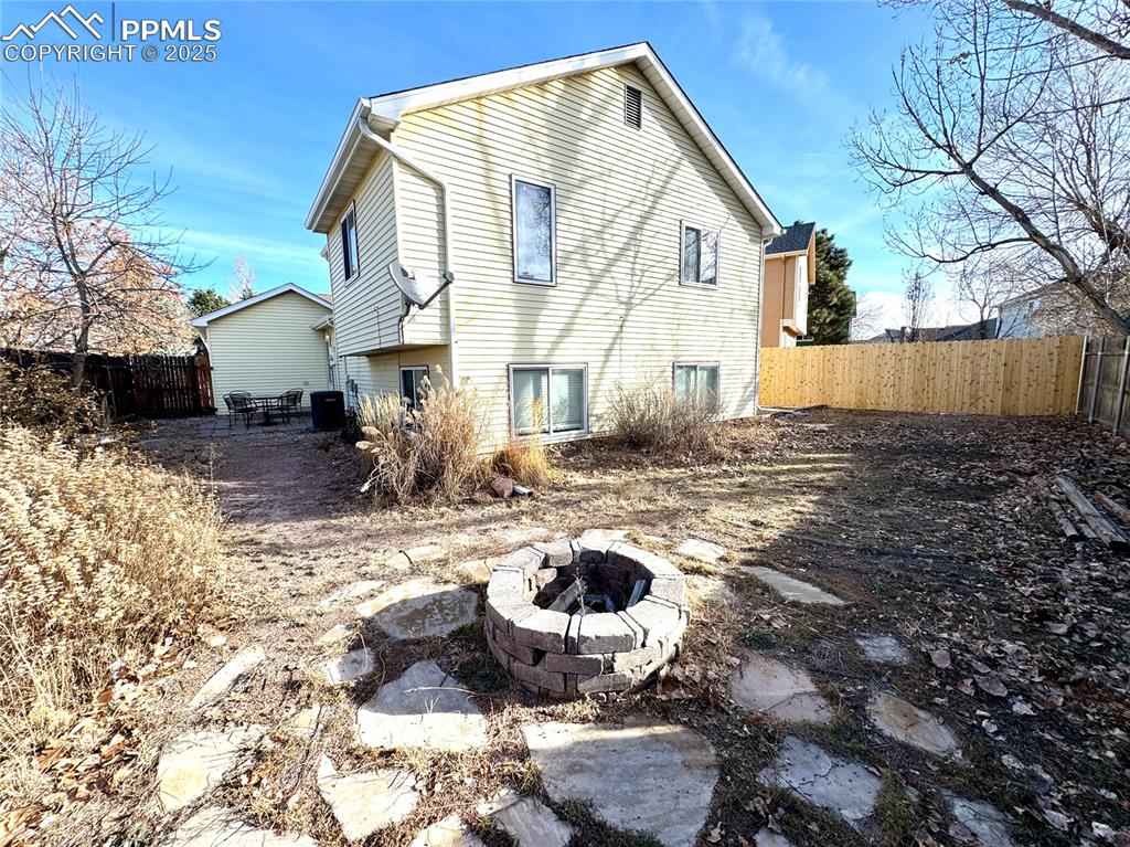Welcome home to this beautifully maintained 4-bedroom, 2-bath residence located in the highly sought-after, award-winning School District 20. Nestled in a nice, quaint neighborhood, this home offers both comfort and convenience with walking paths nearby and close proximity to all amenities.xD;xA;The main level features a bright, open floor plan that seamlessly connects the kitchen, kitchen island, dining area, and living room, making it perfect for everyday living and entertaining. Step directly from the kitchen into a private backyard, surrounded by a 6 foot privacy fence, ideal for relaxing or hosting gatherings, complete with a cozy firepit.xD;xA;Recent updates include a new roof, gutters, downspouts and central air installed in 2023, offering peace of mind and year-round comfort. The home also includes a 1-car oversized garage with ample storage space. Entire home is incased with low maintenance durable vinyl siding.xD;xA;Upstairs, enjoy beautiful mountain views, including Pikes Peak, from one of the bedroomsx2014;a perfect spot to start or end your day.xD;xA;With thoughtful updates, beautiful views, and an unbeatable location, this home truly has it all. xD;xA;Donx2019;t miss it!