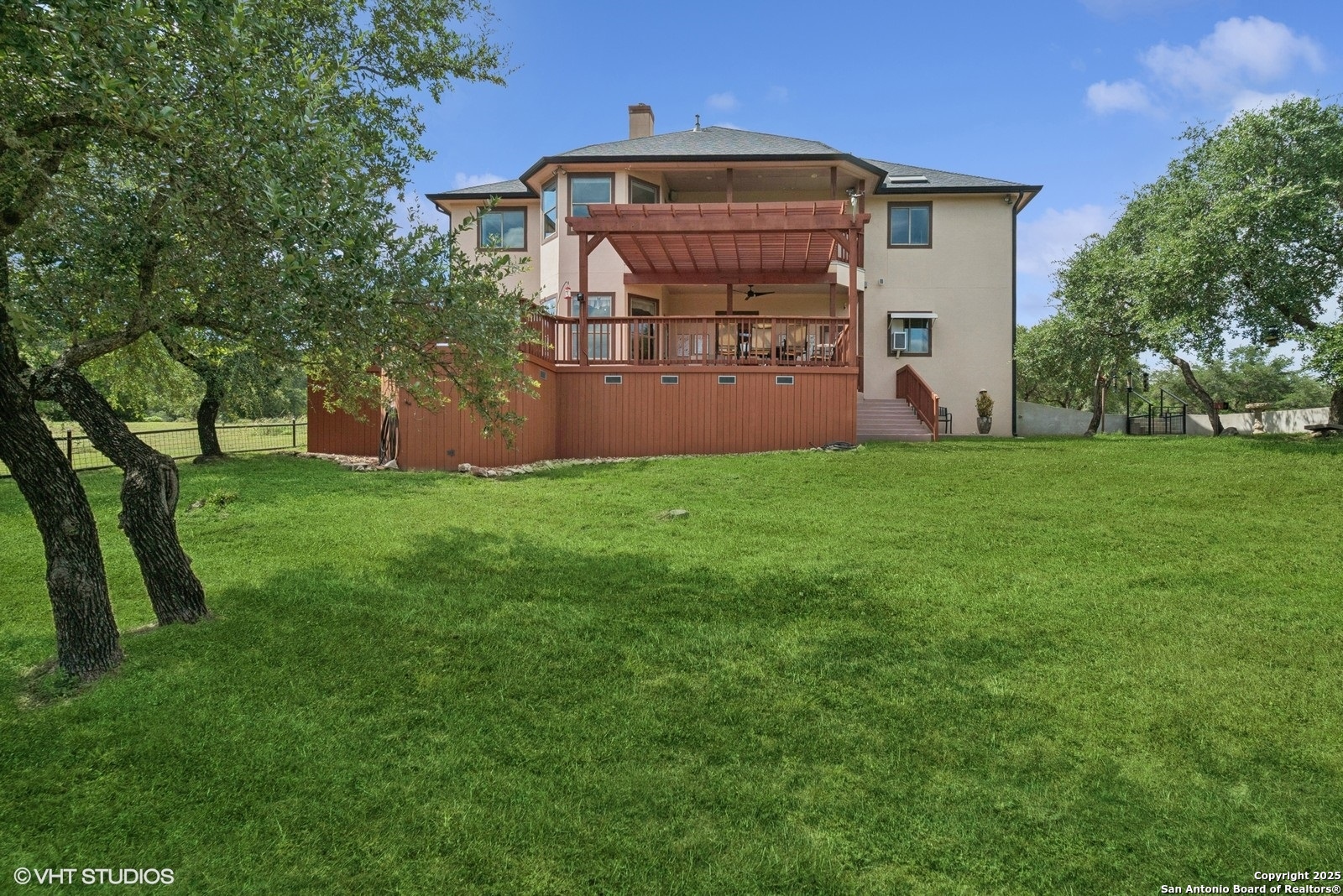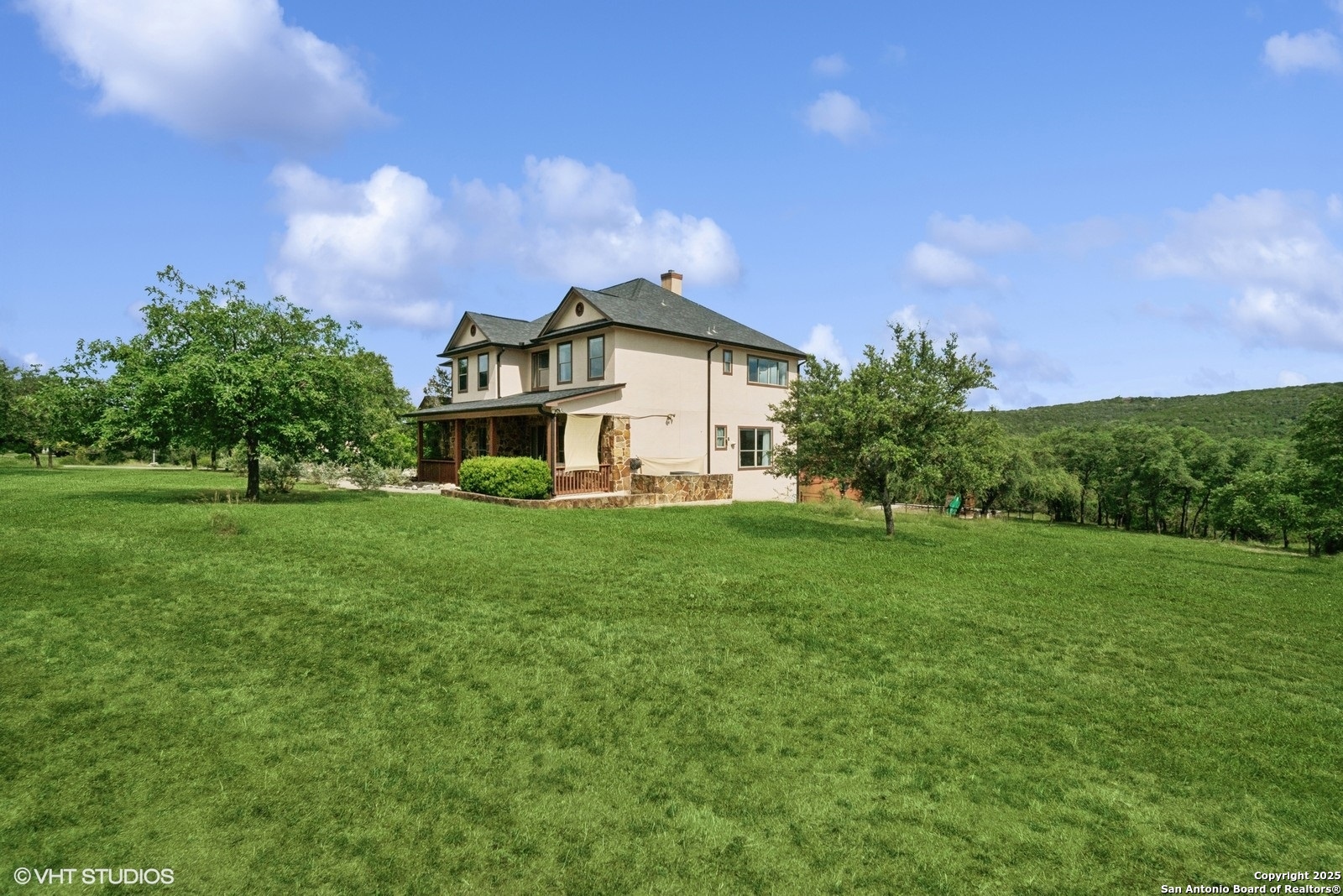Expansive Hill Country retreat with acreage and plenty of wildlife. Home with Four-bedroom, 3.5-bath, 3900 sq ft. Downstairs you will find the gourmet kitchen, large double walk-in pantry, breakfast nook and separate dining room, enclosed office, and living room with propane fireplace. Upstairs the primary suite features large picture windows that overlook the nearby hills. The large master bathroom has a separate shower and tub, and a large walk-in closet with extensive shelving. A private balcony off the primary suite is the perfect place to watch the sunset. Also upstairs are 3 full bedrooms, 2 full Jack-and-Jill bathrooms, laundry room with newer front-loading washer and dryer, and a media room. Outside you will find a very large deck overlooking the yard with newer kids jungle gym. NISD SCHOOLS. Home can be rented monthly furnished or unfurnished. Max lease 12 mos