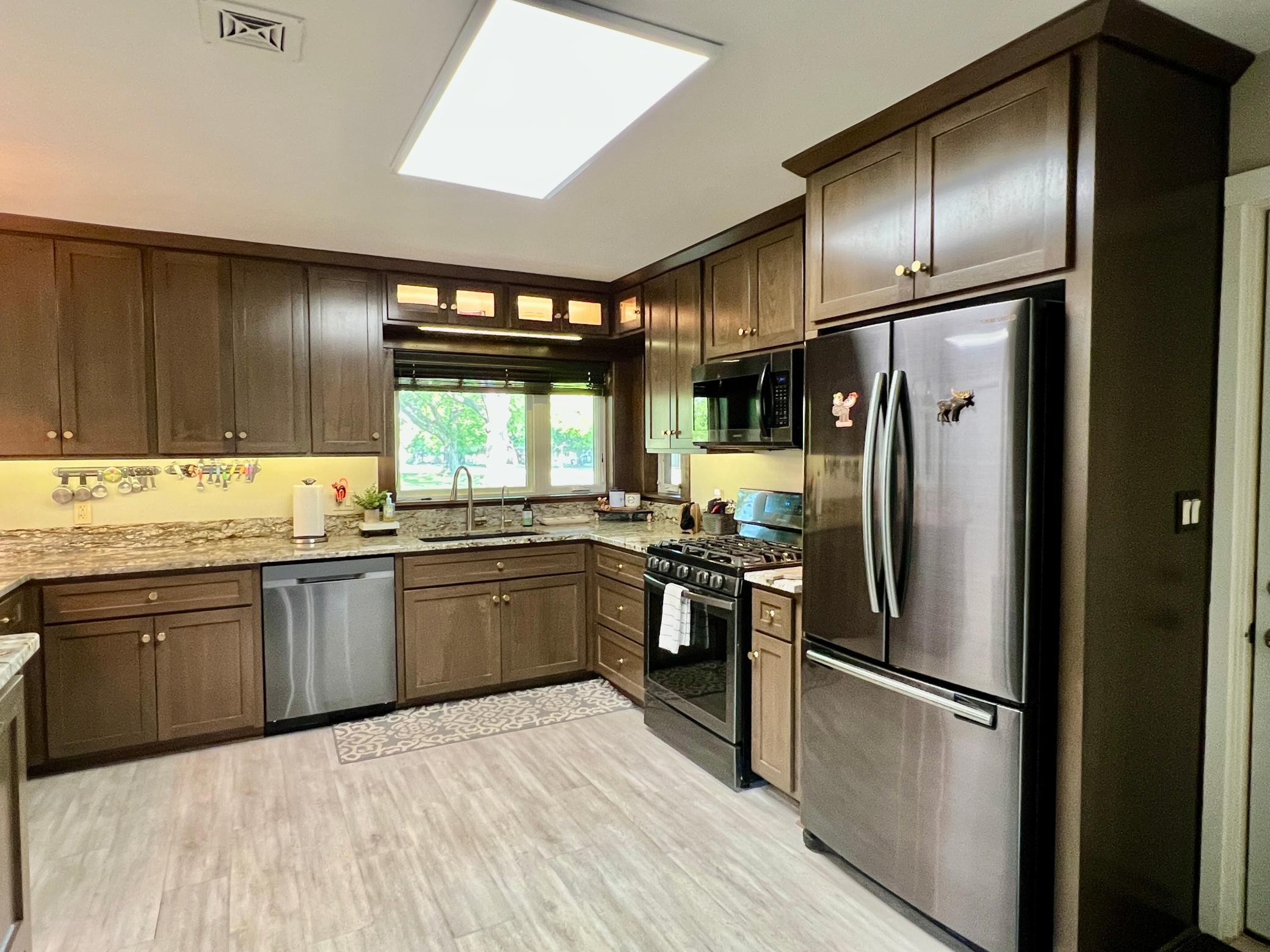 This one-of-a-kind brick rambler, situated on a corner lot, masterfully combines timeless charm with contemporary luxury. Meticulously remodeled, the main floor boasts two spacious bedrooms, a full bath, and a convenient stackable washer/dryer. Every detail reflects quality craftsmanshipfrom custom black walnut cabinetry to new Andersen windows, updated electrical and plumbing systems, and a state-of-the-art boiler heating system. Additional features include newer central air, appliances, and roofing. Whether savoring a beverage on the inviting porch or unwinding by one of two fireplaces, this home offers unparalleled comfort. With its unique blend of classic elegance and modern amenities, this exceptional property is a rare find. Schedule your showing today before it's gone!