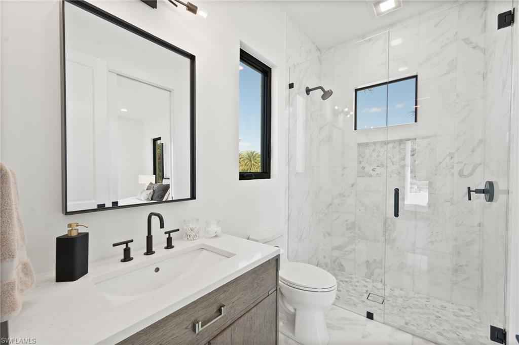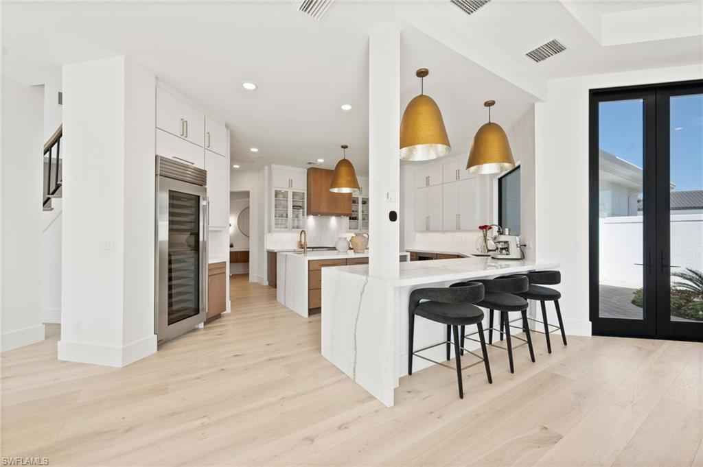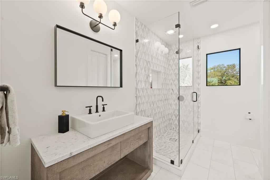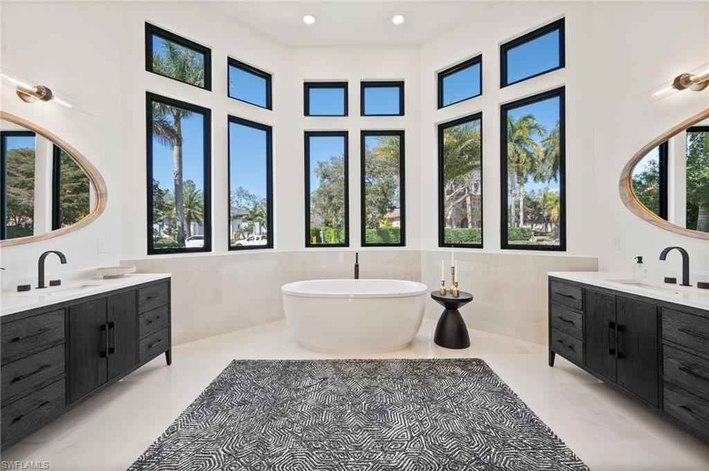 Welcome home to your fully reimagined Quail West Estate that blends modern design with timeless livability. Set on a near acre lot with southern exposure, enjoy expansive water & golf course views on #15 Preserve.xD;xA;On par with new construction quality, the list of features will please the most discerning of luxury buyers. All-new Marvin hurricane-rated windows and heightened doors, new paint, new driveway, garage doors & gutters, new LED lighting (inside too), lush landscaping, refinished railings, and a sealed lanai to top the list of exterior enhancements. The resurfaced pool and spa, new tile and pool equipment create a resort-style outdoor retreat, complemented by a new outdoor kitchen and bar ideal for entertaining.xD;xA;Inside, the home showcases a sophisticated renovation anchored by white oak flooring throughout, redesigned railings, squared-off openings, and a striking new fireplace wall. The fully renovated kitchen features custom cabinetry, Wolf and Sub-Zero appliances, marble countertops, and designer lighting. Every bathroom has been completely remodeled with new vanities, tile, plumbing fixtures, and lighting, while all interior doors, hardware, and baseboards are brand new adding to the cohesive modern aesthetic.xD;xA;Additional enhancements include motorized and manual blinds, programmable Wi-Fi thermostats, two new hot water heaters, and a whole-house generator with a 500-gallon propane tank for peace of mind. The primary suite A/C and air handler have also been replaced. If that's not enough, all interior and exterior furnishings have been professionally selected and are included in the list price!xD;xA;With 4 bedrooms + den, formal living and dining rooms, and a 3-car garage with additional storage, this home offers both scale and comfort. Quail West membership options are available, completing an exceptional opportunity in one of Naplesx2019; premier luxury golf communities.