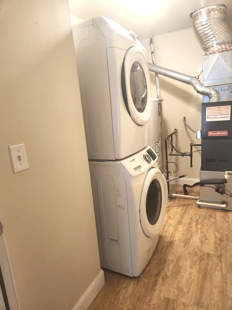 1st floor unit (no stairs!): Spotless 2 bedroom/2 bath in a convenient Naperville location. Primary bedroom has adjacent, private full bath and walk-in closet. 2nd bedroom has full wall of closets. Large open living area with dining area. In unit washer and dryer! 2 car garage parking included. Enjoy a cozy fire in the wood burning fireplace on a cold winter night. Sliding glass door to concrete patio to enjoy Spring and Summer with your beautiful potted flowering plants! ALL high grade laminate flooring. Updated kitchen with stainless steel appliances. Granite countertops, pantry and eat-in counter. Tenant responsible for gas, electric and water bills. Minimum 12 month lease. 680 credit score required. Income 3x monthly rent. Any applicants over 18 years of age responsible for TransUnion background/credit check.