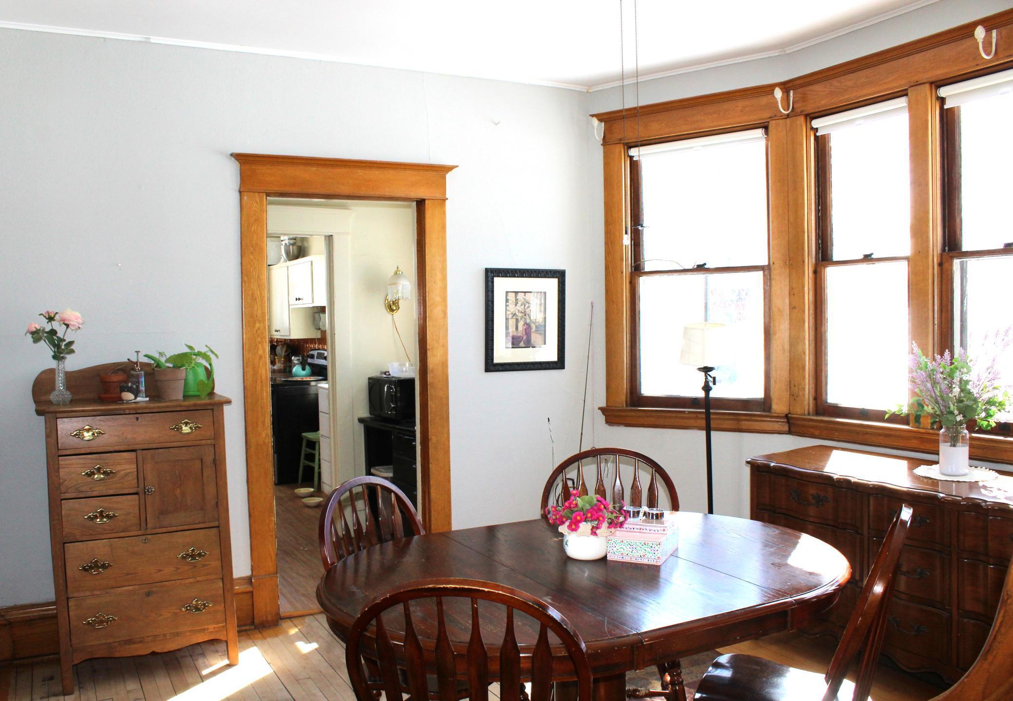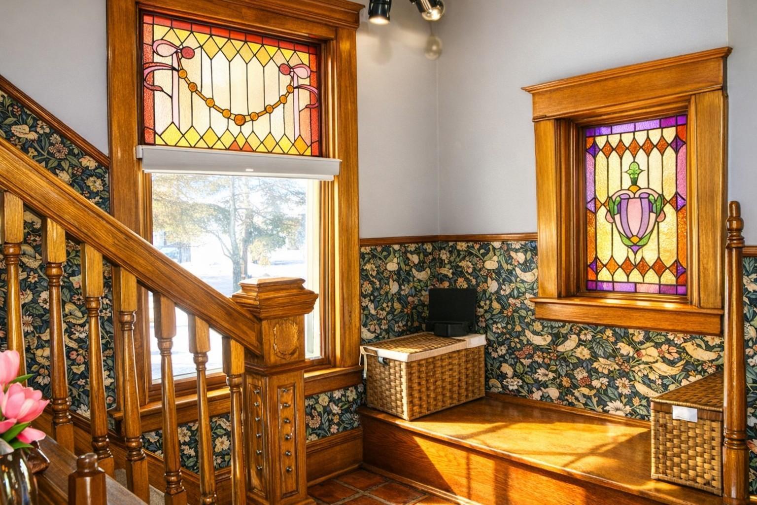 Step into timeless character and warmth in this charming early 1900s, two story home offering 4 bedrooms and 3 bathrooms, with new roof in 2024. From the moment you arrive, the welcoming covered front porch, complete with a classic porch swing, sets the tone for the charm found throughout. Inside, youll be greeted by beautiful hardwood flooring, stunning stained-glass windows, and a striking wooden staircase that showcases the homes historic craftsmanship. The spacious living room features an ornate vintage hearth and built-in shelving, creating an inviting space for relaxing or entertaining. A formal dining room flows seamlessly into the kitchen, which offers a butlers pantry and newer appliances. This home offers the rare convenience of both front and back staircases, adding to its functional layout. Upstairs, youll find four bedrooms and full bathroom. The primary bedroom includes an additional adjoining room currently used as an office, but easily adaptable as a nursery or walk-in closet. From there, access the upper attic area.an exciting, unfinished bonus space with potential for a playroom, creative studio, or a truly unique conversion. Outside, enjoy a detached garage and a partially fenced-in yard, ideal for outdoor enjoyment. With its blend of historic charm, thoughtful updates, and flexible living spaces, this home offers a unique opportunity to own a piece of classic architecture with modern livability.