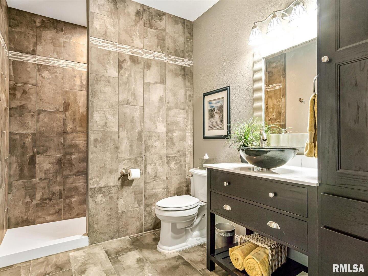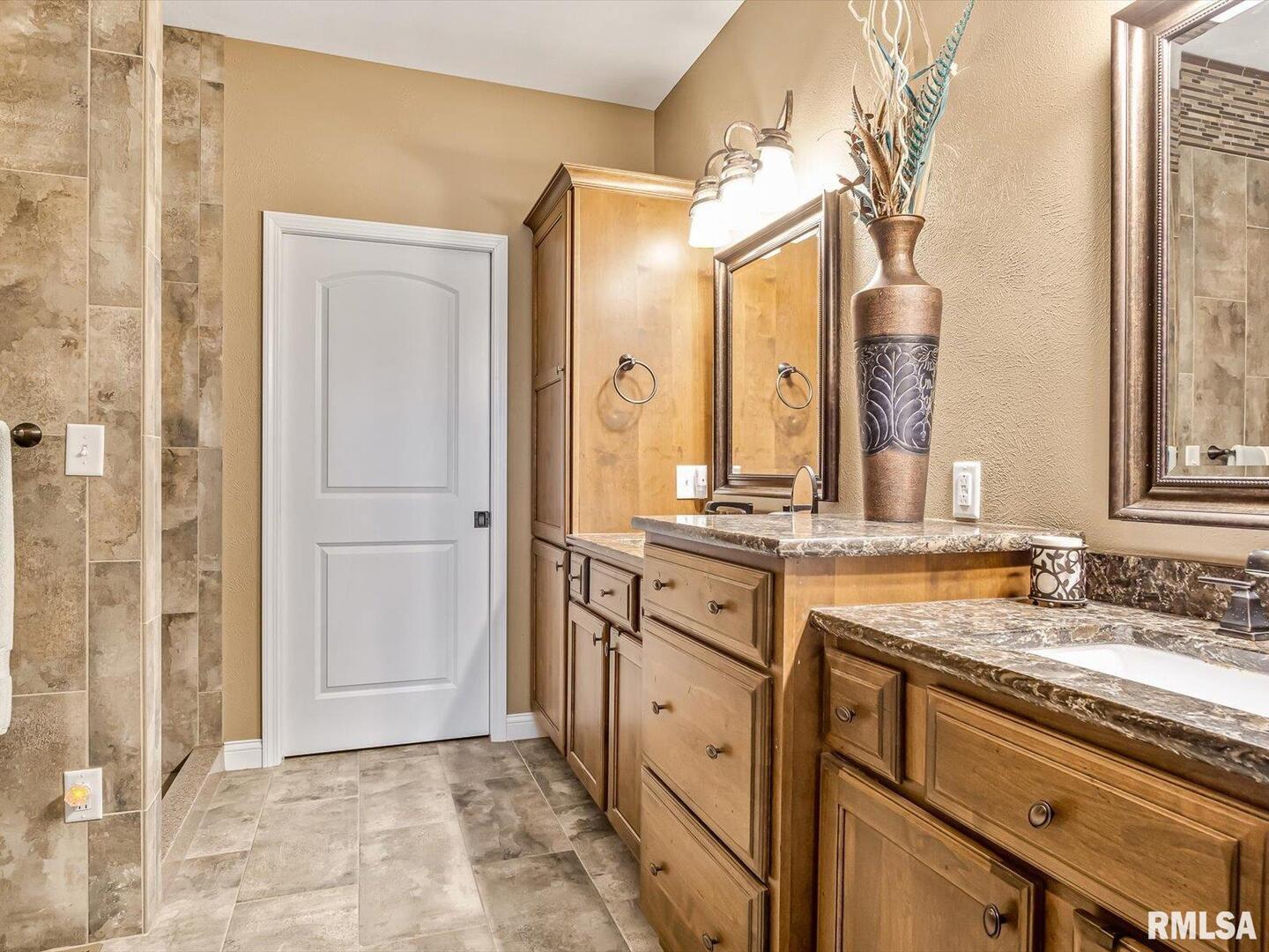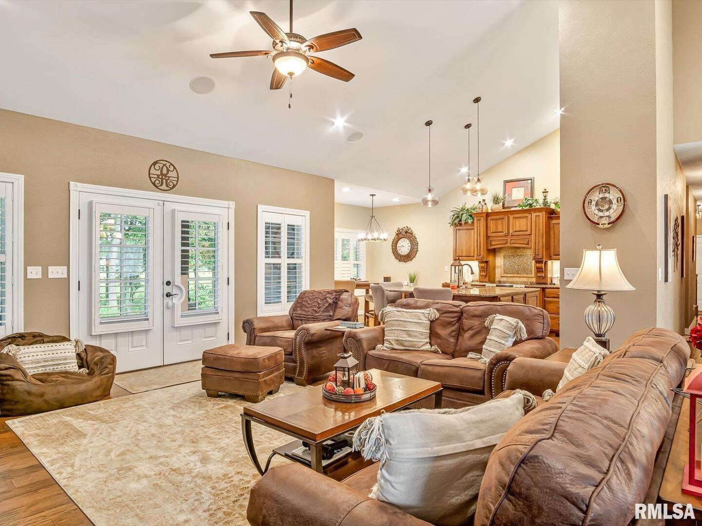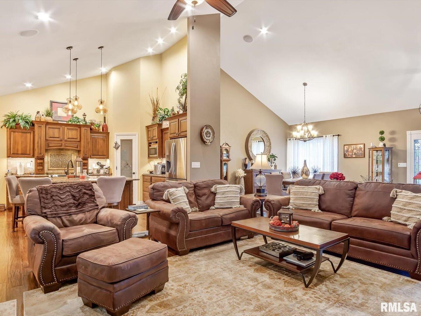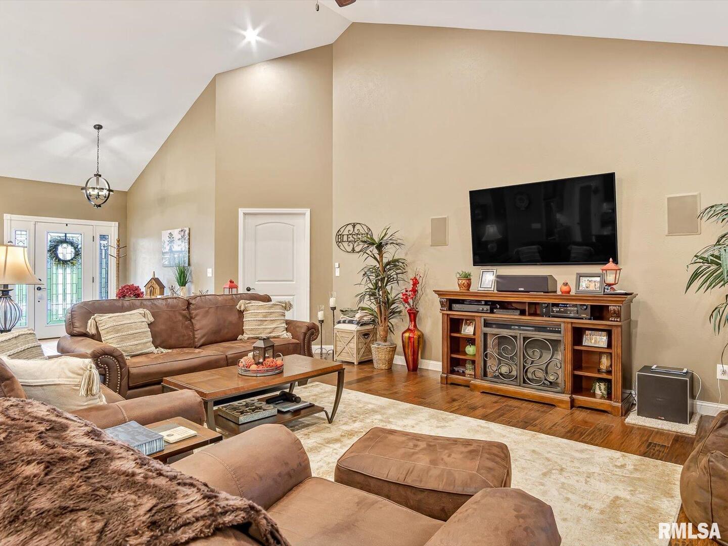 Remarkable living right in Pinckneyville. No corner has been cut in this beautiful home. Living/Kitchen/Dining room open with vaulted ceilings and surround sound with recessed lighting throughout make it a great space for your family. The master suite features a large walk-in closet with dual sinks, shower and tub. Two more bedrooms with a full bath and laundry room finish out the main floor that boast beautiful engineered hardwood flooring. Downstairs is your oasis with large family room/bar/game area, two bedrooms, salon and full bath. Large storage room which contains 2 water heaters and the Geo-thermal system with low utilities. The large 3 car garage has 1040 square feet with power overhead doors. The backyard oasis boast a covered porch with surround sound and great views of wildlife. Call today for your private showing.