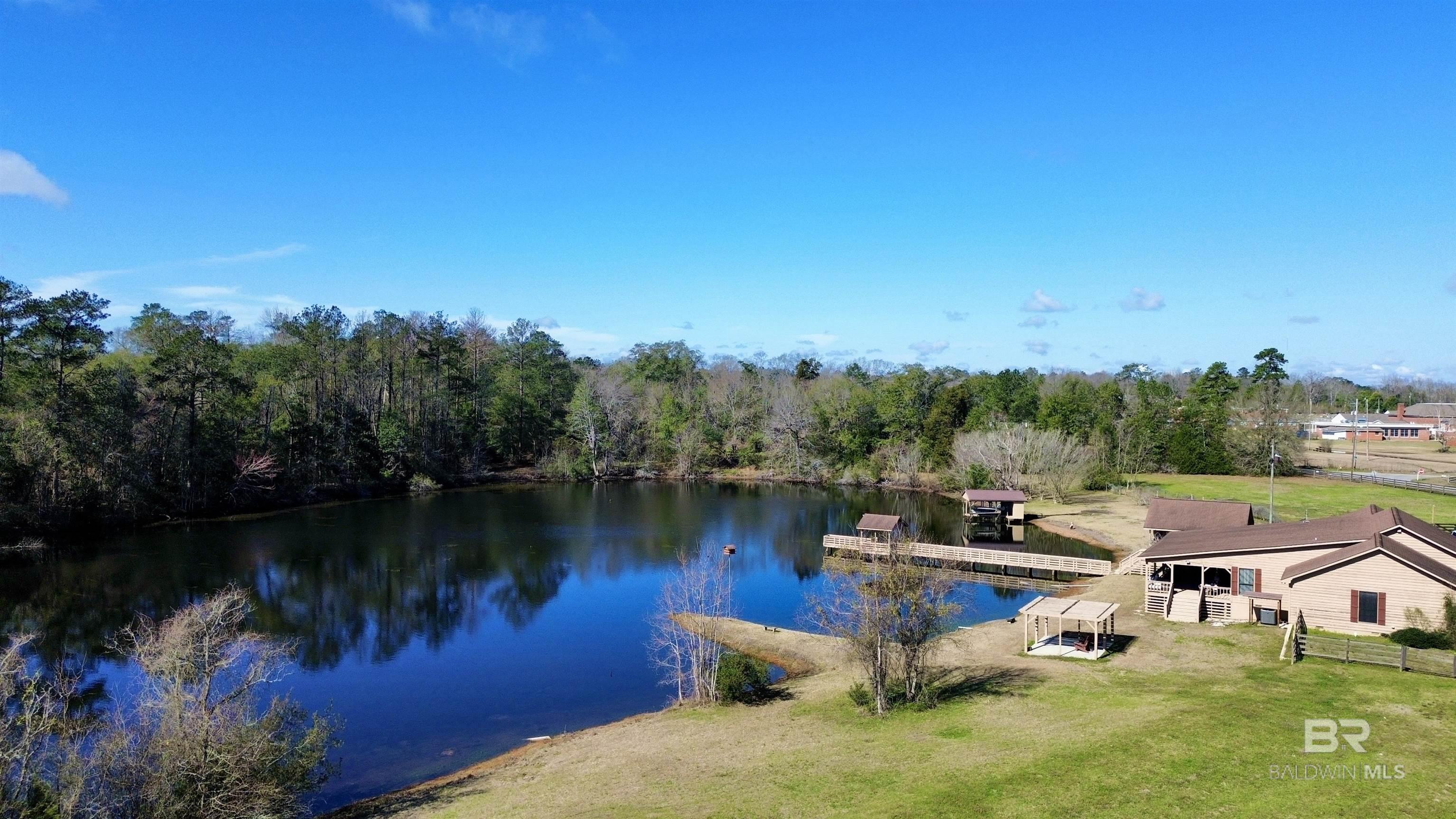 New Listing!! Located in Castleberry, Alabama, this True Southern property gives you a rare opportunity to own over 8+/- beautiful acres with a 3.5+/- acre stocked pond right outside your door. This property offers space, privacy, and room to enjoy the outdoors. The land is partially fenced and includes a boat house, pier, gazebo, and storage shed. Whether you enjoy fishing, spending time by the water, or simply relaxing outside, this property provides many options. The 4-bedroom, 3-bath home features an open concept floor plan with spacious living areas. Inside, you will find a library, sunroom, large utility room, and large closets. The home has a central vacuum system, built-in ice maker, gun safe closet, and jacuzzi walk in shower. It also includes several upgrades such as flooring, insulation under the home, Ac unit, and hot water heater! The seller is providing a home warranty for peace of mind. Outdoor features include an outdoor kitchen and a fish cleaning station with built-in drainage, making it well suited for those who enjoy outdoor recreation. The current owners have enjoyed this property for over 30 years and have taken pride in maintaining it. Now it is ready for its next chapter. If you are looking for space, water access, and a well-equipped home in a quiet setting, this property is worth a look. Call us today for a showing! Buyer to verify all information during due diligence.