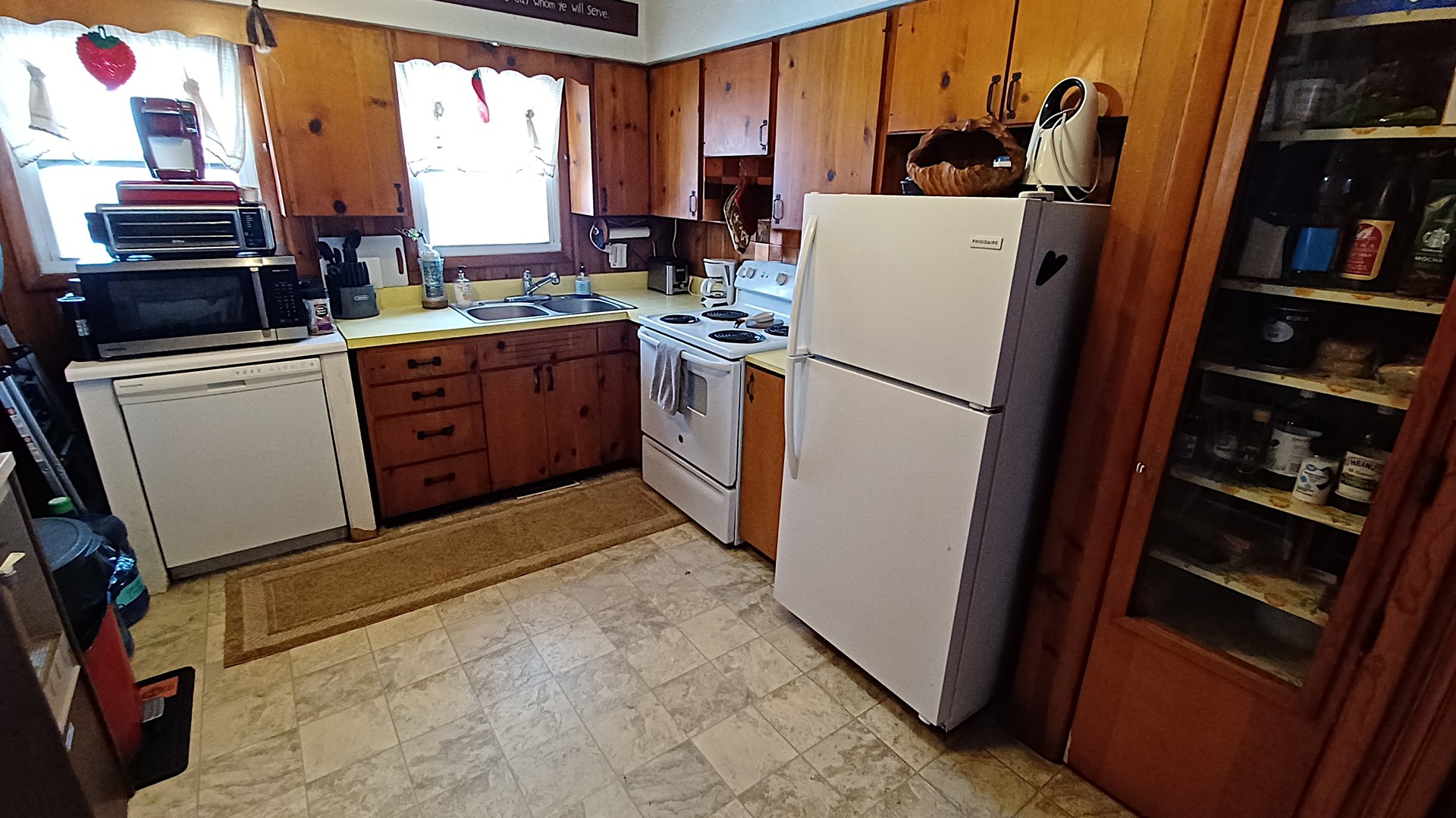 This cute 2-bedroom, 1 bath home with 1 car attached heated garage has a covered rear patio and privacy fenced back yard. This home feature a small front porch, a living room with electric fireplace, an eat-in kitchen with knotty pine cabinetry and a pantry closet, 2 bedrooms both with nice closets, a full bath with tub/shower combination, a single bowl sink with vanity and stool and a laundry room. Plenty of closet space in this cute home. Gas forced air furnace and c-air. The furnace is in the crawl space. The crawl space entrance is in the small bedroom closet. Per owner: the roof and the furnace are approximately 4 to 5 years old and the septic system was checked and pumped approximately 4 to 5 years ago and did not need any updates.