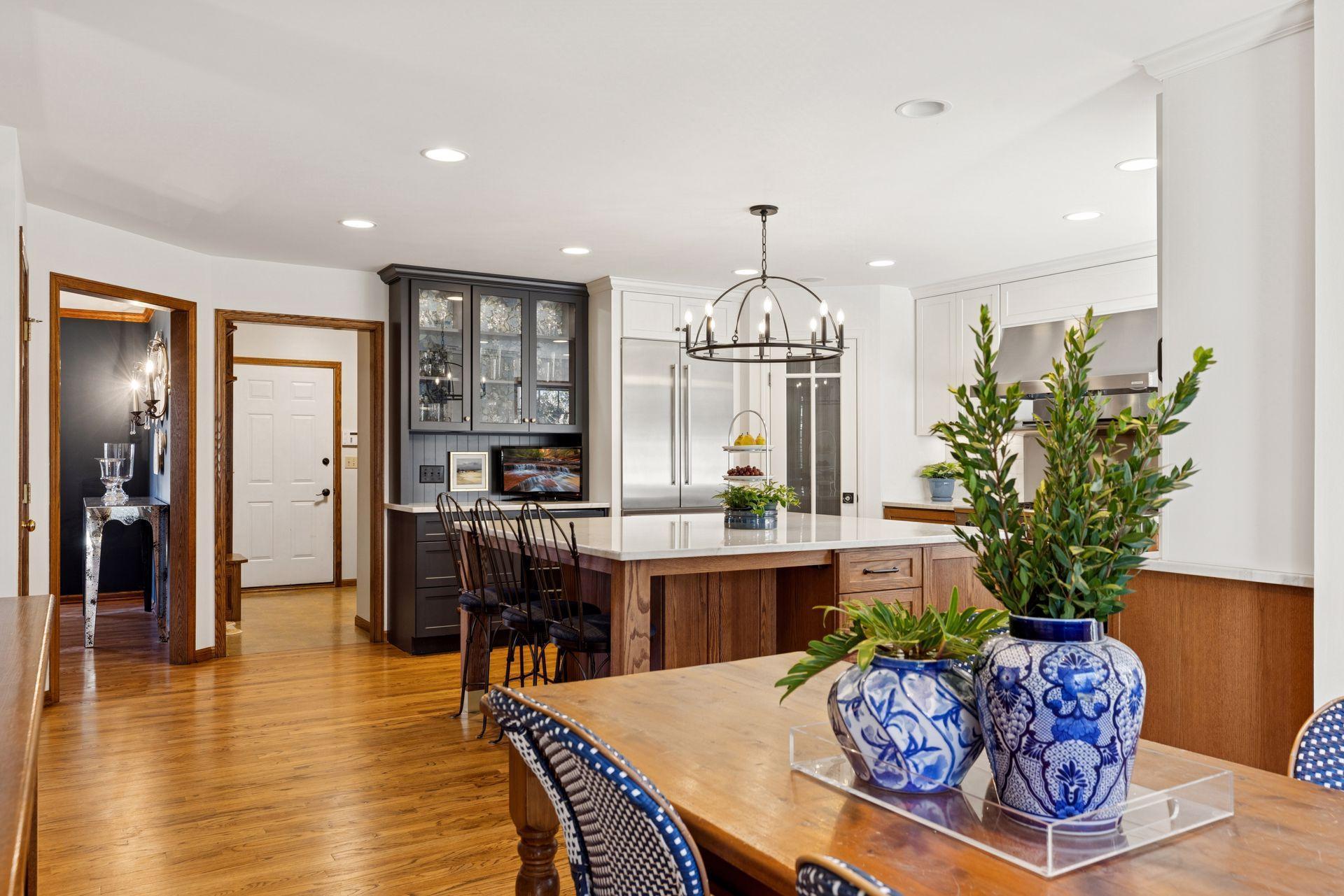 Welcome to this exceptional two-story home in Harbor Placeone of Shoreviews most convenient and sought-after neighborhoods. Thoughtfully designed for comfort, versatility, and timeless elegance, this beautifully maintained residence welcomes you with dramatic 17-ft ceilings, rich wood floors, and sun-filled living spaces that instantly feel inviting. The main level blends everyday ease with impressive entertaining spaces, featuring a spacious Great Room with fireplace, built-ins, and elegant wood shutters, a formal Dining Room, and an updated eat-in Kitchen that serves as the heart of the home. Throughout the home, custom drapery and window treatments add a refined, designer touch. The luxurious main-floor Primary Suite offers a spa-inspired Bath with in-floor heat, while a dedicated Office/Study provides an ideal work-from-home setup. A covered Deck with a vaulted ceiling and fan creates effortless indoor-outdoor living, and the paver Patio surrounded by mature landscaping offers a private outdoor retreat. Upstairs, youll find three generous Bedrooms and an inviting, light-filled Loft that works beautifully as a second home office or study area, along with a thoughtfully designed Bath featuring dual vanities and a separate tub/toilet space. The finished lower level offers exceptional flexibility with a 2nd Kitchen, 5th Bedroom, Family Room, and Flex/Play Roomperfect for hosting, multi-generational living, or extended-stay guestsplus two large unfinished areas that provide abundant storage and the potential for additional living space. With direct access from the current Family Room, these spaces offer an easy opportunity to expand or reconfigure the layout to suit your lifestyle. Energy-efficient solar panels, an invisible fence, and an EV charging station deliver meaningful ongoing savings and long-term valuefeatures rarely available in this neighborhood. With recent updates, thoughtful improvements, and close proximity to Snail Lake beach and park, this warm and sophisticated home offers a level of quality that truly stands out in Harbor Place.