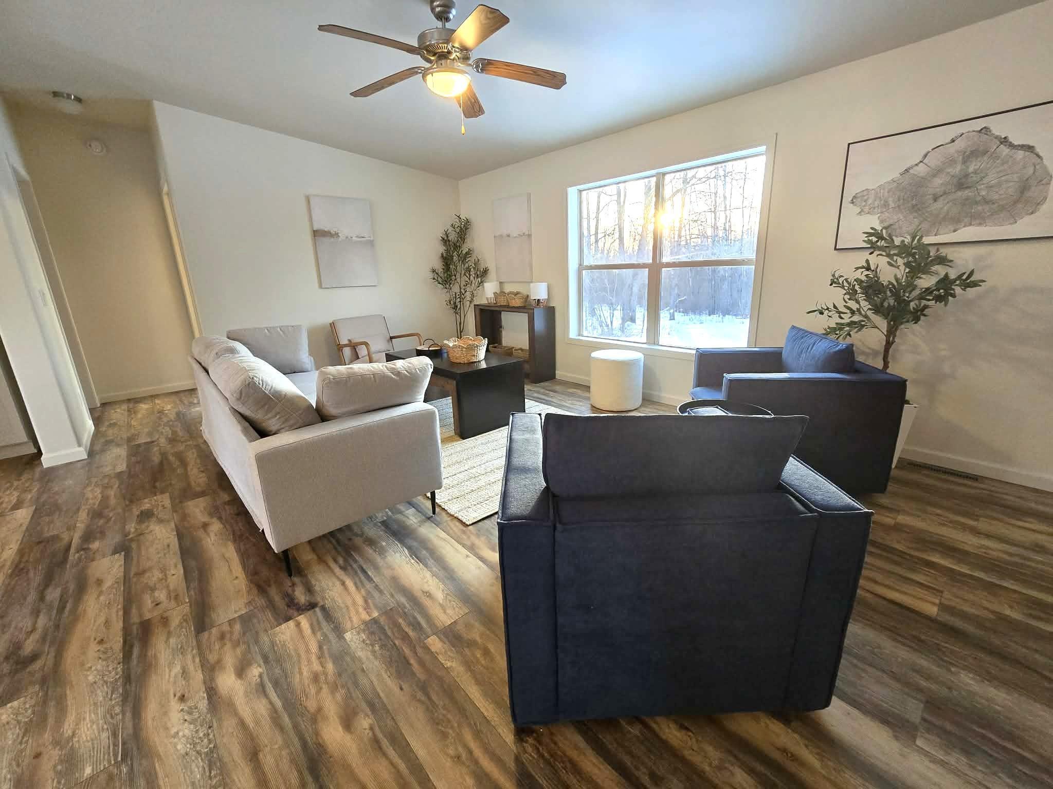 Enjoy privacy, space, and modern updates on this beautiful 9-acre property in Solway, located just 20 miles from Bemidji and abutting public land for endless outdoor recreation. Built in 2010, this 3-bedroom, 1-bath home features an open floor plan and is set well back from the road, offering a peaceful, private setting surrounded by nature.The interior has been completely refreshed with extensive updates including new flooring and carpeting throughout, complete new kitchen and appliances, updated plumbing, a new water heater, and a new water softener. A newly added deck expands the living space outdoorsperfect for relaxing, entertaining, or enjoying the sights and sounds of the Northwoods. The land offers a scenic mix of mature trees, high ground, and lowland, creating excellent wildlife habitat and opportunities for hunting, exploring, and outdoor enjoyment. With ample space for horses, a hobby farm, or recreational use, this property provides the flexibility to match a variety of lifestyles.Whether youre seeking a full-time residence, weekend getaway, or private Northwoods retreat, this property delivers modern comfort paired with acreage, privacy, and unmatched access to the outdoors. Furnishings are negotiable and maybe available for purchase.