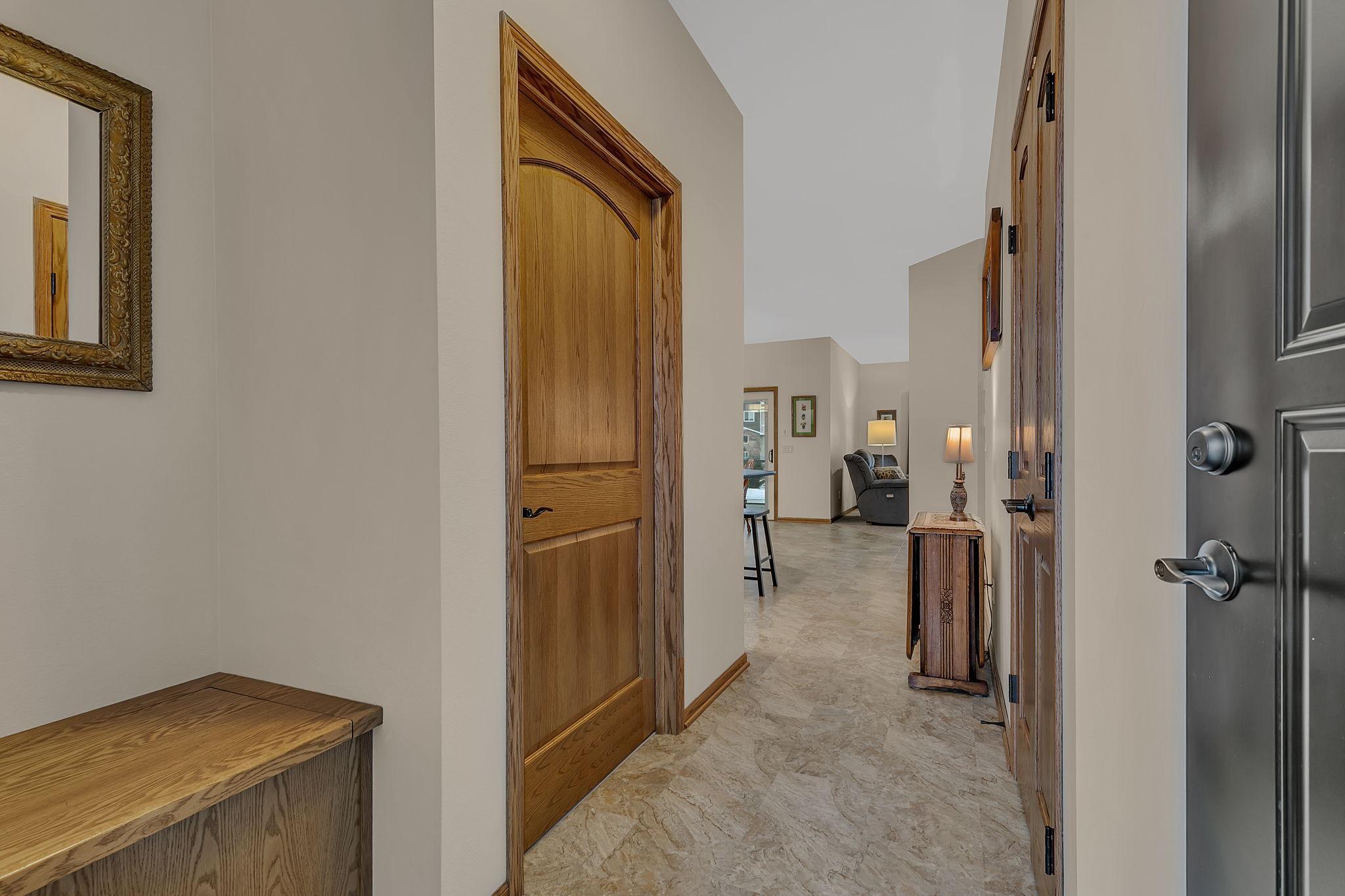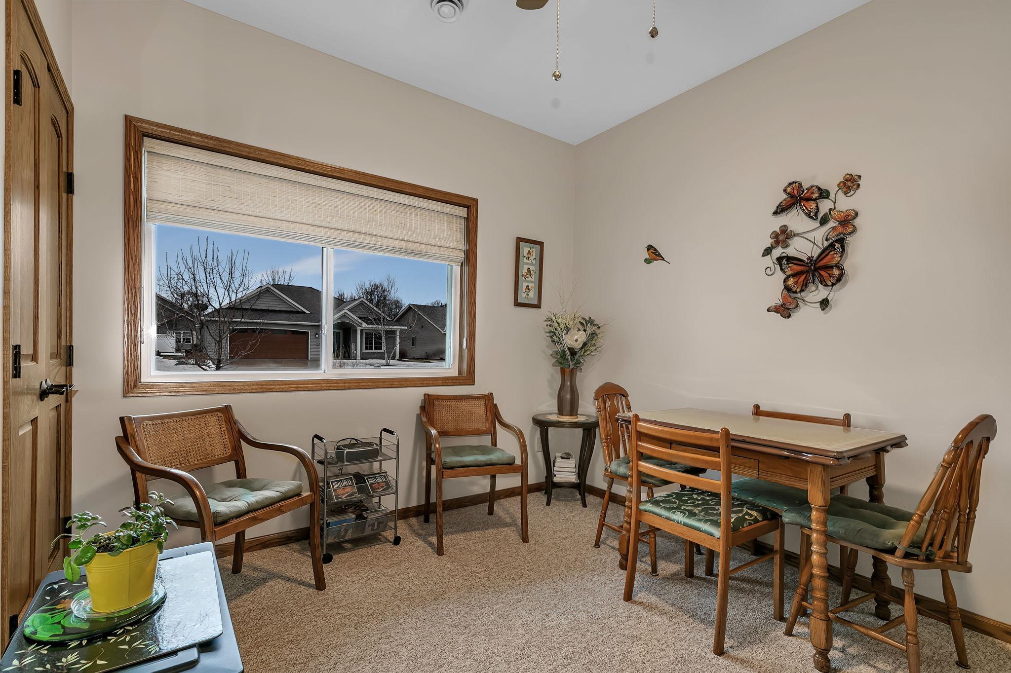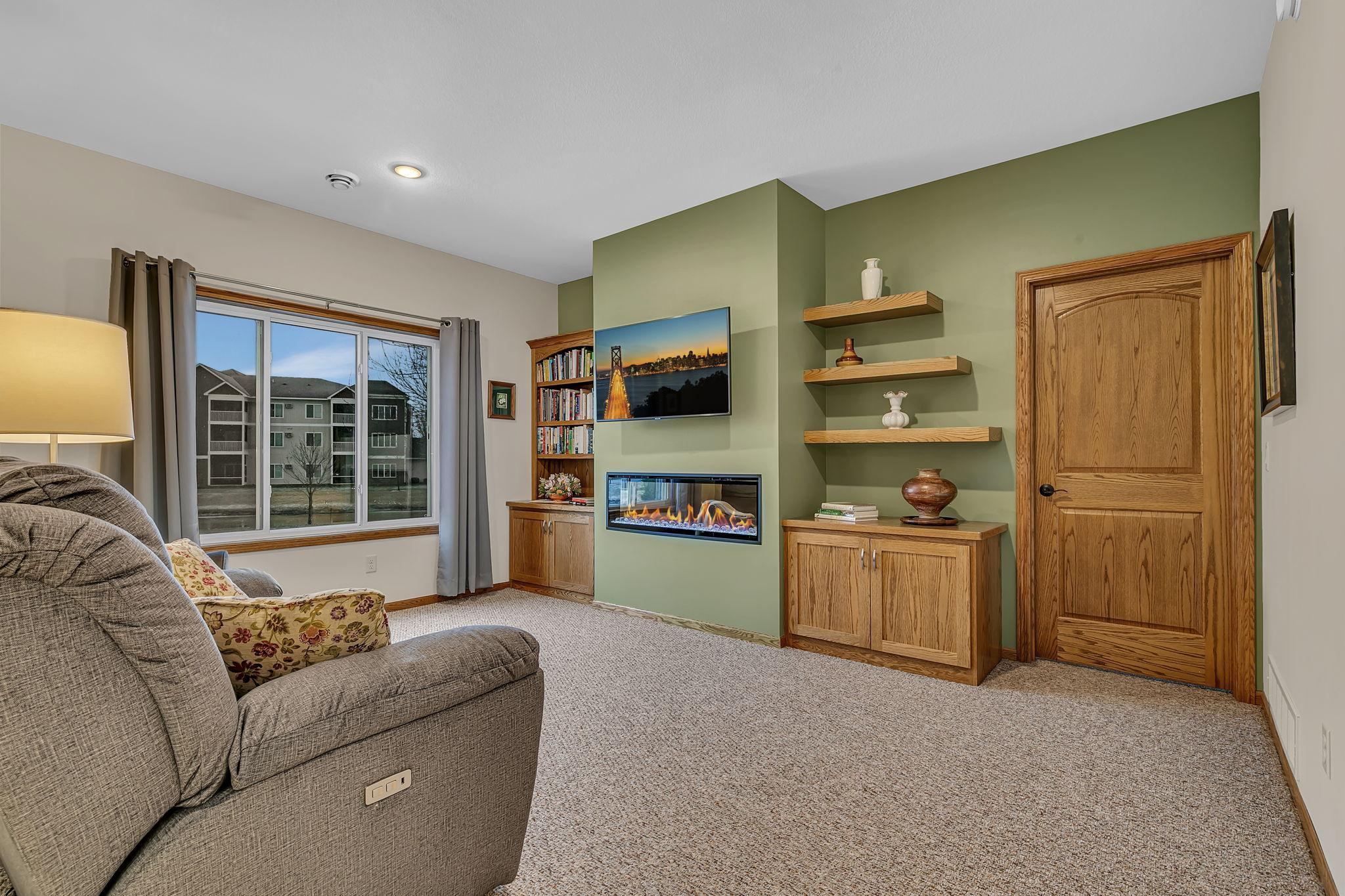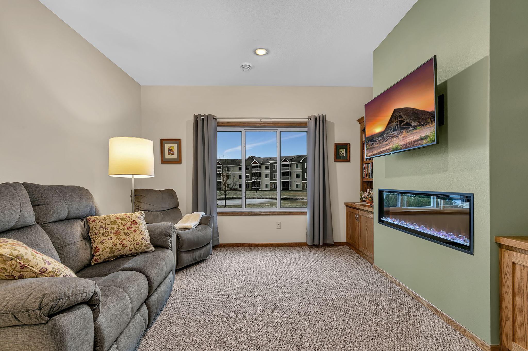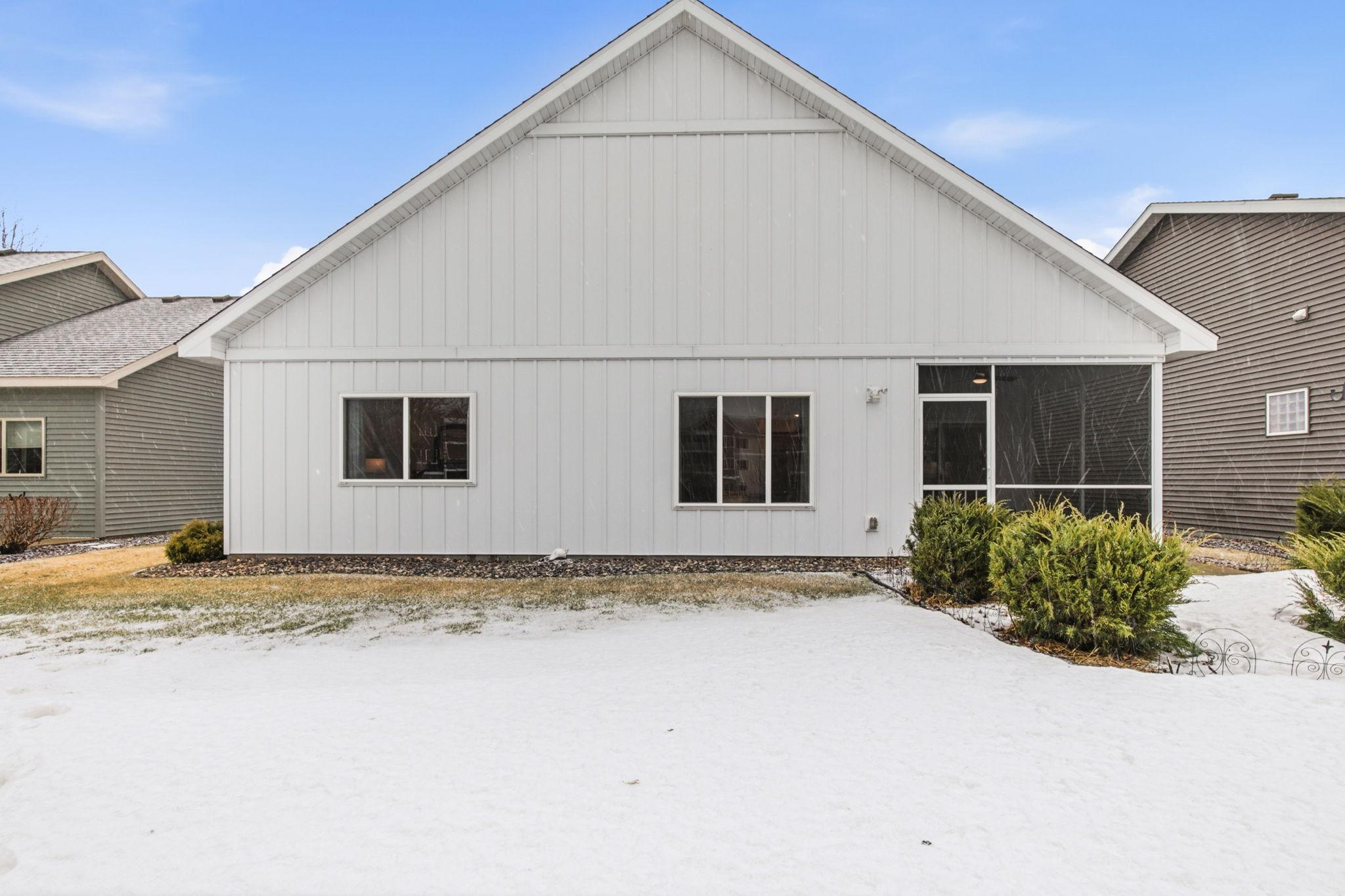 Welcome to easy living in the desirable Windsor Greene Patio Home neighborhood! This like-new 2019-built patio home offers 3 bedrooms and 2 bathrooms, including a private primary suite with its own bath. The open-concept layout features a spacious kitchen with center island, stainless steel appliances, and plenty of cabinetry, flowing seamlessly into the living room highlighted by an electric fireplace. Enjoy year-round comfort with in-floor heat, forced air heat, and central A/C. Step out to the gorgeous screened sunroom overlooking peaceful pond viewsan ideal place to relax and unwind. Additional highlights include a 2-stall attached garage, tankless water heater, in-ground sprinkler system, brand new washer and dryer, and association-maintained lawn care and snow removal for true low-maintenance living. A beautiful home that truly shows like new!