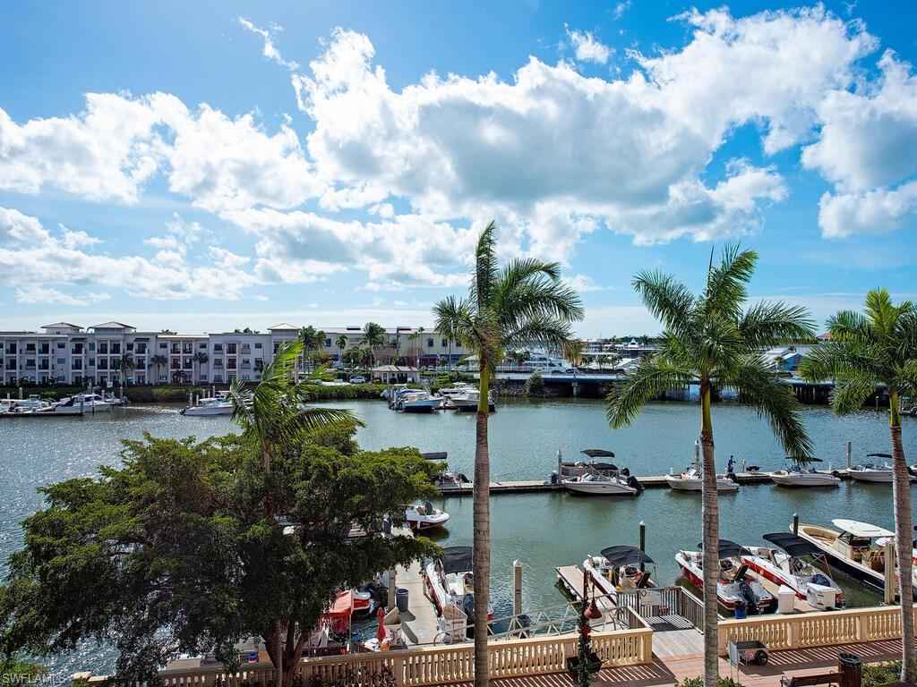 Enjoy true waterfront living on Naples Bay without the worry of flooding in this exceptional third-floor end-unit condo with a private second-floor garage. Located on the hospital and police electrical grid, this residence maintains power, TV, and internet during hurricanes, offering rare peace of mind.xD;xA;This condo is truly bayfront, situated directly on Naples Bay and the Gordon River, and features breathtaking 270-degree panoramic views with sunrise and sunset vistas from three private balconies facing south, east, and north. Ten-foot sliding glass doors and high ceilings fill the home with natural light, while views extend from all three sides of this desirable end unit. Secure, private, remote-controlled gated garage parking on the second floor ensures your vehicle is protected and that you always have a guaranteed parking space, with no access for outsiders. Downstairs, a marina and boat docks are available to rent, making it easy to dock your boat, jet ski, or paddleboard, or take the water taxi throughout Naples Bay to waterfront restaurants and bars. The location allows you to walk to downtown Naples, the beach, and the iconic Naples Pier in just minutes.xD;xA;The community offers a full resort-style lifestyle with two heated rooftop pools and hot tubs, tennis and pickleball courts, a state-of-the-art fitness center, and a clubhouse with BBQ grills and picnic areas. Restaurants, a cabana bar, nightlife, beauty salons, shopping, and a peaceful courtyard fountain are all located just steps away.xD;xA;This rare end-unit condo delivers unmatched views, security, and location, making it one of the most desirable waterfront properties in Naples now and in the future. Best of all, it is move-in ready with no waiting for new construction.