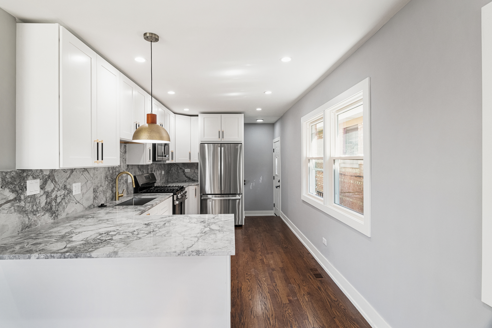 Welcome to this beautifully updated brick ranch, ideally located in the heart of Harwood Heights. This impressive 3-bedroom, 2-bathroom home with additional playroom/office in basement combines modern design with new upgrades, offering spacious, comfortable living for today's lifestyle. Step inside to a bright and welcoming main level, featuring refinished hardwood floors, a dedicated dining area, and a centrally positioned kitchen w/island. The kitchen boasts stylish shaker cabinetry, stainless steel appliances, and luxurious quartz countertops. All three bedrooms on the main floor are generously sized, offering ample closet space and abundant natural light. The fully finished lower level is designed for relaxation and gatherings, showcasing a large family room with a custom dry bar and a tastefully renovated full bathroom. Extensive upgrades throughout the home include a garage new roof, all-new windows, updated HVAC system, new water heater. Electrical has been modernized with a new panel and wiring, and the plumbing has been upgraded to all copper lines-ensuring both energy efficiency and long-term reliability. All new drain tile system with new sump pump has been added for your piece of mind. Enjoy outdoor living in the private, fenced backyard featuring a newly put paver patio and sidewalks. 2-car garage with a new roof adds both function and convenience. Smart-home features include LED-lit bathroom mirrors and a smart garage door opener. Located in a prime location next to Ridgemoor Country Club and Union Ridge School. It's commuter-friendly location with quick access to highways, and just minutes from shopping, dining, top-rated schools, parks, and entertainment. This home blends quality, convenience, and style-an ideal place to create lasting memories. Don't miss the opportunity to make this exceptional property your new home!