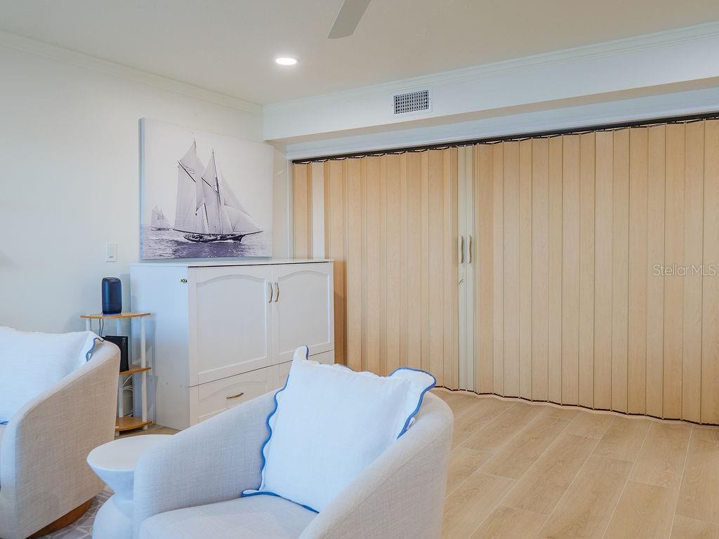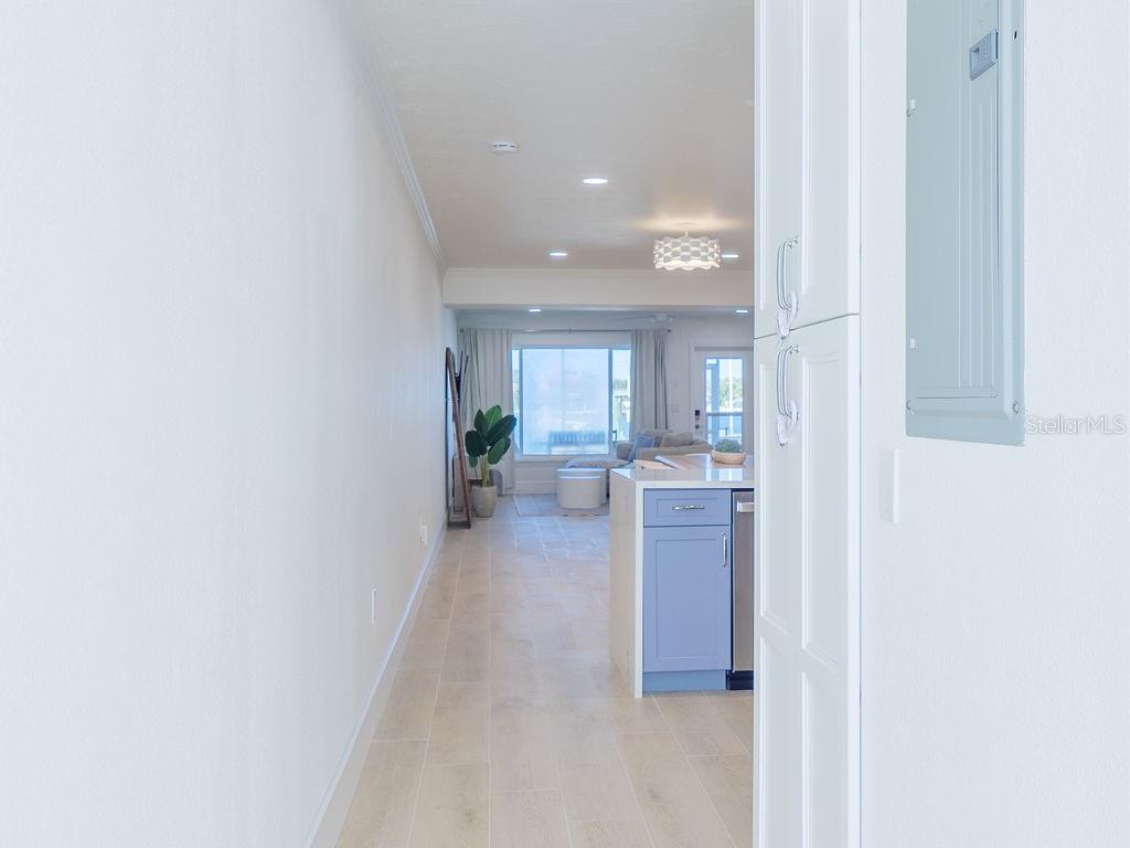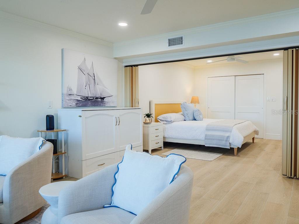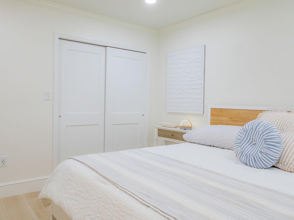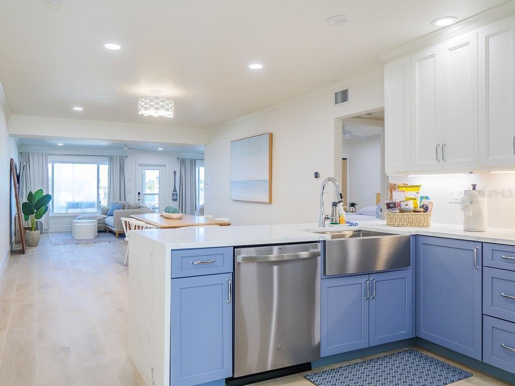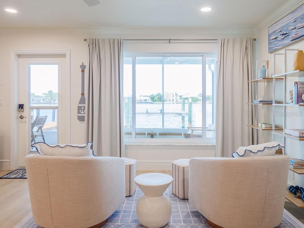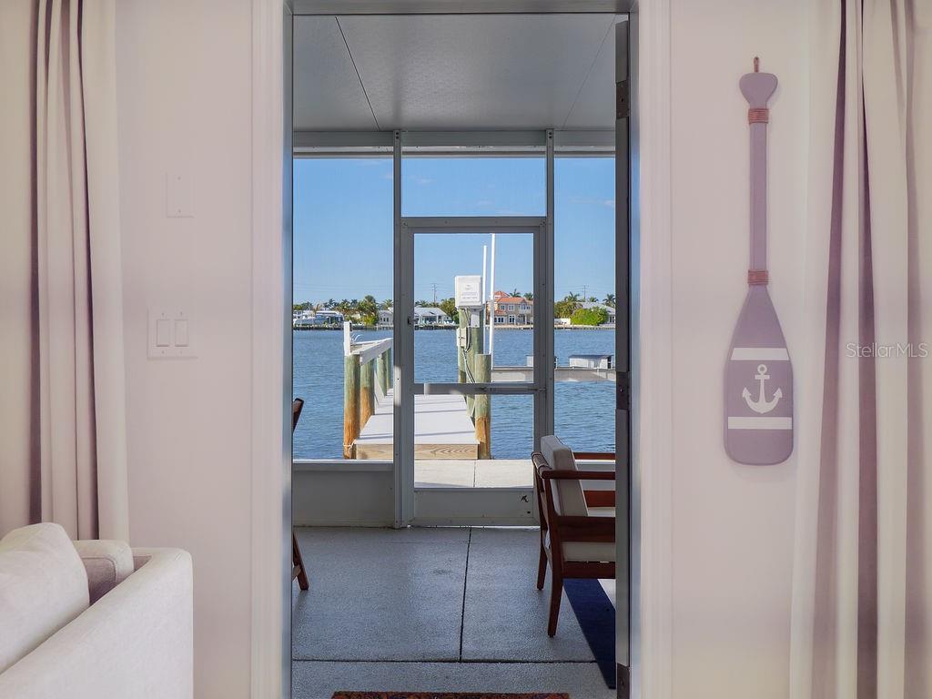Welcome to Villa Mar! A luxury vacation rental directly on Watsons Bayou with open water views. This completely renovated 2BD/2BA corner villa is the largest floor plan in Seaside Gardens and features updated kitchen with waterfall counter, brand new appliances, luxury baths, oversized wood plank tile throughout, impact windows and doors, great storage, newer AC, new roof, and 7 inch PVC baseboards for peace of mind. This lot has an extra wide 2 car carport with built in storage cabinets and shed. A large screened patio is perfect for outdoor entertaining after a long day on the boat. A 27 foot boat dock with electric/water, fish cleaning station and 10,000 lb boat lift complete the package. Great location with tennis, shuffleboard, pickle ball and the dog park just steps away. Active weekly rental business! No HOA and no condo fees. Seaside Gardens is a historic civic association maintaining the communal spaces and a low monthly fee of only $150 includes sewer and water. This is the perfect island getaway!