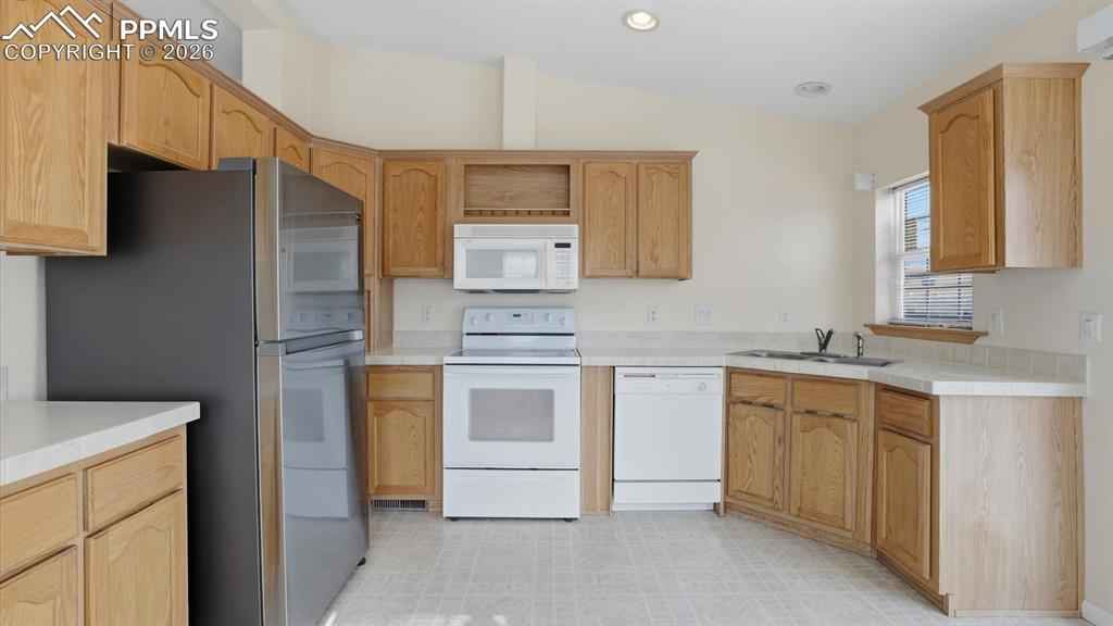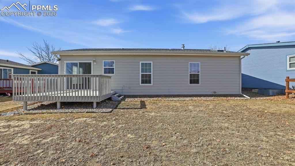 Come explore impressive, low-maintenance living in this beautifully maintained 3-bedroom, 2-bath manufactured home in the popular planned community of Chateau at Antelope Ridge. With outstanding curb appeal, the xeriscaped lot and storm-door entry set the tone for easy, low-maintenance living from the moment you arrive. Inside, youx2019;ll find 1,080 square feet of thoughtfully designed living space, enhanced by central air and heat for year-round comfort. Abundant windows flood the home with natural light, while window blinds throughout provide privacy and style. The spacious living room features plush, neutral carpeting and an inviting layout, perfect for entertaining family and friends. The living area flows seamlessly into the eat-in kitchen, complete with durable vinyl flooring, ample wood cabinetry, and generous counter space for storage and meal prep. A full appliance package includes a smooth-top range oven, microwave, dishwasher, and refrigerator. Step outside to the backyard deck, an ideal spot for outdoor dining, morning coffee, or relaxing evenings. The primary bedroom is a comfortable retreat with plush carpeting, a mirrored wardrobe closet, and an attached shower bathroom featuring a dual-sink vanity and enclosed shower. Two additional bedrooms share a full hall bathroom with vanity, mirror, and tub/shower combination, perfect for family, guests, or a home office. Two car attached garage with door opener. Fenced backyard that backs to open space for outdoor fun and relaxation. Residents of this community enjoy exceptional amenities, including a clubhouse, fitness center, swimming pool, playground, and a variety of planned activities throughout the year. Ideally located near schools and the Powers Corridor, youx2019;ll appreciate easy access to shopping, dining, and entertainment, along with convenient proximity to Peterson Space Force Base.xD;xA;Move-in ready and full of charm, this delightful home is ready for you to call it home!