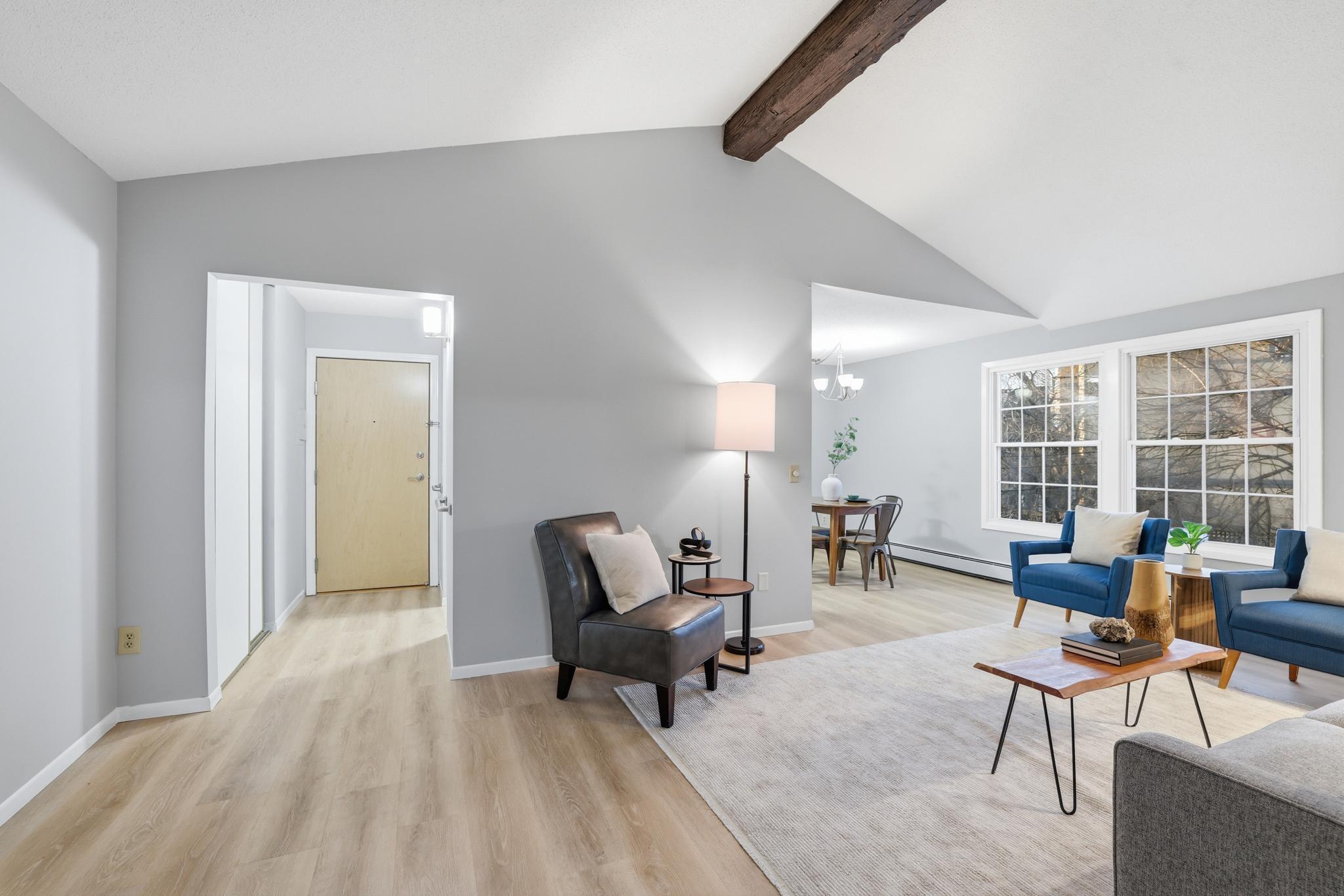 Vaulted Ceilings and Privacy. Upper level updated throughout. Garage and assigned parking. Enjoy the amenities that make life easier. HOA pays all utilities, except electric! very Convenient Location