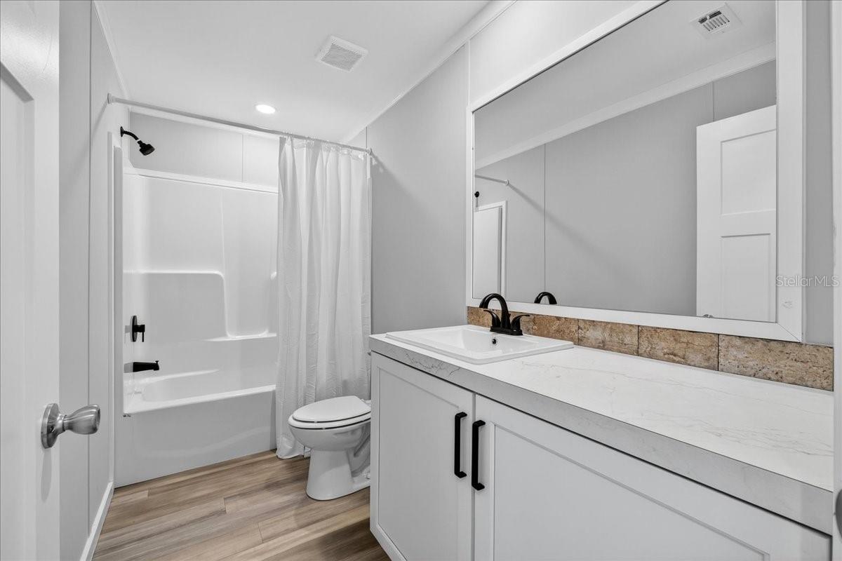Experience the perfect blend of modern living and natural beauty with this BRAND-NEW manufactured home, situated on your own lot, which is just under a 1/4 acre! Offering 3 bedrooms, 2 bathrooms, and over 1,400 square feet of thoughtfully designed living space. From the moment you arrive, you'll be charmed by the recessed dormer over the front door with vertical vinyl accent, and vinyl door and window trim. Step inside and immediately appreciate the high-quality finishes and attention to detail, from the 4-panel board and batten accent wall or the luxury linoleum flooring throughout, to the open-concept layout that effortlessly connects the living, dining, and kitchen areas-ideal for entertaining. The chef-inspired kitchen is a true highlight, featuring brand-new stainless steel appliances, a sleek chimney range hood, stainless steel sink with a gooseneck faucet, 42" shaker-style cabinets, and canopy-style pendant lighting hanging over the center with a breakfast bar. The primary bedroom offers a serene retreat, complete with a large walk-in closet and a luxurious en-suite bathroom featuring a free-standing soaking garden tub, separate 60" shower, and dual vanities with cubby holes and a bank of drawers-perfect for keeping all your essentials organized. Two additional bedrooms provide comfortable space for family or guests, while the second full bathroom includes a single vanity and a tub/shower combo, perfect for letting guests soak the day away! Additional upgrades include a dedicated laundry room for added convince, LED recessed lighting, Energy Star Certified w/ R- 13 Wall; R-22 Floor, R-38 Roof, cobra ridge venting system with algae-resistant shingles, and craftsman-style trim. Located in the Halfmoon Mini-Farms of Silver Springs, FL, you'll have easy access to a variety of local amenities, including shopping centers and restaurants. This home is at a prime location with no HOA and no lot rent! Don't miss out on this incredible opportunity to make this brand-new home yours! Schedule your viewing today and experience the best of Florida living!