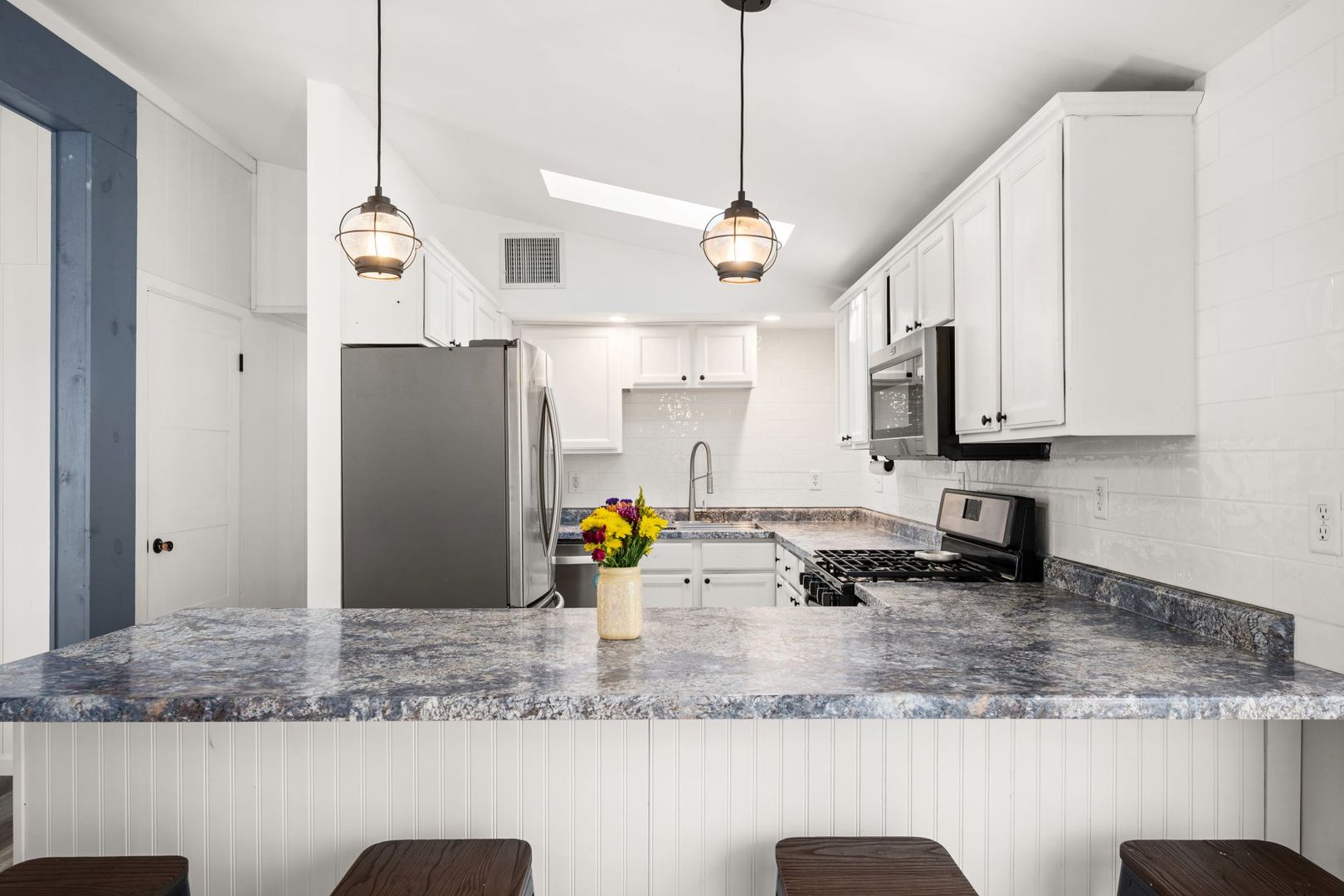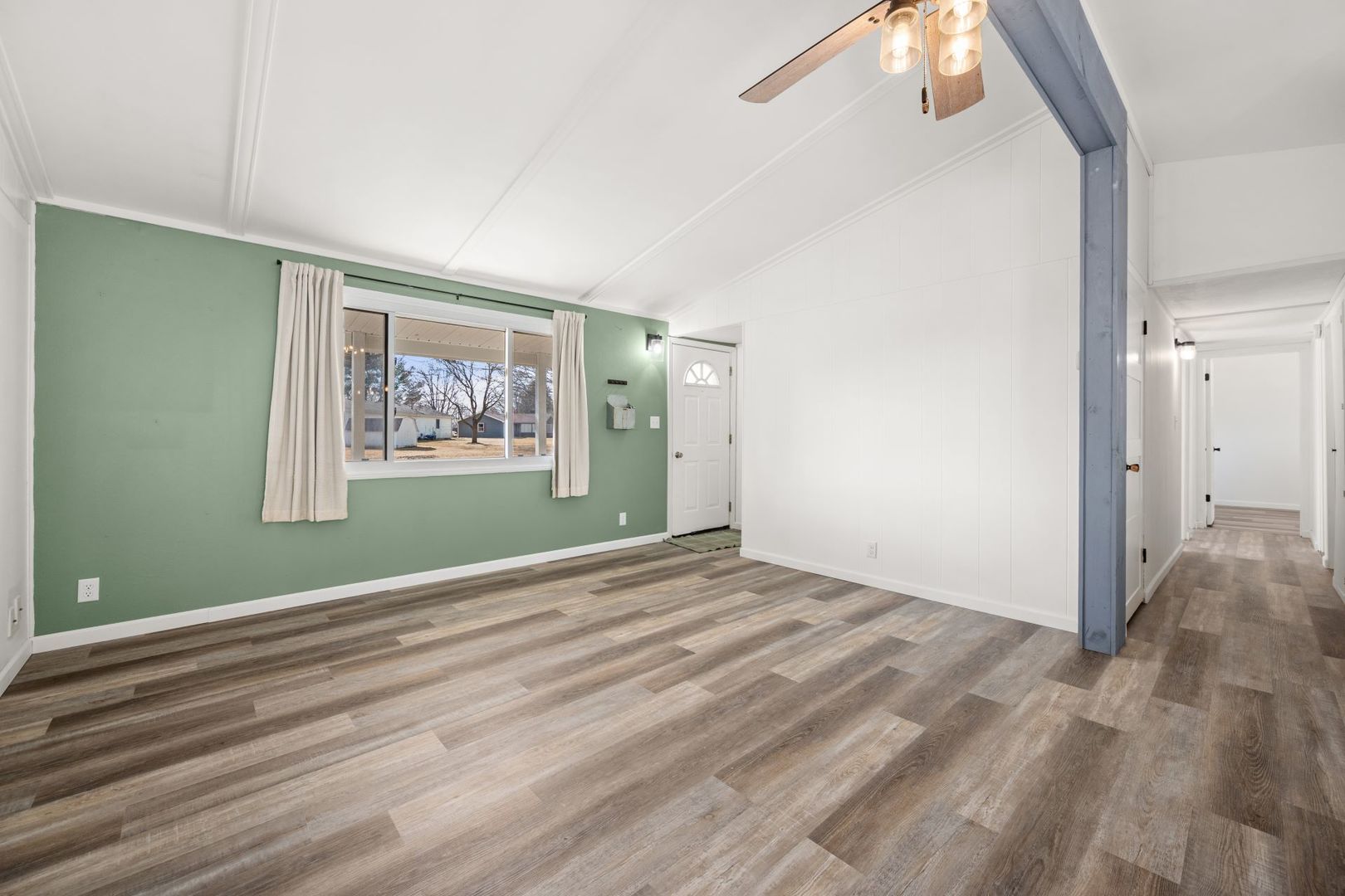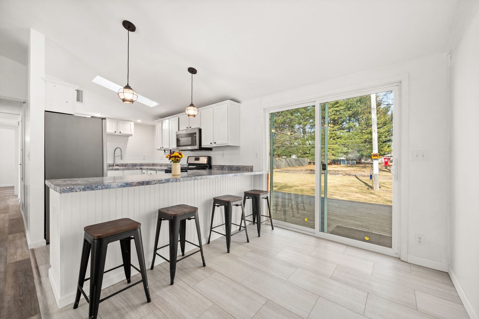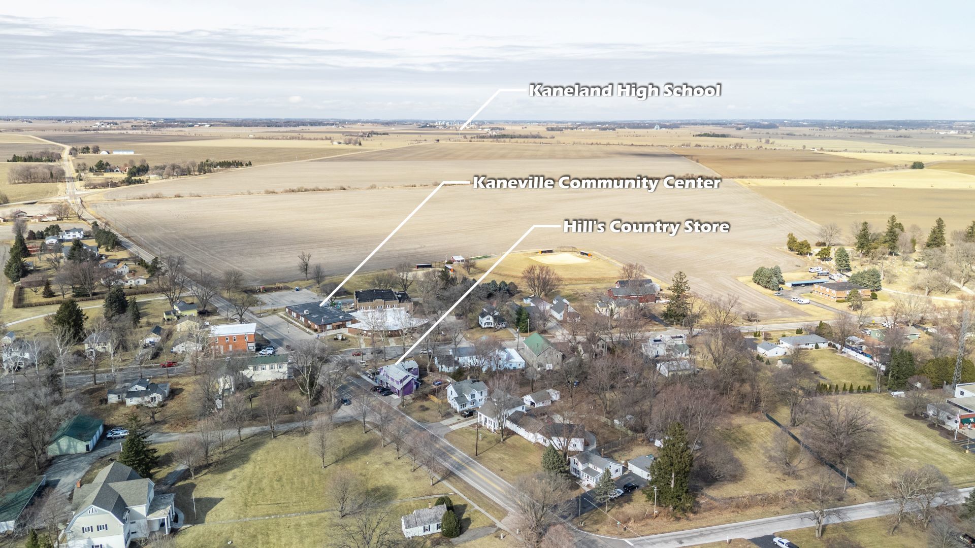 Looking for small-town living? Welcome to this updated three-bedroom, one-bath ranch located in Ralvins Subdivision in Kaneville, situated on .49 acres. Offering great curb appeal with an inviting covered front porch, this home warmly welcomes you in and sets the tone. This property provides space, comfort, and the charm of a close-knit community. The refreshed interior features NEW white trim and NEW white paint throughout, creating a bright, clean, and airy feel. The spacious living room showcases vaulted ceilings with a striking exposed beam and luxury vinyl plank flooring that seamlessly flows into the eat-in kitchen. The fully renovated kitchen in 2021 offers white cabinetry with crown molding, skylight, stainless steel appliances, updated countertops with additional seating for barstools, an undermount stainless steel sink, and NEW classic white subway tile backsplash - all complemented by durable luxury vinyl plank flooring. The eat-in area provides plenty of room for a table, with a sliding glass door leading to the deck overlooking your beautiful backyard, making indoor-outdoor entertaining effortless and enjoyable. All three bedrooms feature vaulted ceilings, closets, and NEW luxury vinyl plank flooring. The bathroom includes an updated vanity with a modern sink and coordinating medicine cabinet. The laundry room comes equipped with a washer and dryer, plus cabinets and additional shelving for ample storage. The unfinished basement offers endless potential - design additional living space, a hobby area, or utilize it for extra storage. A two-car garage includes stairs to the basement and a convenient service door. The quiet town offers a close sense of community, including Hill's Country Store, Kaneville Community Center, playground, and baseball fields. If you're seeking close proximity to all that Kaneville has to offer, look no further. Make this your next move!