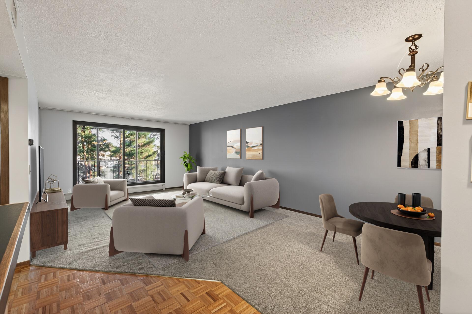Experience comfortable, low-maintenance living in this beautifully refreshed condo featuring updated baths, new dishwasher, newer appliances, fresh paint and carpeting. The generous primary suite includes dual closets, a dressing vanity, and a private bath. Relax on your private, screened balcony. Other building highlights include heated underground parking, heated outdoor pool, hot tub and sauna, a woodworking studio, library, and meeting room. Ideally situated near shopping, restaurants, parks, and scenic walking trailswith quick access to major highways.
