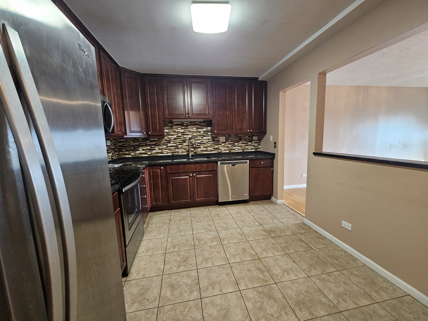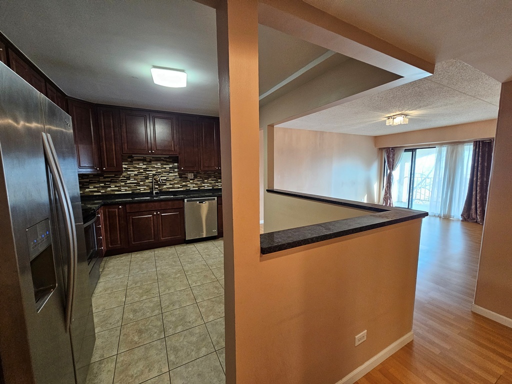 Spacious, bright unit in an elevator building featuring a large eat-in kitchen with 42" cherrywood cabinets and granite countertops, open to the living and dining area with hardwood floors. Enjoy a generous bathroom with shower, a private balcony overlooking the swimming pool and pond, and plenty of closet space. Extra storage is available in the building. The complex offers great amenities including a pool, exercise room, clubhouse, and tennis court, with ample parking spaces. Available now-must see!