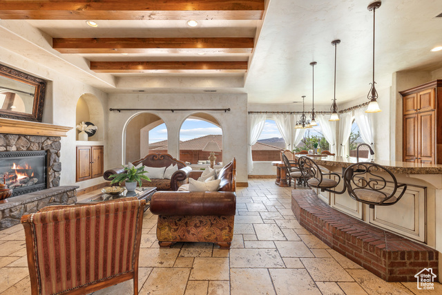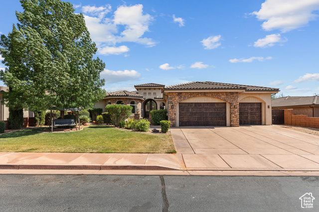 Your perfect Tuscany retreat in the heart of Ivins awaits! This home truly has it all - from the sparkling pool and private courtyard with gorgeous views, to the oversized 4-car garage that fits all your gear. The home features a remarkable multi-level layout perfect for entertaining and creating memories with family and friends. At the entrance, you are welcome by the serene sounds of the water feature in the large courtyard. Once you walk through the large arch glass wooden doors, you will experience a large open floor concept that includes the large upstairs living room, kitchen, and dining area with large mountain view windows. The home features 5,544 SqFt (2,772 on each floor), 6 bedrooms, 6 bathrooms, theater room, 2x flex rooms, Office/Den, large storage room, granite honed edge countertops throughout, and wood beam living room ceilings. Inside, the kitchen is a chef's delight with a large multi-tier island, a built-in fridge, and a hidden pantry big enough for all your needs, knotty alder cabinets, 6 burner chef freestanding stove, and built-in swivel island chairs. The spacious primary bedroom is a relaxing escape, complete with its own secluded flex room, a custom built-in closet, a spa-like bath with a triple-head shower, separate soaking tub, and large sauna room. The finished basement has a large 2ndliving room that is perfect for a game room. Movie nights? This home has you covered, thanks to your very own theater room. You'll also love the large mudroom, laundry space, kitchenette, and a den perfect for work or hobbies. The outdoor space is a wonderful entertainment space with Outside, fire up the built-in barbecue and fridge under the covered patio, and enjoy effortless entertaining. The home is near the Greater Saint George paved bike/walking trail system with over 50 miles that connects you across the city, including the iconic Snow Canyon State Park, Sullivan Soccer Park, and miles of beautiful Red Rock terrain. Minutes from amenities in downtown Saint George, such as over 16 golf courses including Black Desert Golf Course home to the Fall 2024 PGA TOUR's FedEx Cup, hiking and cycling trails, and a short drive to some of America's most awe-inspiring places; National parks Zion, Bryce and the north rim of the Grand Canyon, and state parks like Sand Hollow Reservoir, Gunlock Reservoir, Quail Creek Reservoir, and nearby Dixie National Forest. The City of Ivins is known for its low light pollution initiative to protect its night sky and for its breathtaking views of Red Mountain. There is no doubt that the word is out that at 2,700 feet above sea level, on the edge of the Mojave desert, Colorado Plateau, and the Great Basin, lies one of America's most beautiful and distinctively geological places, Saint George! No other place says that you have arrived than this beautiful home. All information herein is deemed reliable but is not guaranteed. The buyer is responsible to verify all listing information, including square feet/acreage, to the buyer's own satisfaction.