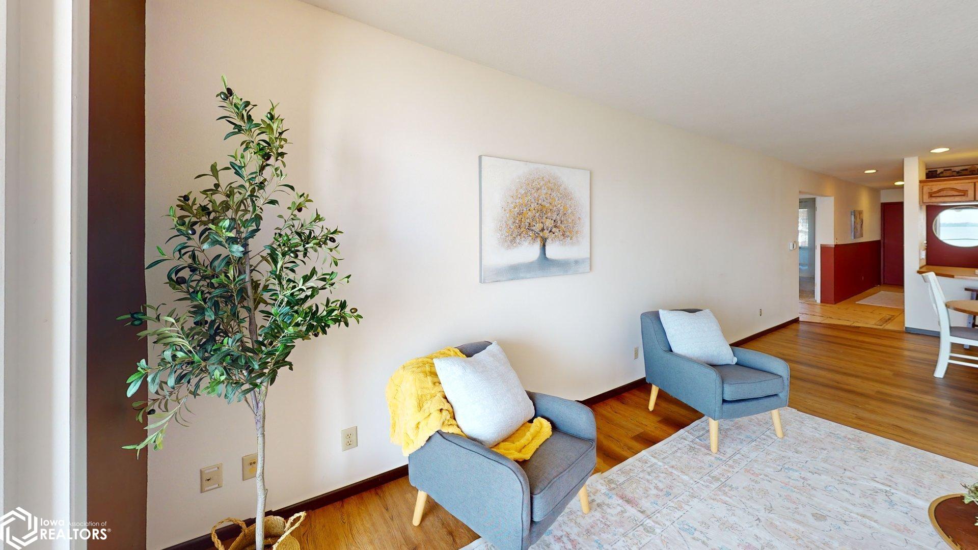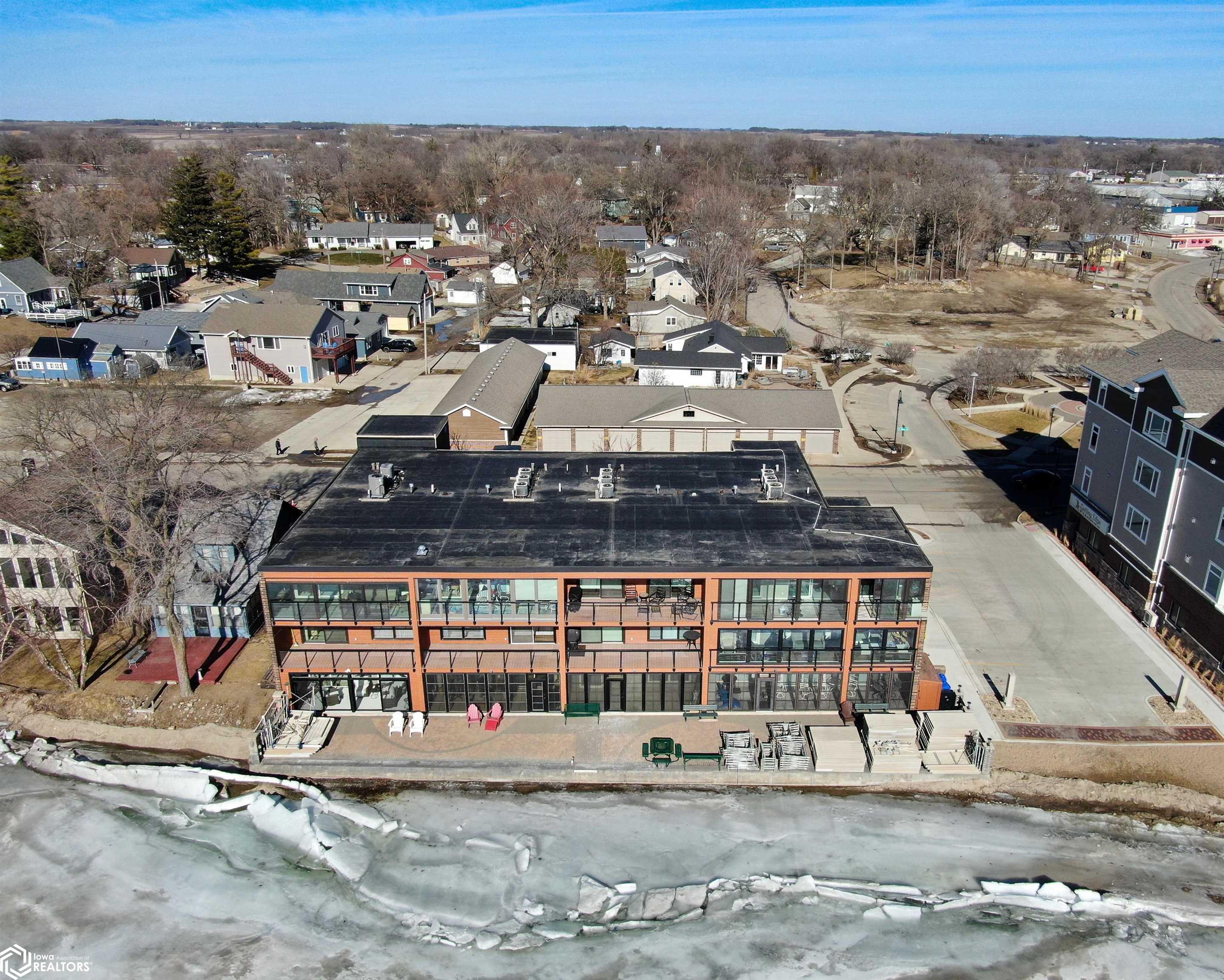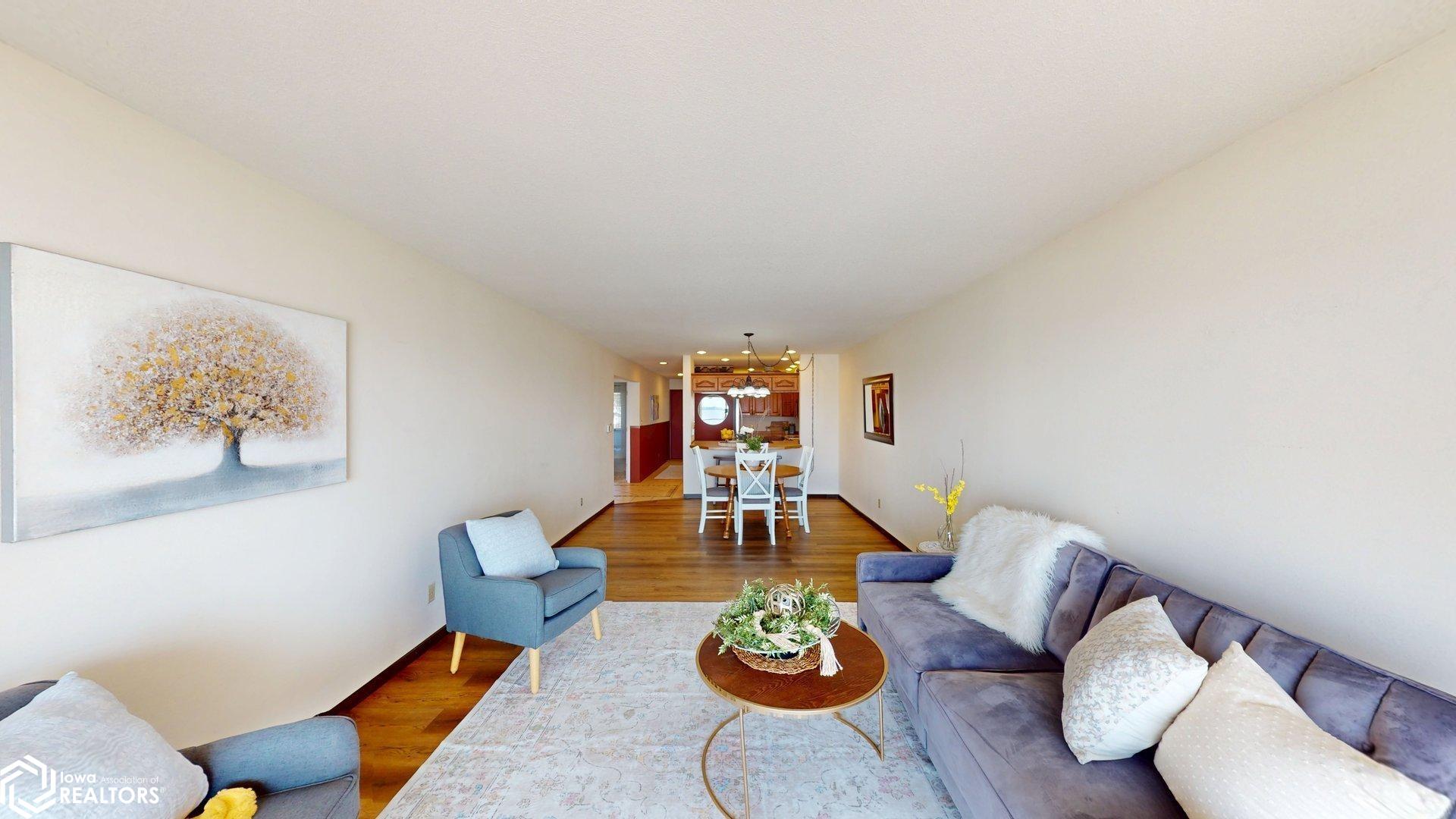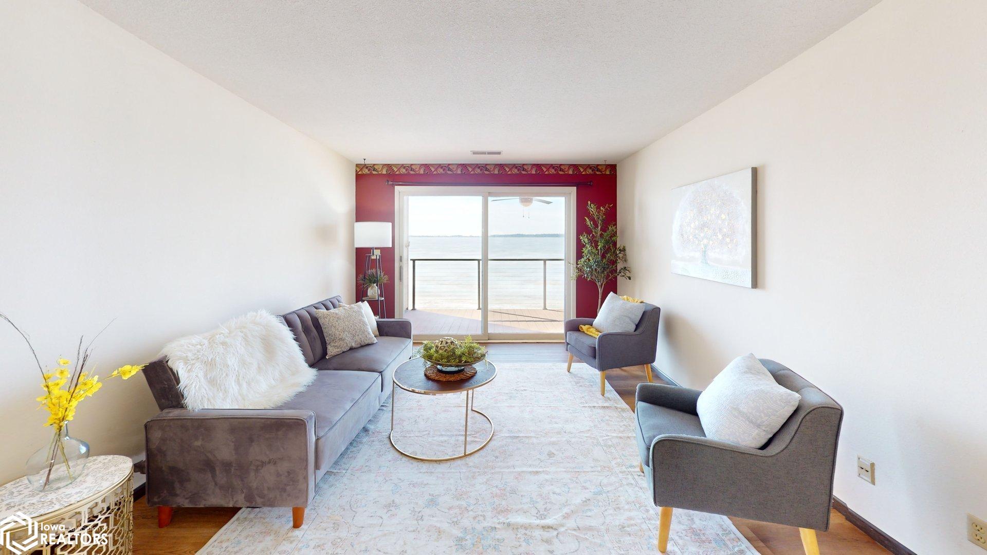 Lakefront Living at Its Finest. Wake up to breathtaking water views and unwind each evening with unforgettable sunsets over Clear Lake. This beautiful lakeshore condo delivers serene waterfront living with a private balcony overlooking the water perfect for morning coffee or evening wine. Enjoy a spacious open-concept living and dining area filled with panoramic lake views. The condo features 2 bedrooms and 2 bathrooms, including a walk-in shower in the primary suite. The private lake-access building offers an elevator, no steps to the dock, a gorgeous lakeside patio, and front-row views of iconic sunsets, 4th of July fireworks, and colorful kites during the annual festival. Located in the sought-after Surf District, youre just steps from the farmers market, restaurants, family entertainment, concerts at the legendary Surf Ballroom, and walking distance to downtown. Whether youre searching for a year-round residence or weekend retreat, this is a rare opportunity to update and personalize a prime lakefront condo. Location, location, location. (This building is a no dog building)