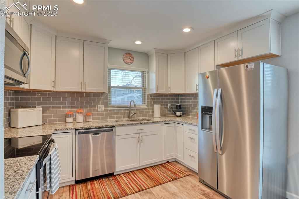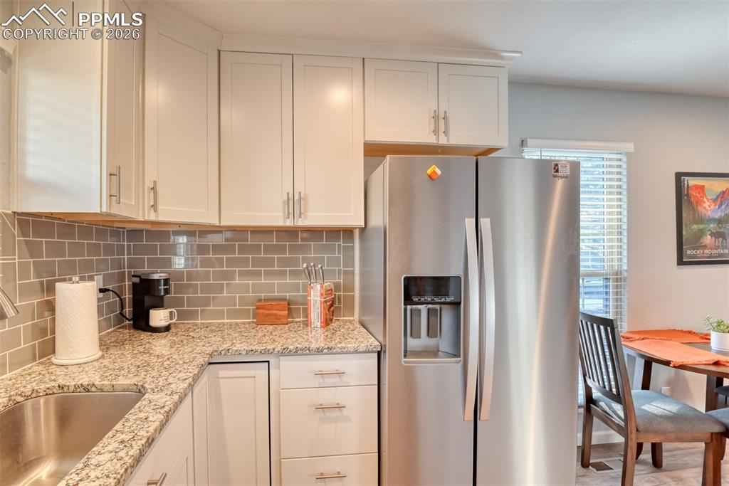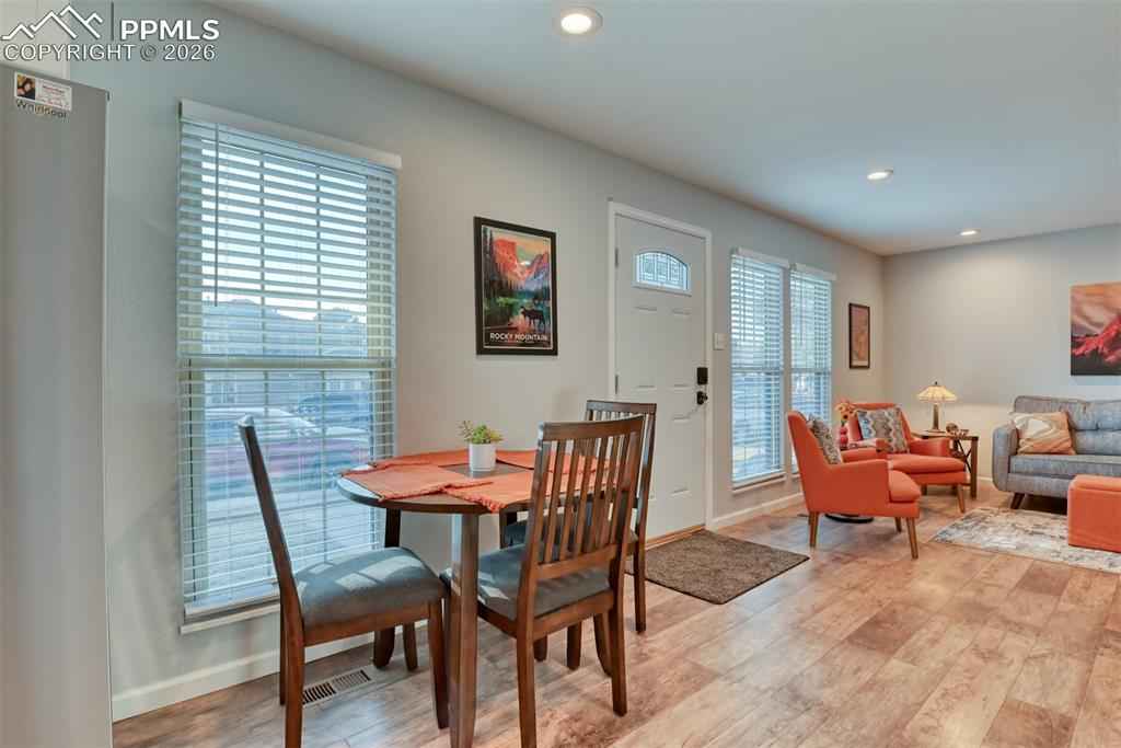 Fall in love with this beautifully updated, west-facing townhouse filled with natural light and picture-perfect charm. This 2-bedroom, 1 bath unit offering an inviting living area with cozy gas fireplace and wall-mount for your TV allows you to maximize your living space. The kitchen is equipped with all stainless-steel appliances. Wood laminate flooring flows thought out the home, complementing the stylish barn door entries to the updated bath. Primary suite holds the stacked washer and dryer units. Garage parking. Ideally located within walking distance to coffee shops, fun dining and the Vista Grande Recreation Associationx2019;s Pool. This fantastic home blends comfort, style and an unbeatable lifestyle.