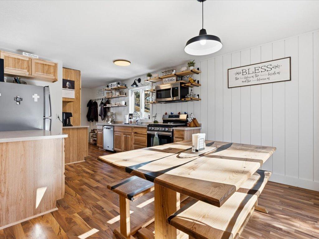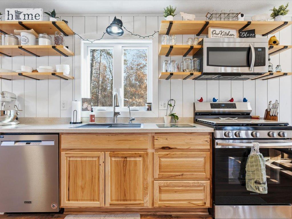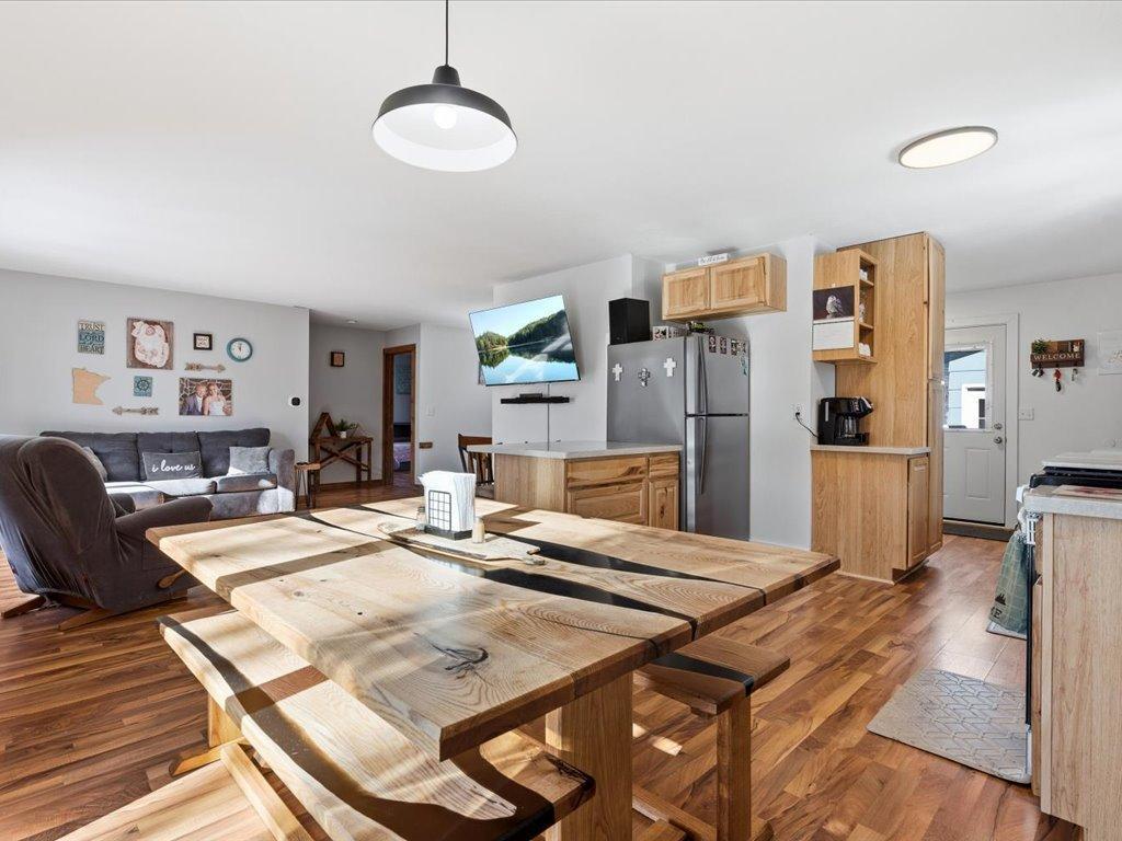 See this private, serene home set on a 1.16-acre wooded lot just minutes north of Nisswa in the heart of the Lakes Area. Located only steps from the Paul Bunyan Trail, this 4-bedroom, 2-bath home is filled with natural light and features a new kitchen, offering towering pine tree views throughout. Recent updates include a new roof, soffits, fascia, and a brand-new garage door, deck, and landscaping. The property also features a heated, detached two-car garage, perfect for year-round use.